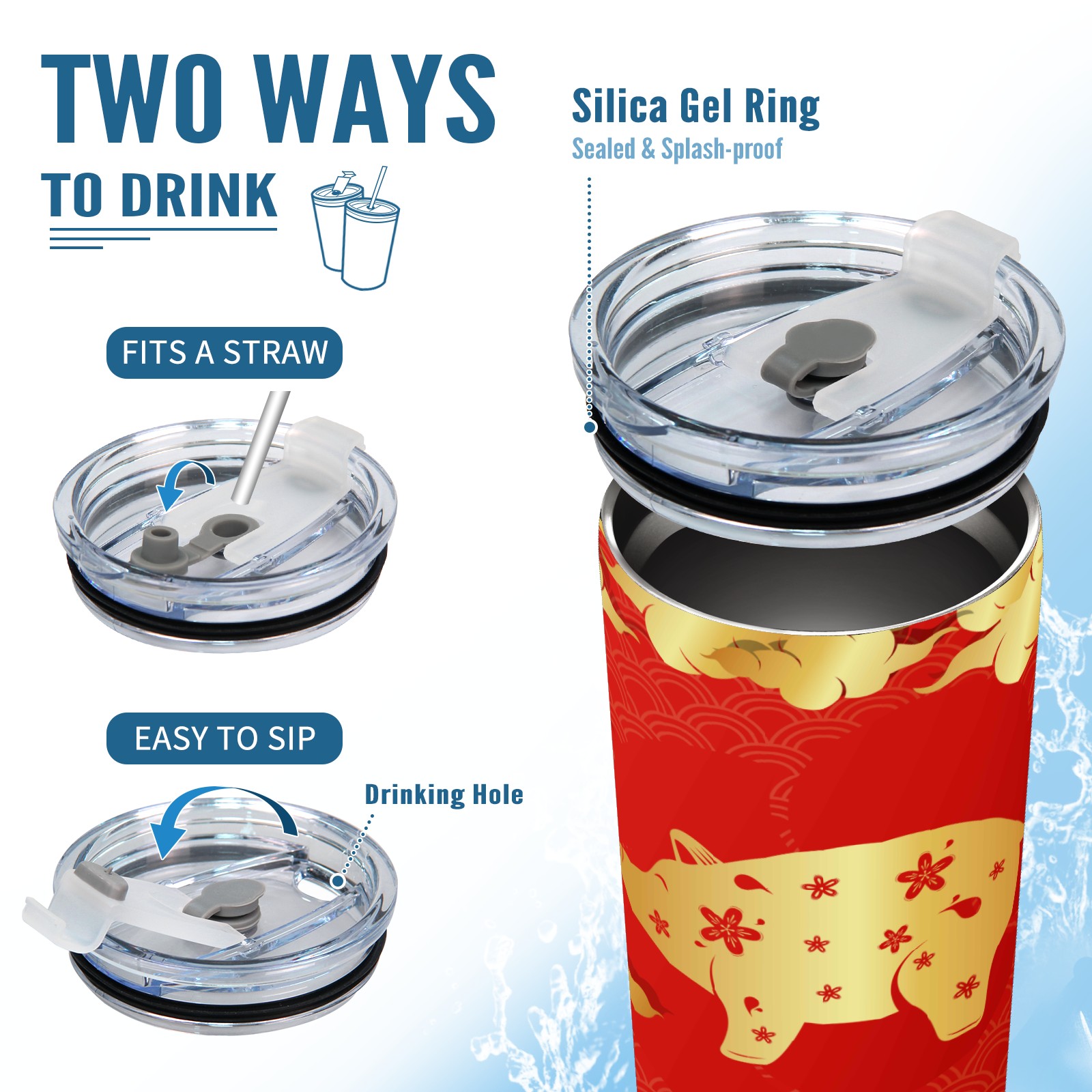 20 oz Tumbler Pig Red Stainless Steel Insulated Tumbler with Lid Double Wall Vacuum Insulated Travel Mug Cup for Coffee Ice Hot Drinks