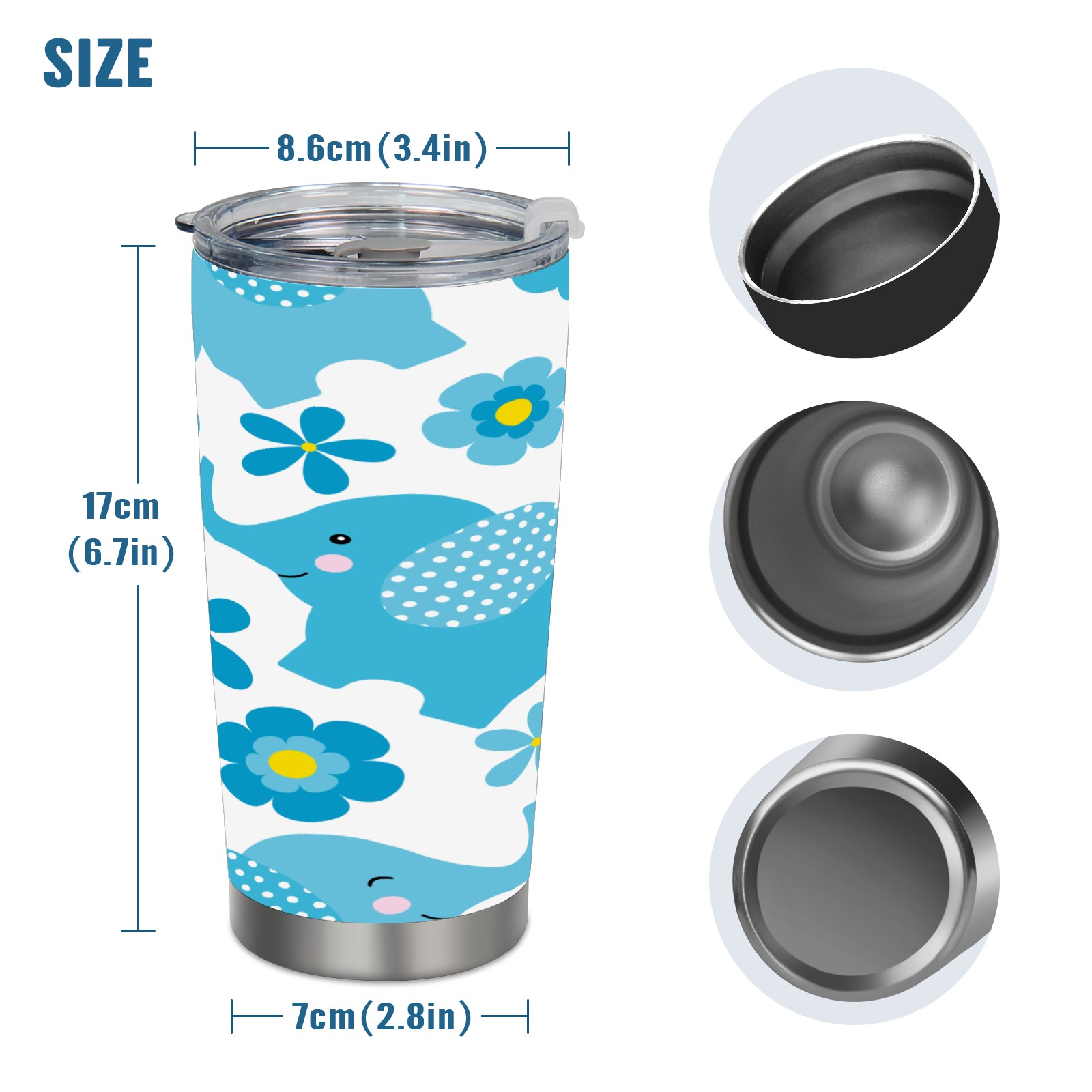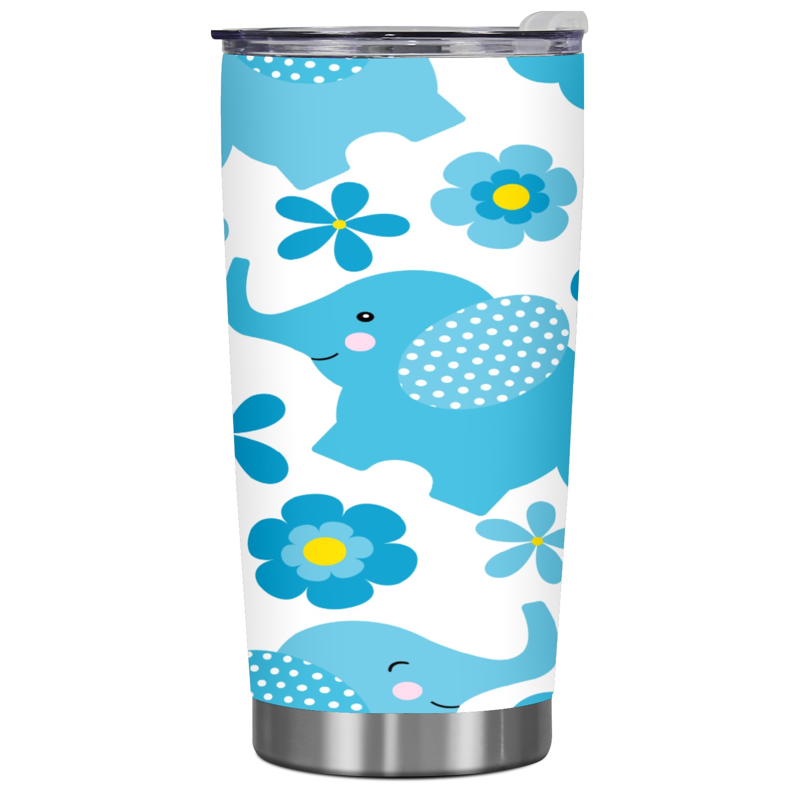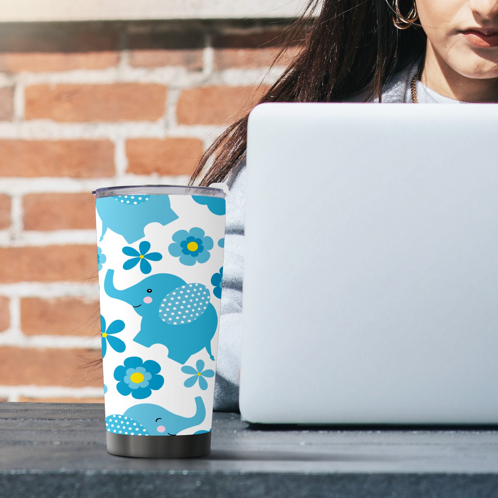 20 oz Tumbler Elephant Blue Print Stainless Steel Insulated Tumbler with Lid Double Wall Vacuum Insulated Travel Mug Cup for Coffee Ice Hot Drinks