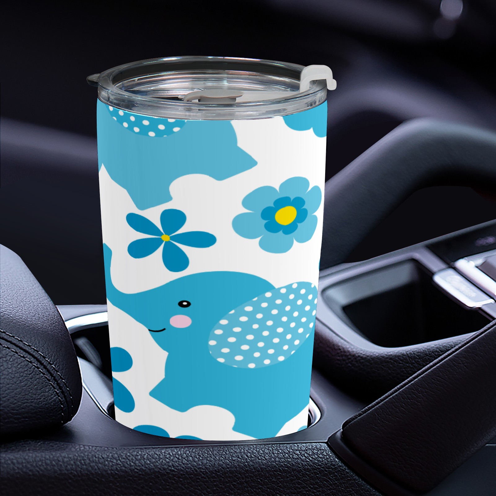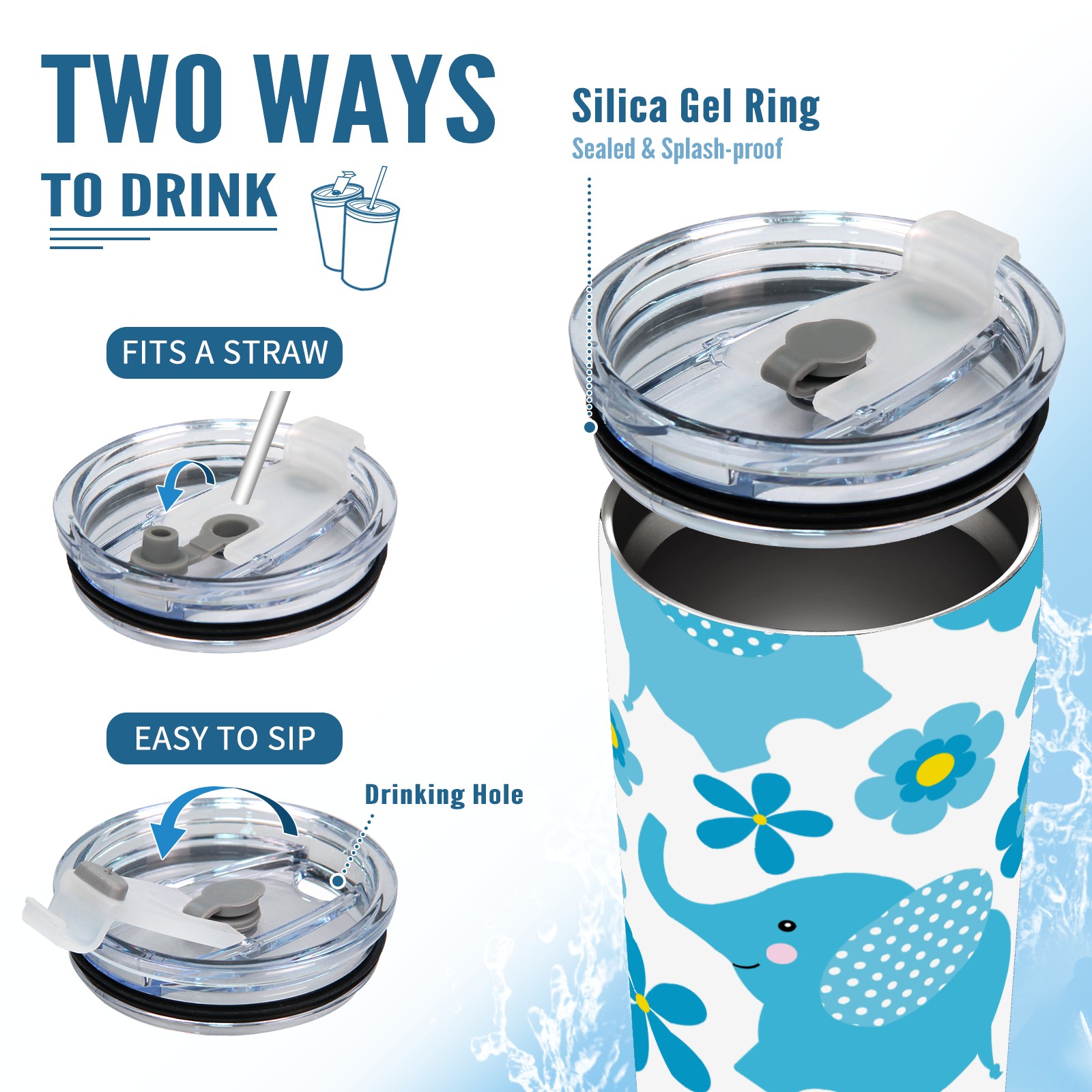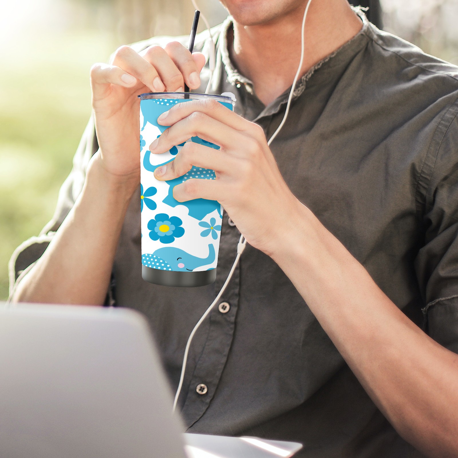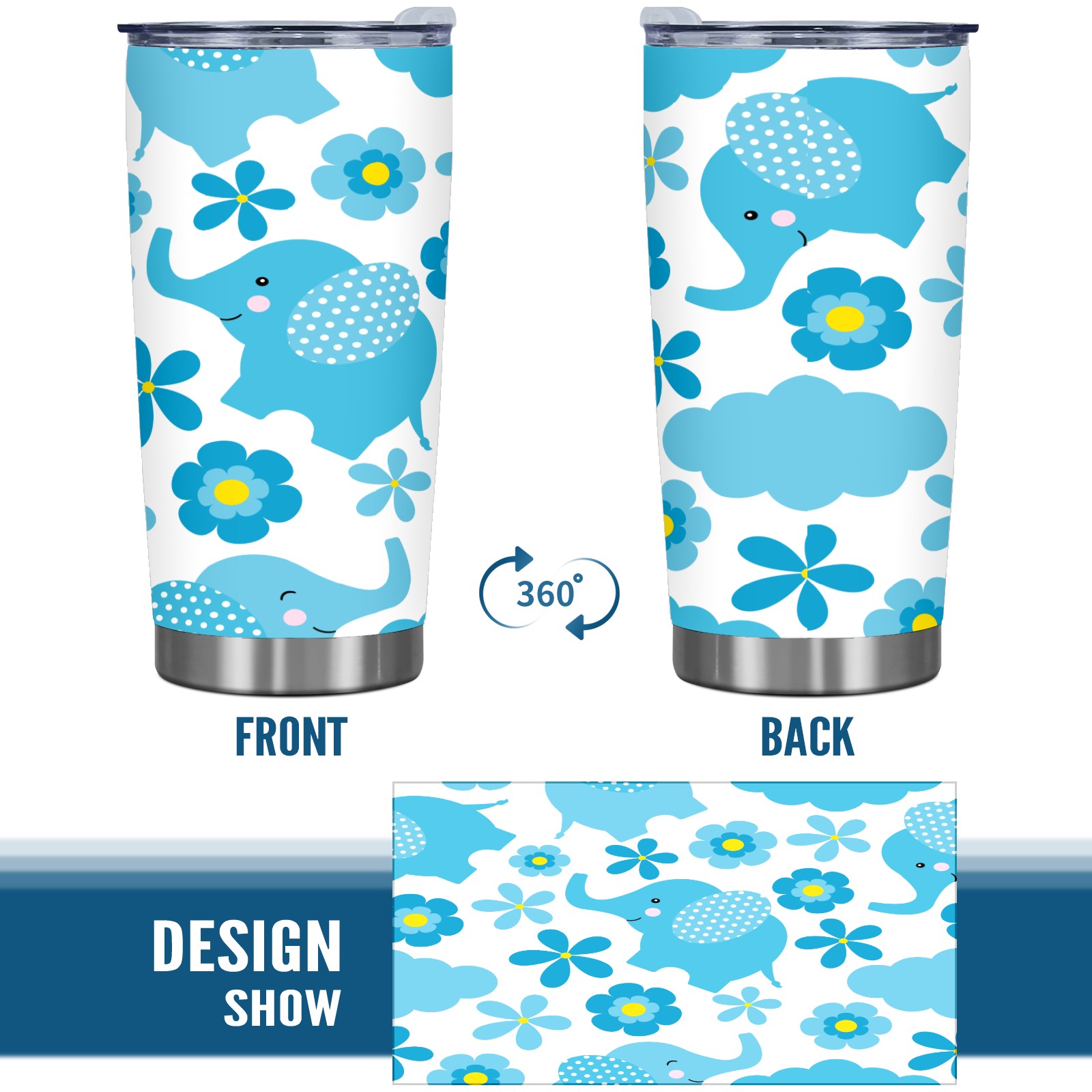 20 oz Tumbler Elephant Blue Print Stainless Steel Insulated Tumbler with Lid Double Wall Vacuum Insulated Travel Mug Cup for Coffee Ice Hot Drinks