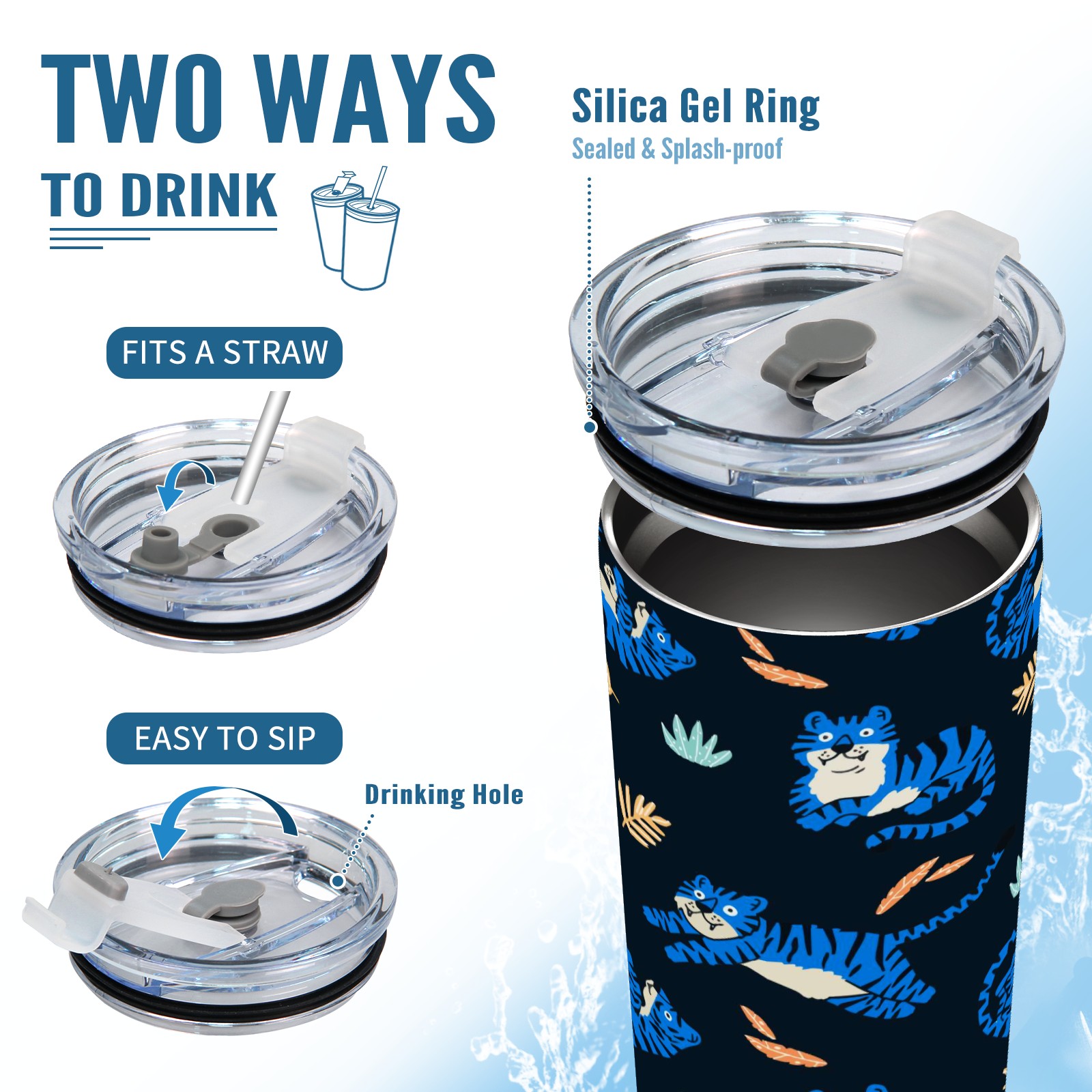 20 oz Tumbler BlueTiger Stainless Steel Insulated Tumbler with Lid Double Wall Vacuum Insulated Travel Mug Cup for Coffee Ice Hot Drinks