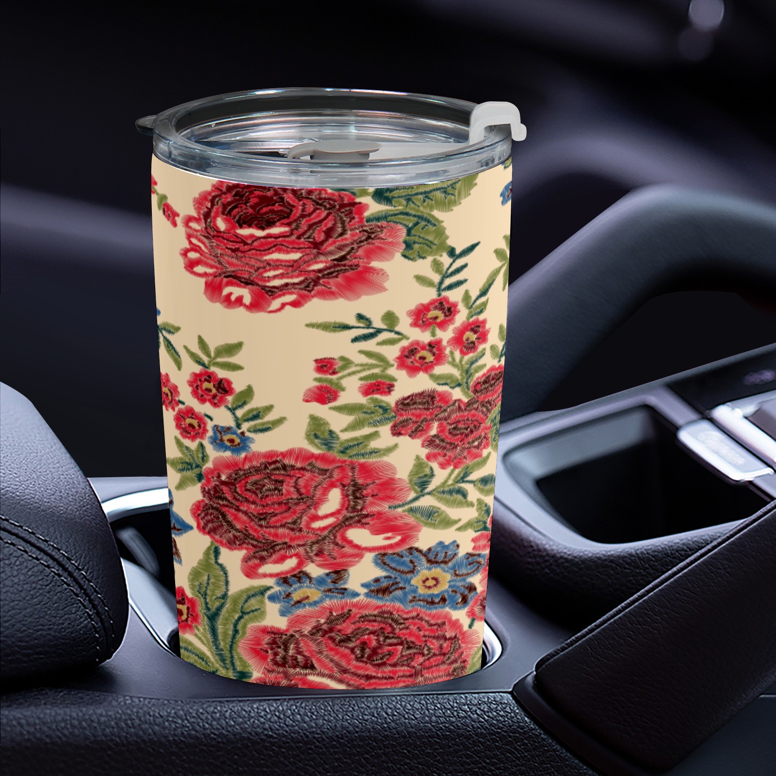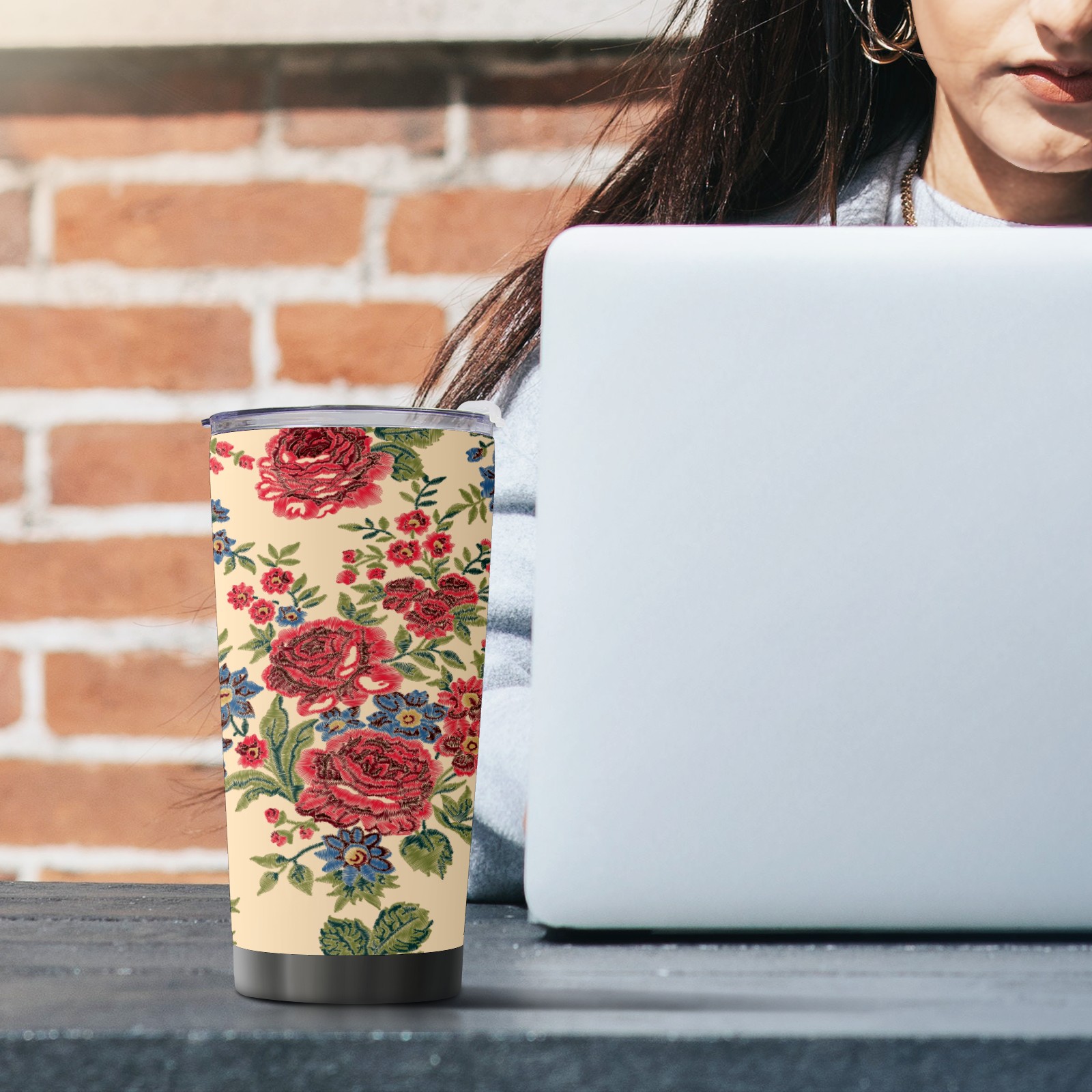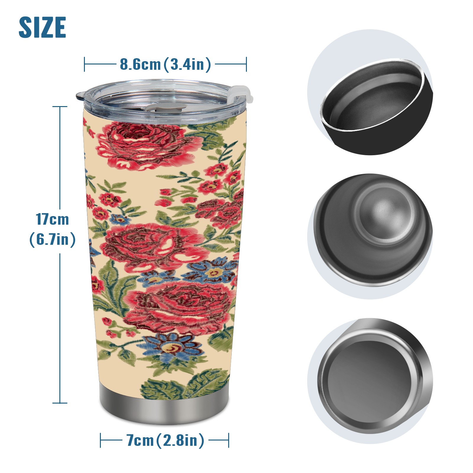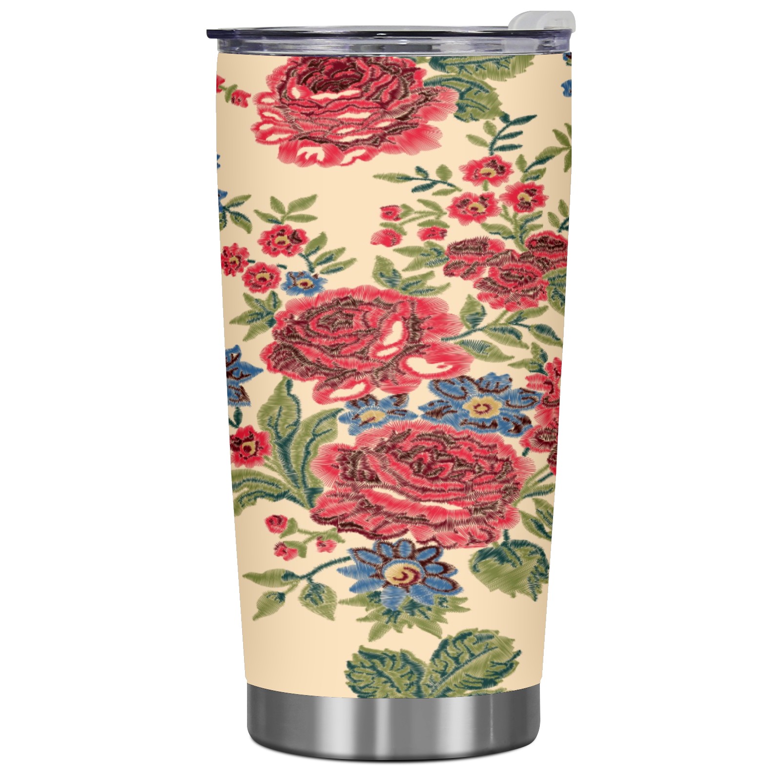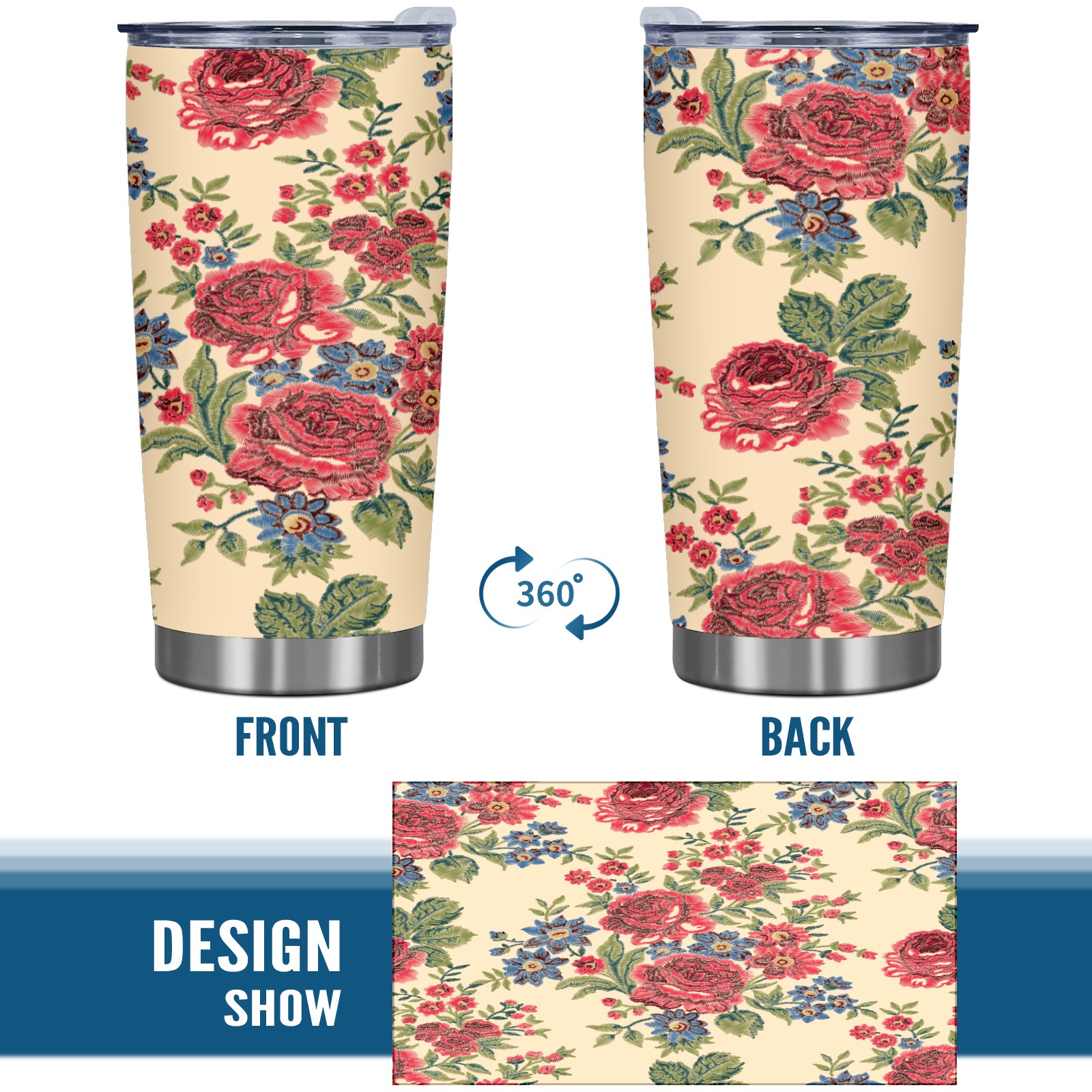 20 oz Tumbler Blue And Red Flower Stainless Steel Insulated Tumbler with Lid Double Wall Vacuum Insulated Travel Mug Cup for Coffee Ice Hot Drinks