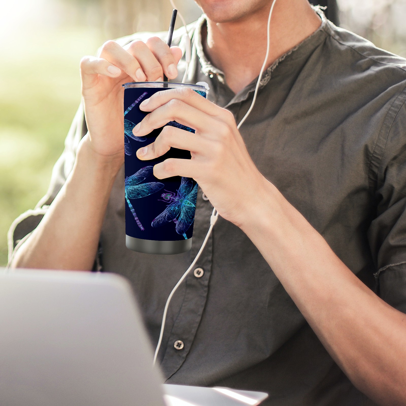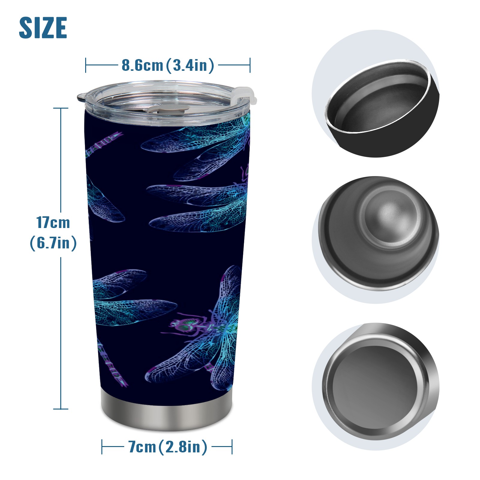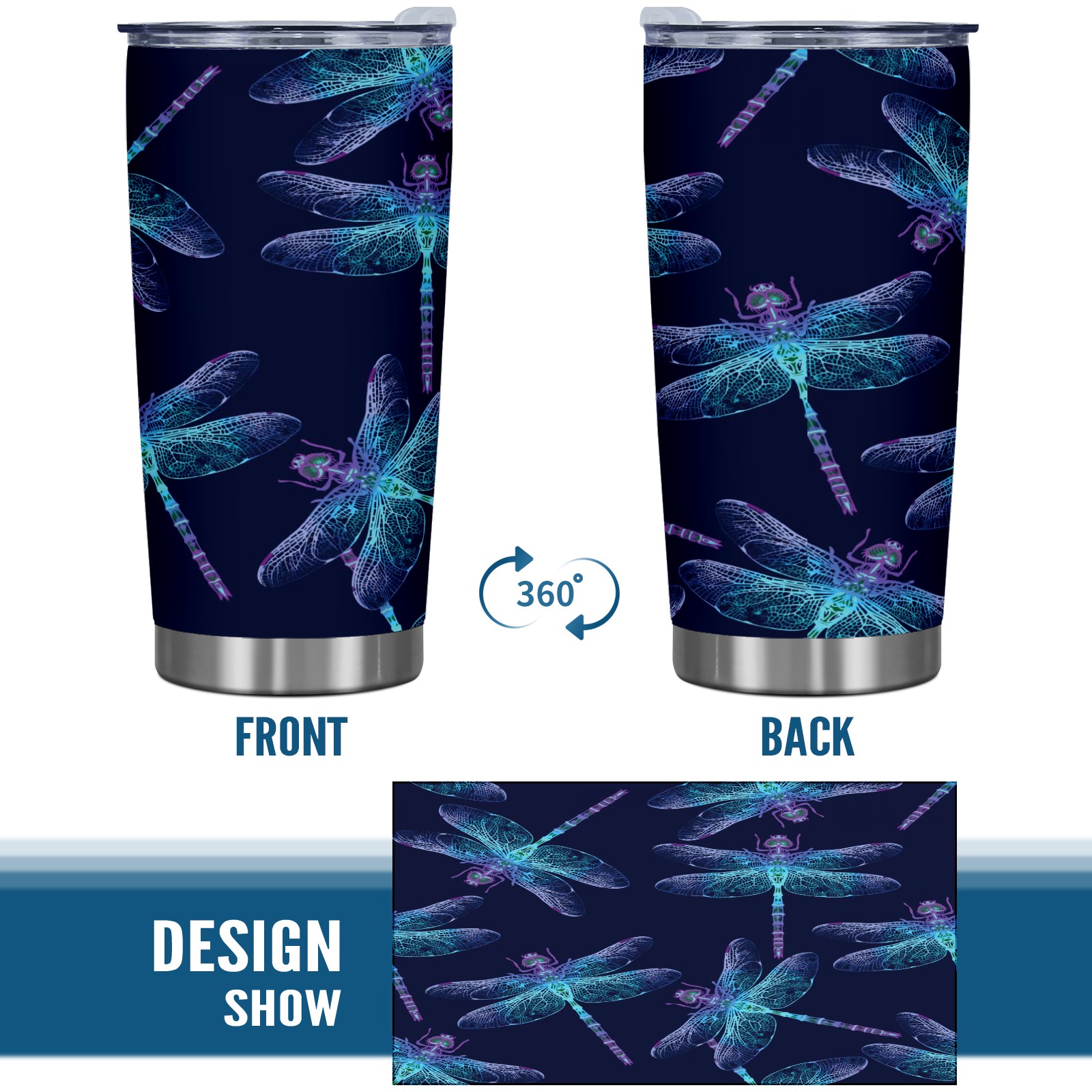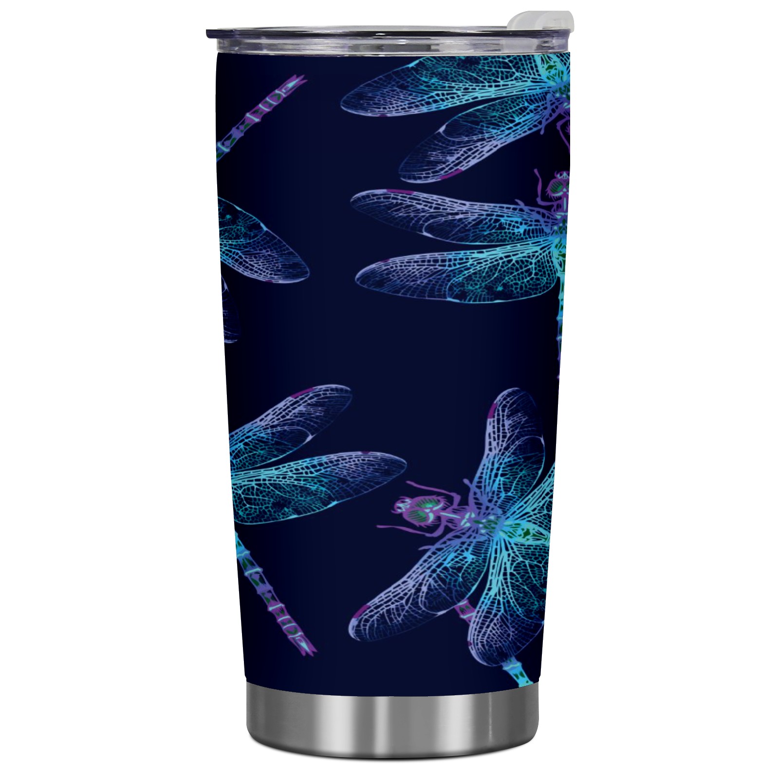 20 oz Tumbler Blue And Purple Dragonflies Stainless Steel Insulated Tumbler with Lid Double Wall Vacuum Insulated Travel Mug Cup for Coffee Ice Hot Drinks