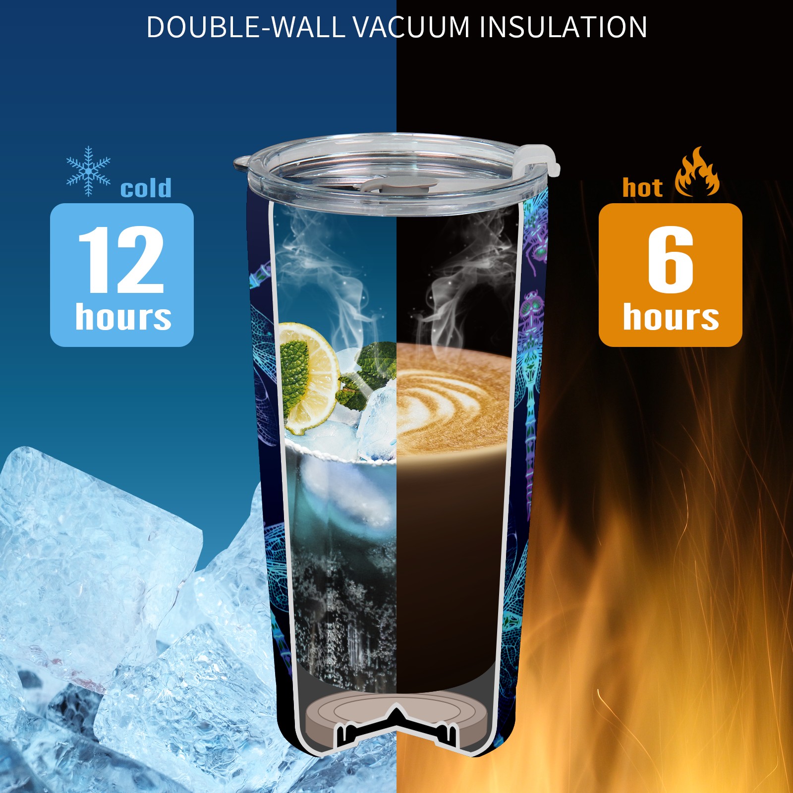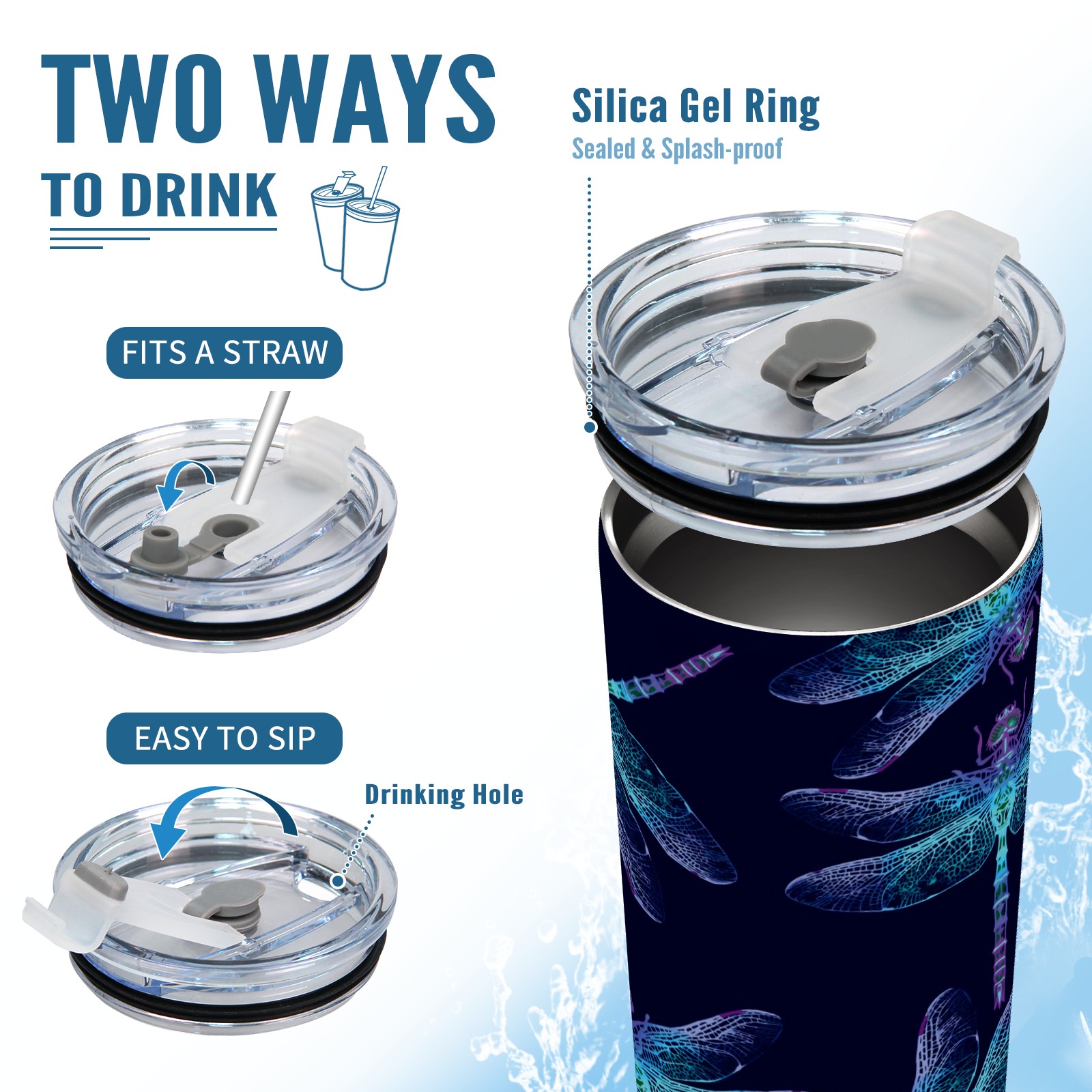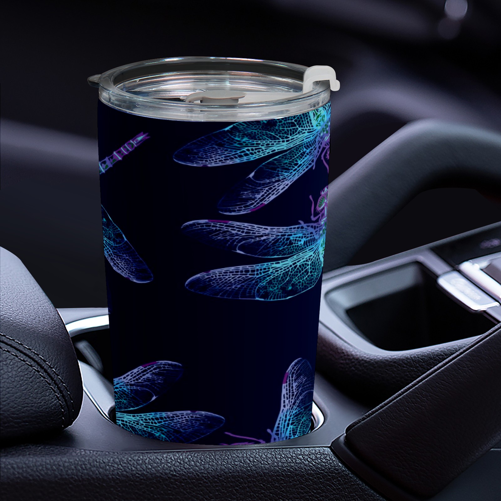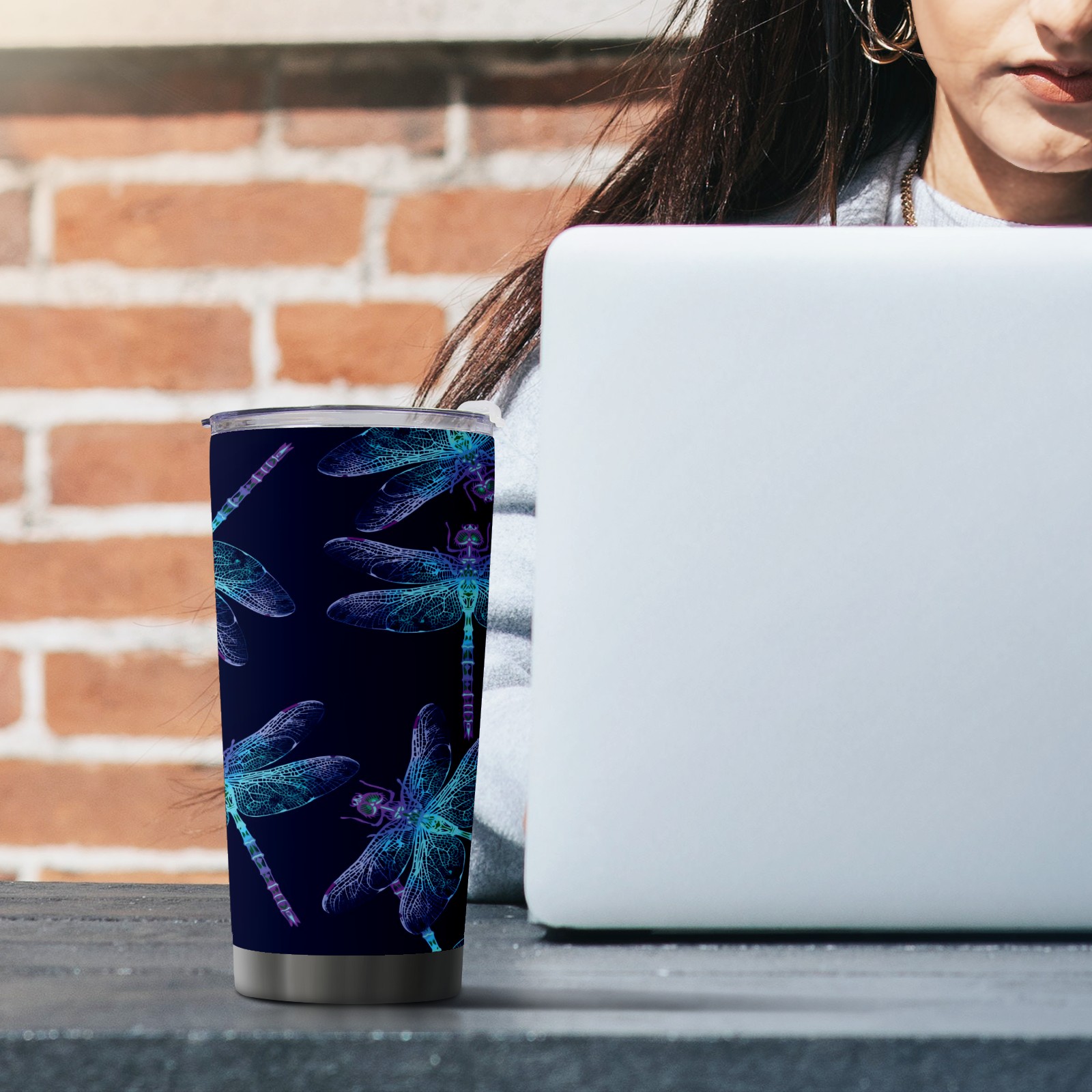20 oz Tumbler Blue And Purple Dragonflies Stainless Steel Insulated Tumbler with Lid Double Wall Vacuum Insulated Travel Mug Cup for Coffee Ice Hot Drinks