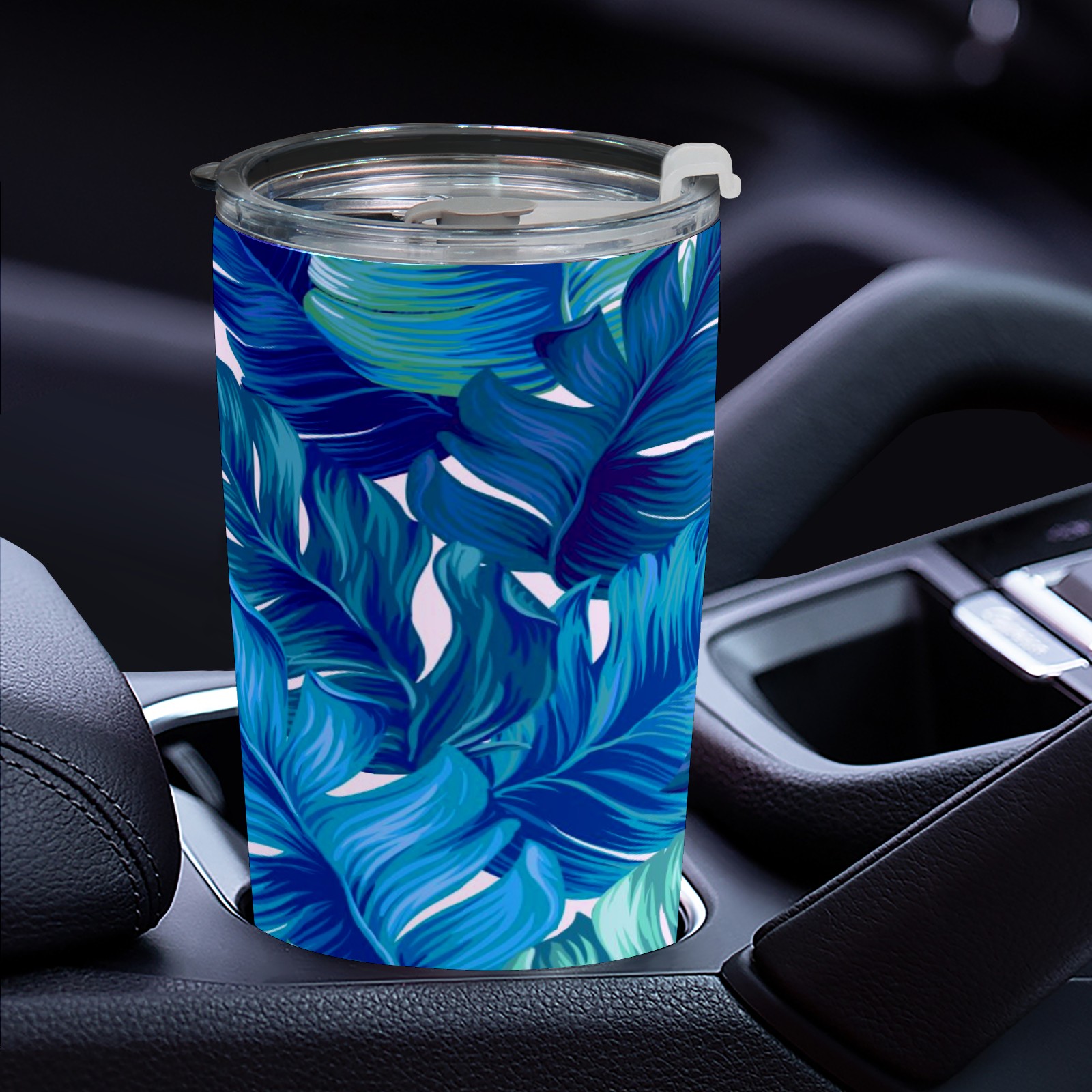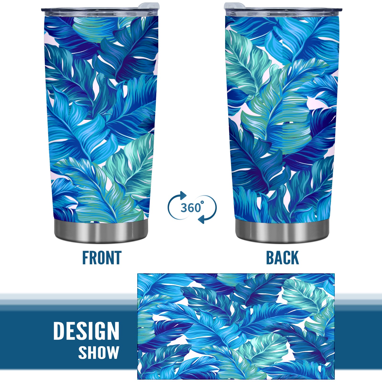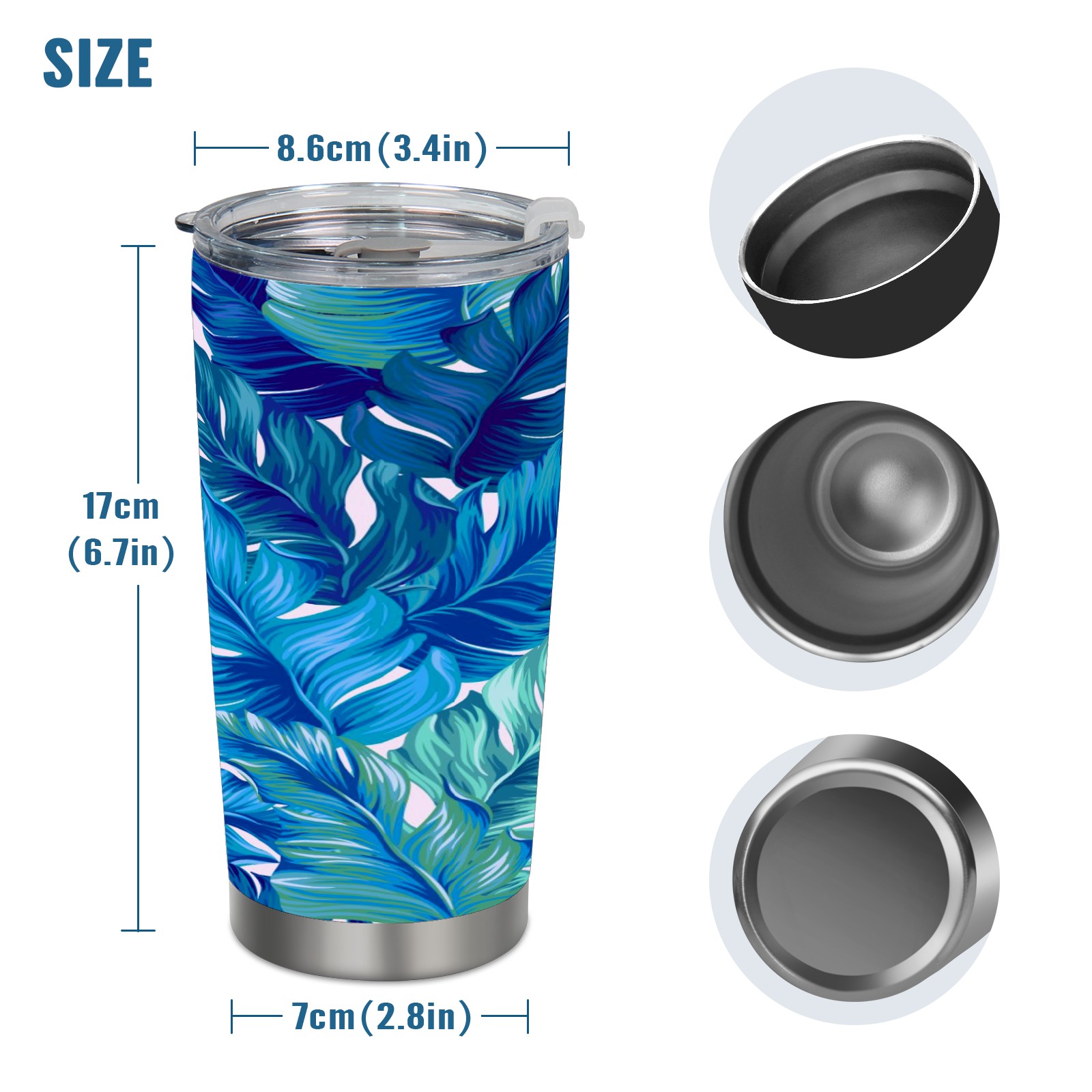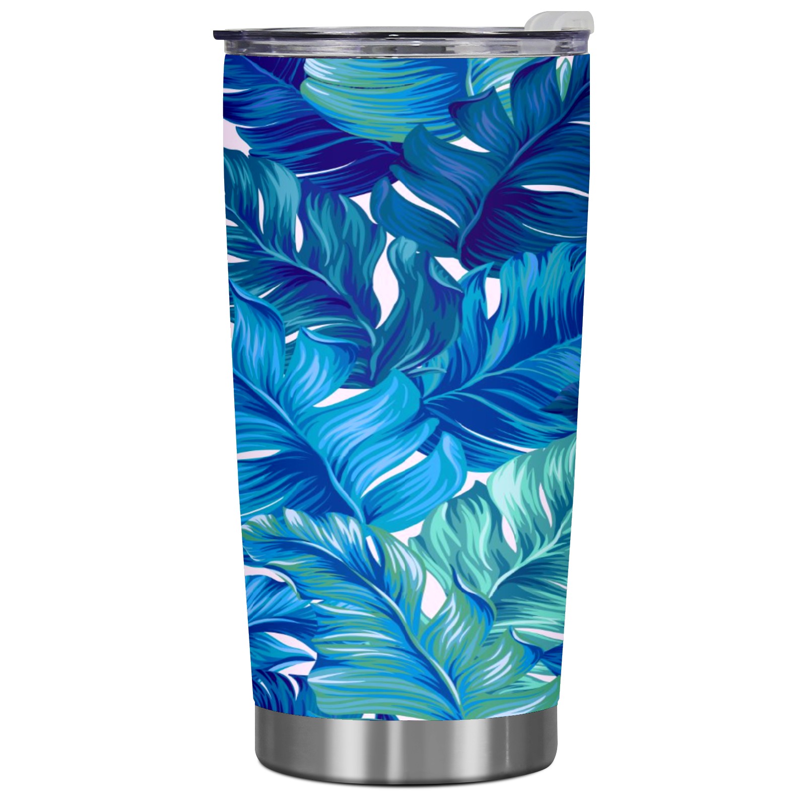 20 oz Tumbler Blue Plant Leaves Stainless Steel Insulated Tumbler with Lid Double Wall Vacuum Insulated Travel Mug Cup for Coffee Ice Hot Drinks