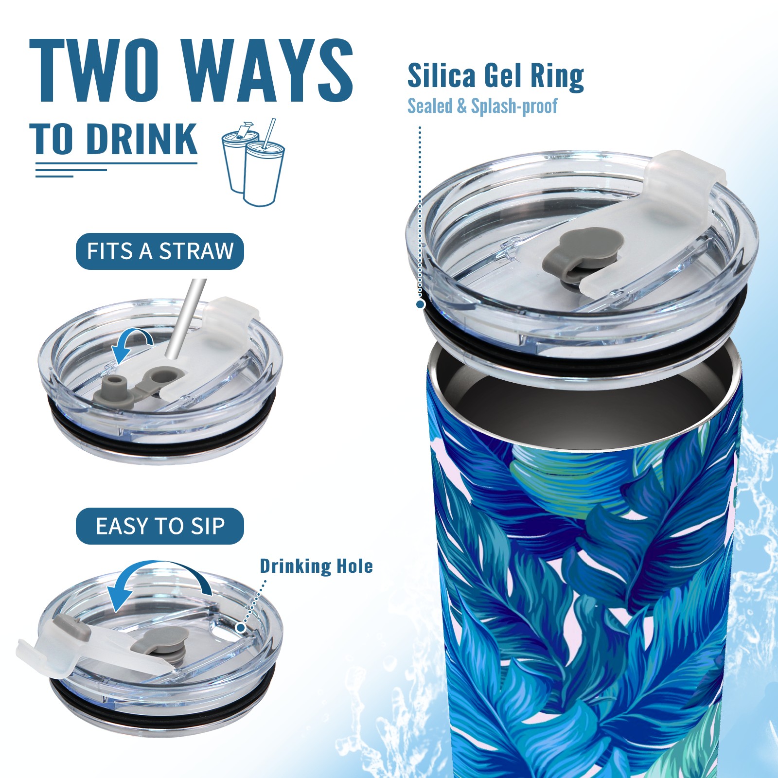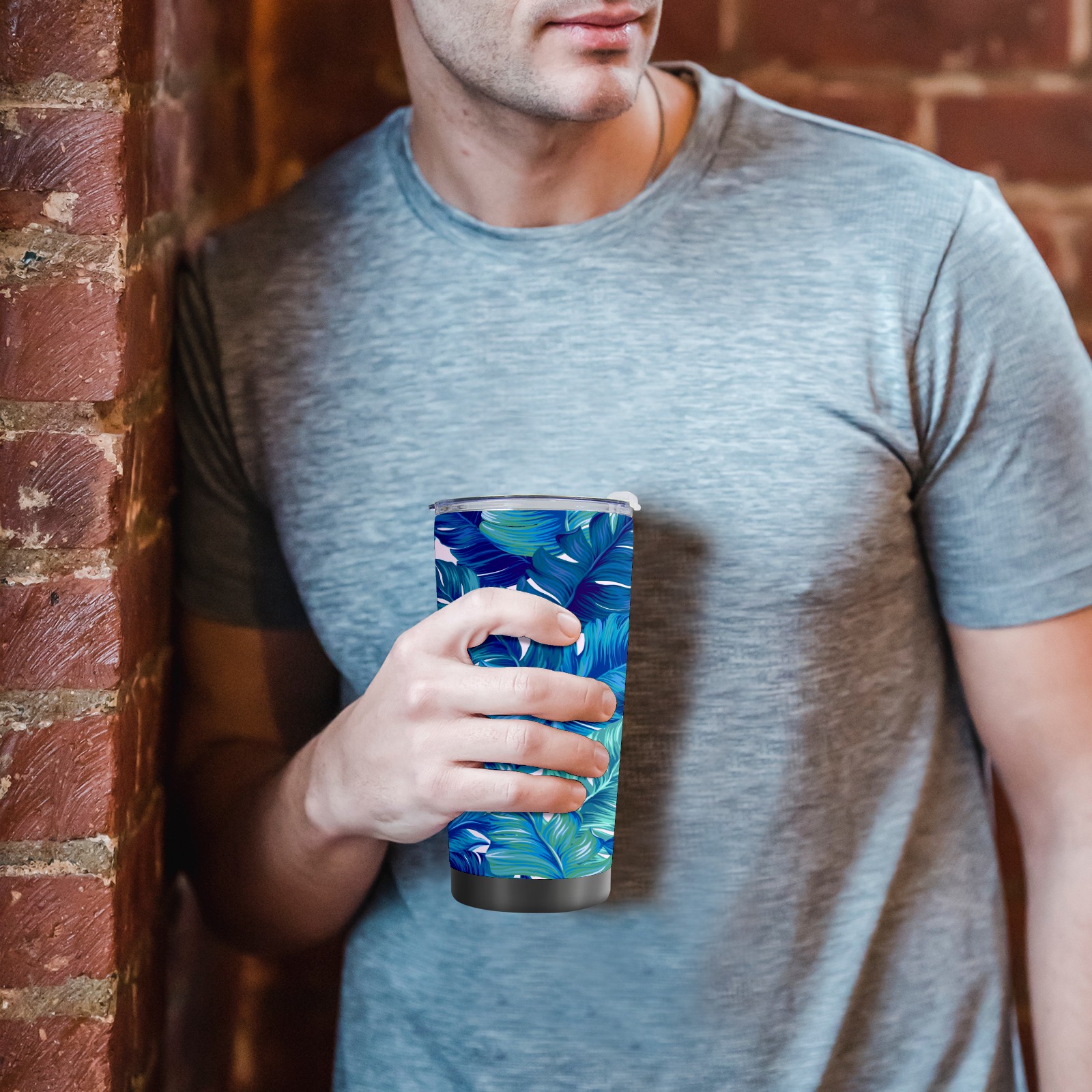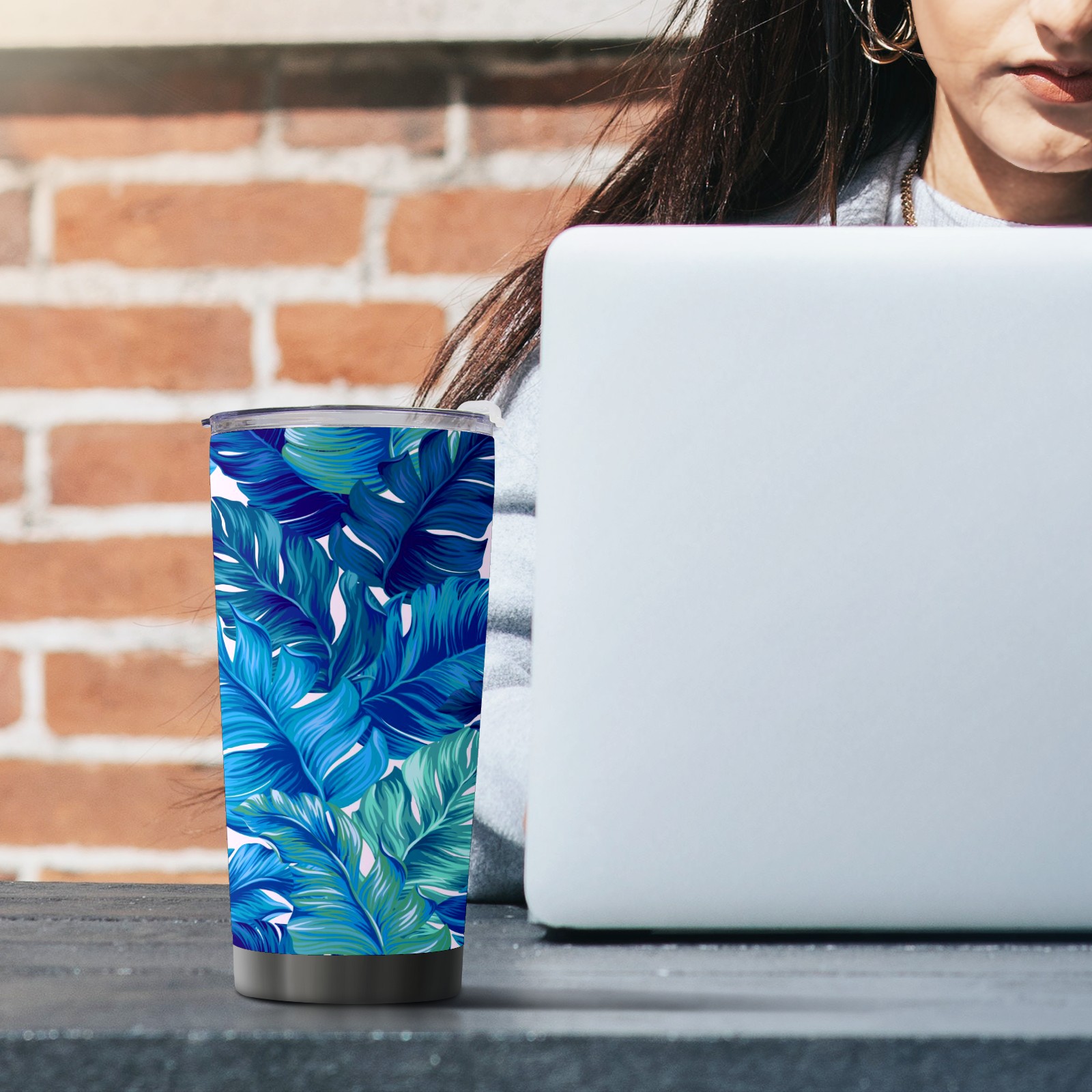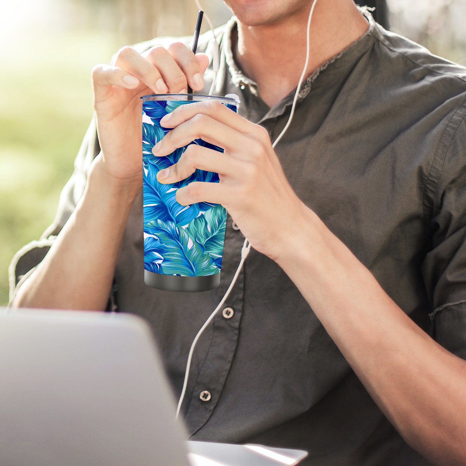20 oz Tumbler Blue Plant Leaves Stainless Steel Insulated Tumbler with Lid Double Wall Vacuum Insulated Travel Mug Cup for Coffee Ice Hot Drinks