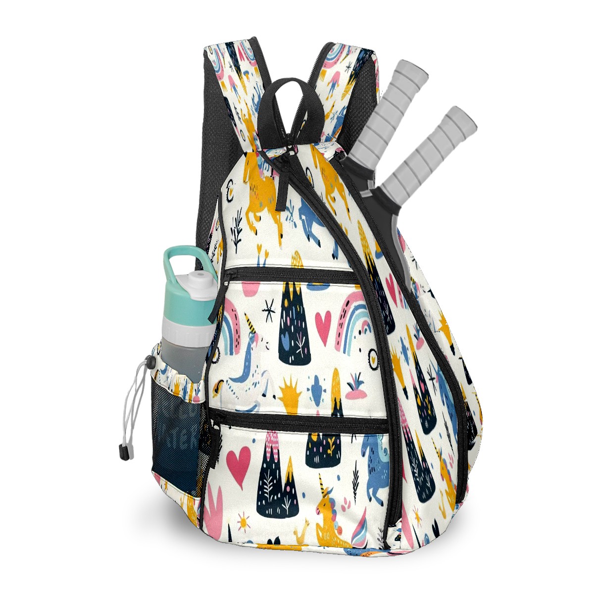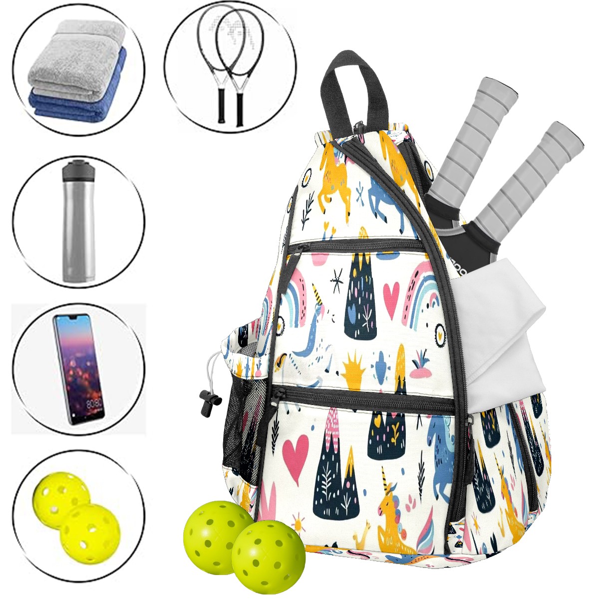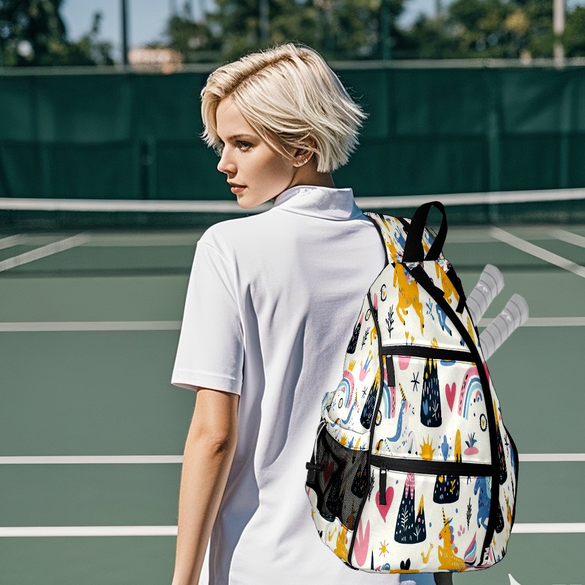 Multifunctional Pickleball Bag,Large Capacity Sports Pickleball Racket Bag, Water Bottle Holder and Fence Hook,Suitable for Both Men Women -Rainbow Kingdom