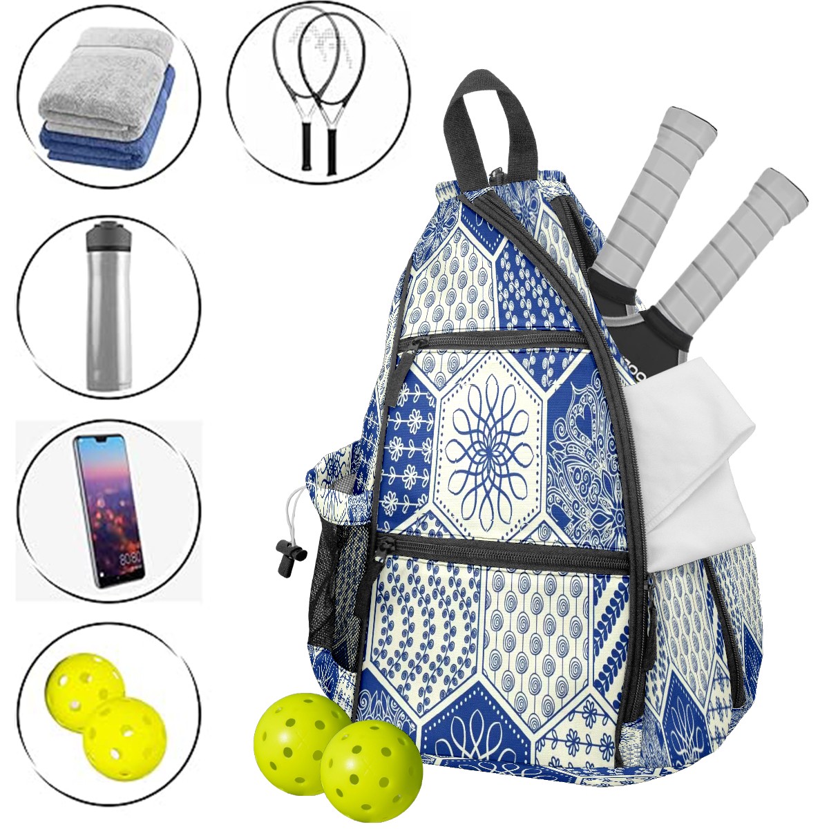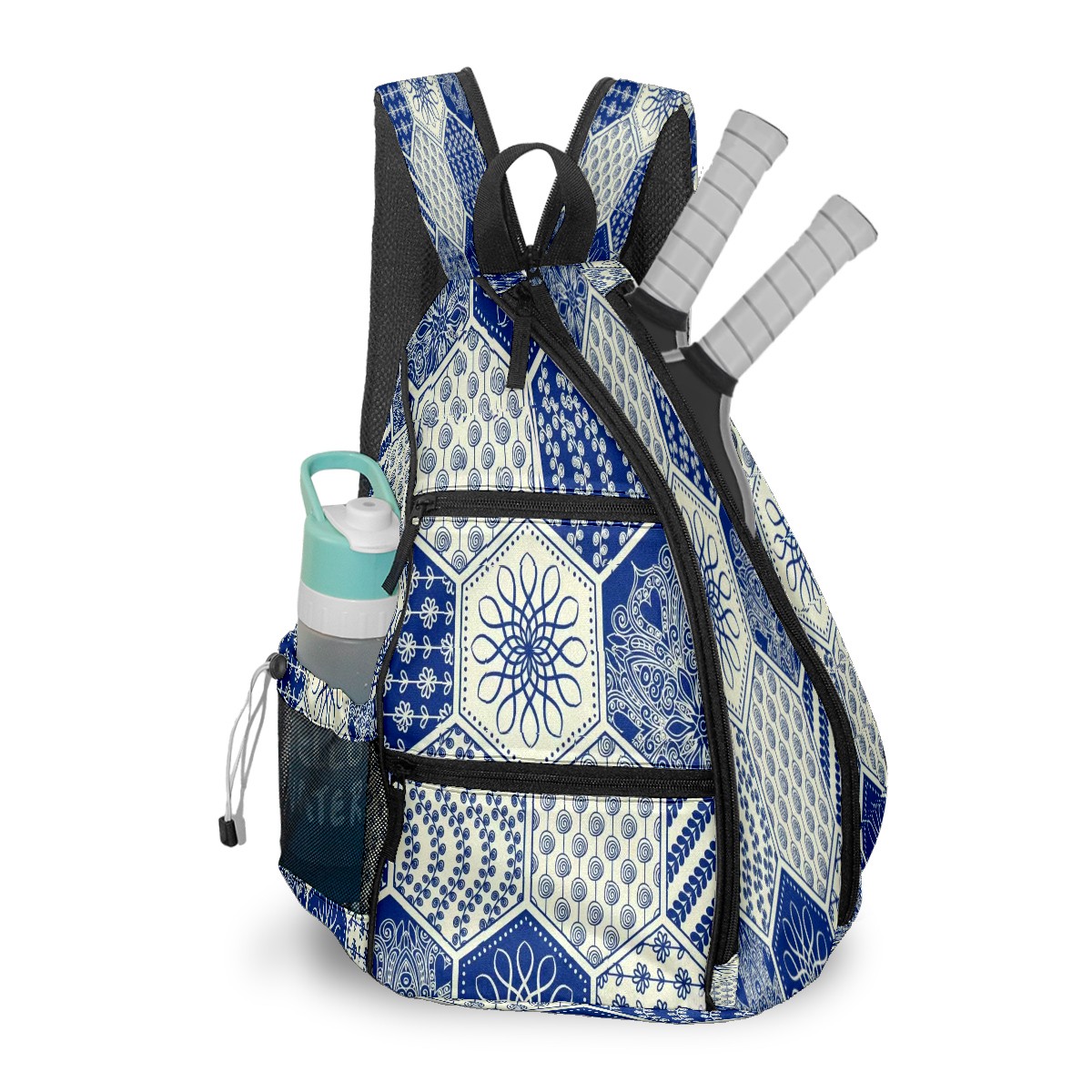 Multifunctional Pickleball Bag,Large Capacity Sports Pickleball Racket Bag, Water Bottle Holder and Fence Hook,Suitable for Both Men Women -Hexagon Harmony