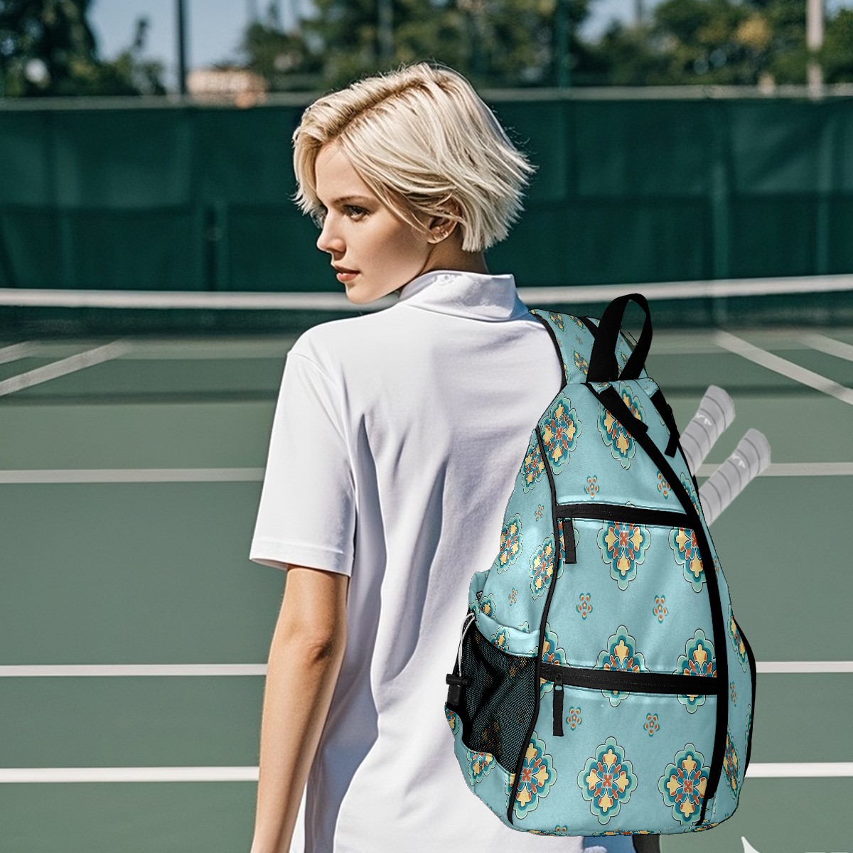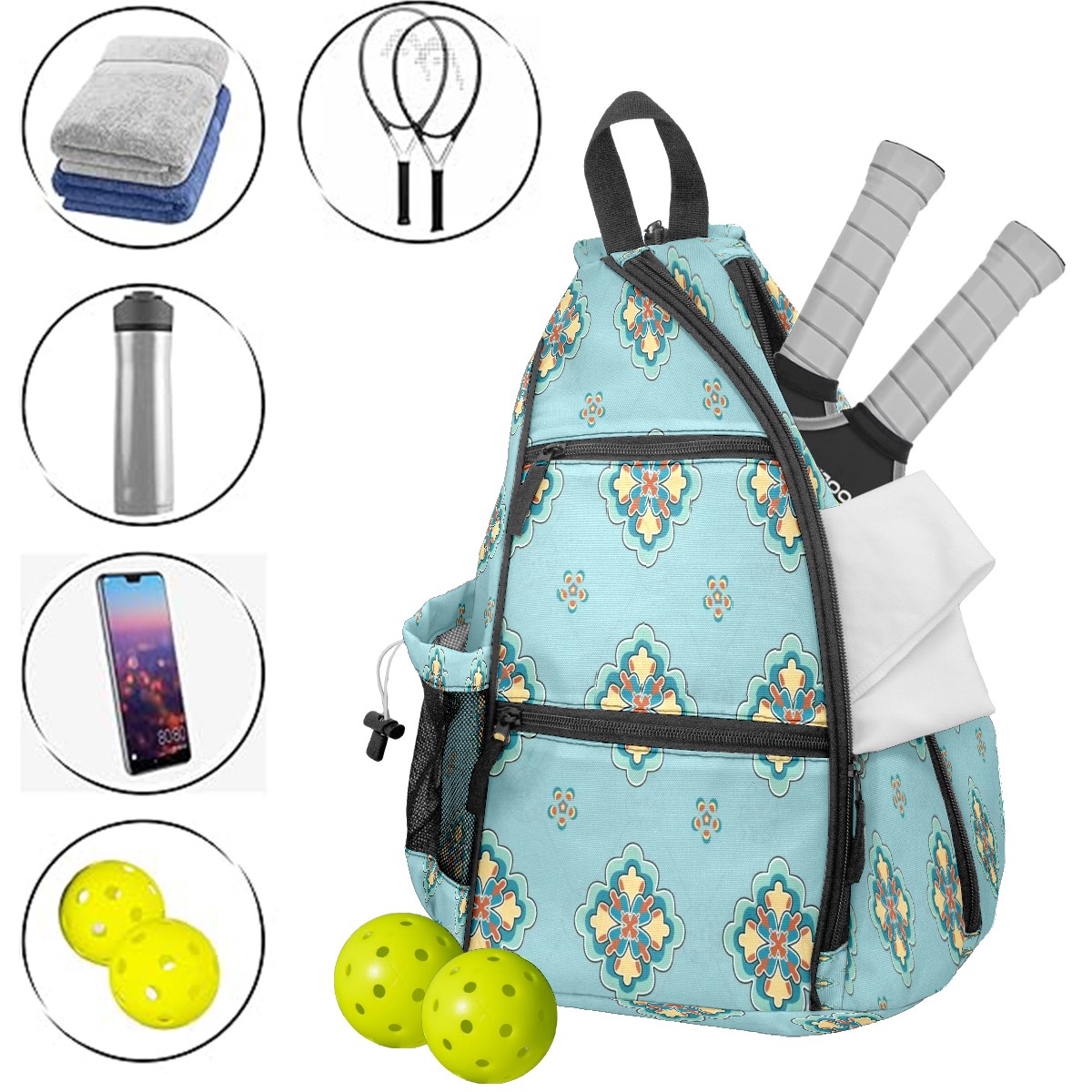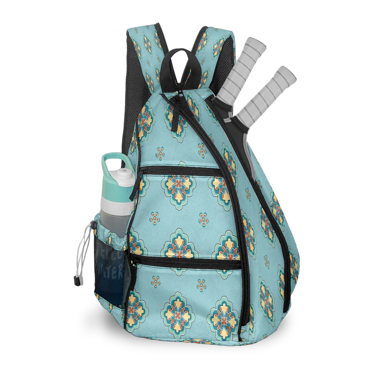 Multifunctional Pickleball Bag,Large Capacity Sports Pickleball Racket Bag, Water Bottle Holder and Fence Hook,Suitable for Both Men Women -Aqua Mandala