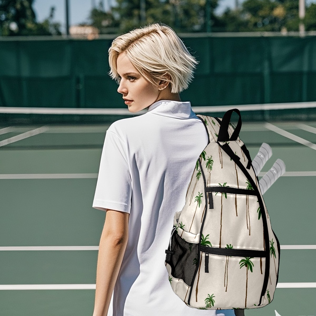 Multifunctional Pickleball Bag,Large Capacity Sports Pickleball Racket Bag, Water Bottle Holder and Fence Hook,Suitable for Both Men Women -Tropical Palms