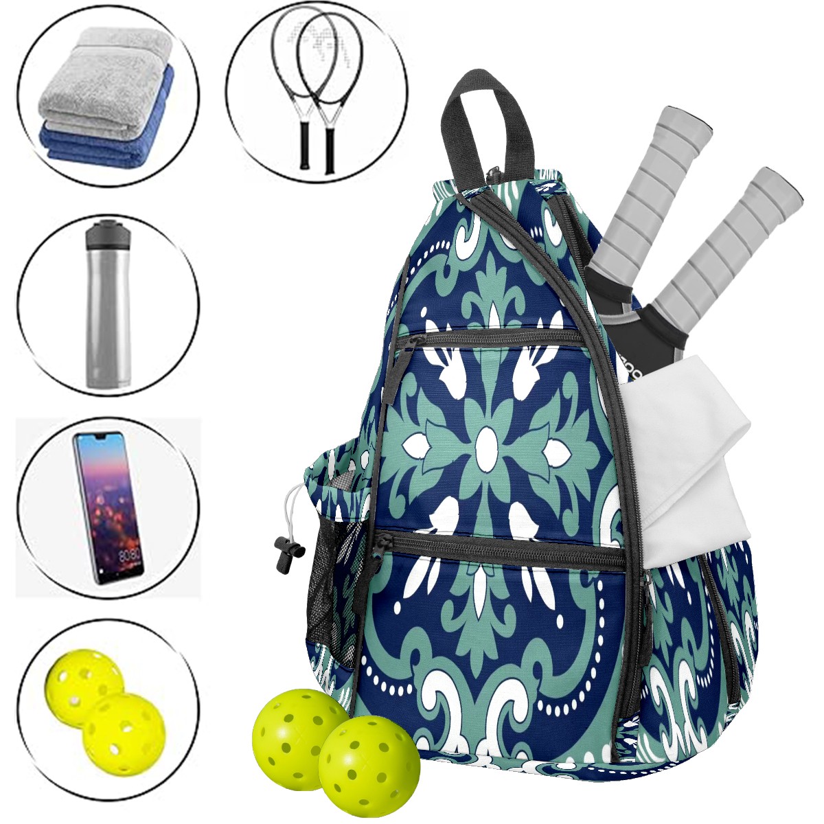 Multifunctional Pickleball Bag,Large Capacity Sports Pickleball Racket Bag, Water Bottle Holder and Fence Hook,Suitable for Both Men Women -Abstract Blooms
