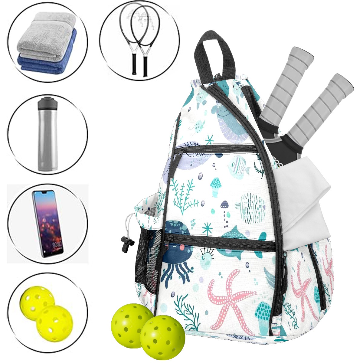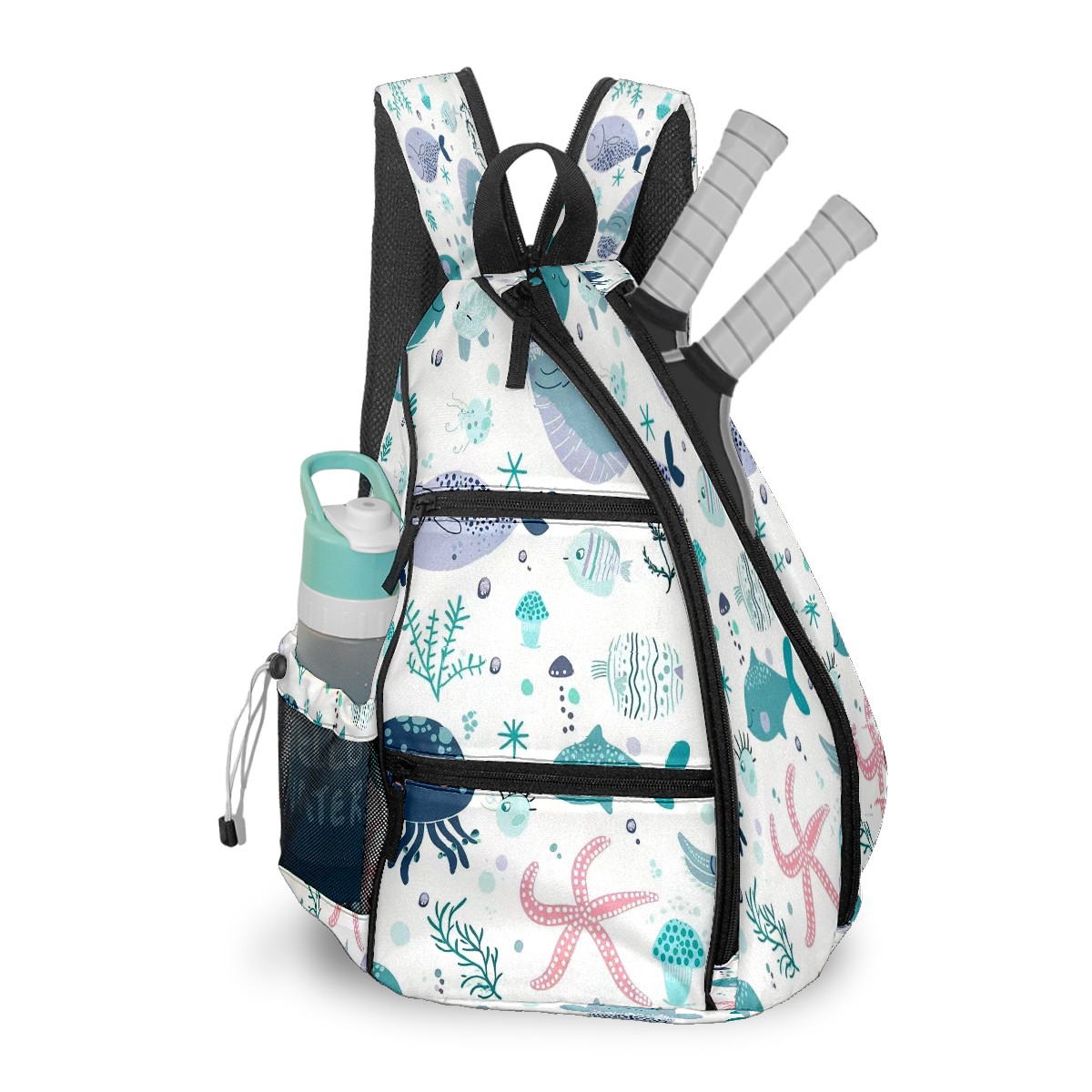 Multifunctional Pickleball Bag,Large Capacity Sports Pickleball Racket Bag, Water Bottle Holder and Fence Hook,Suitable for Both Men Women -Tropical Safari