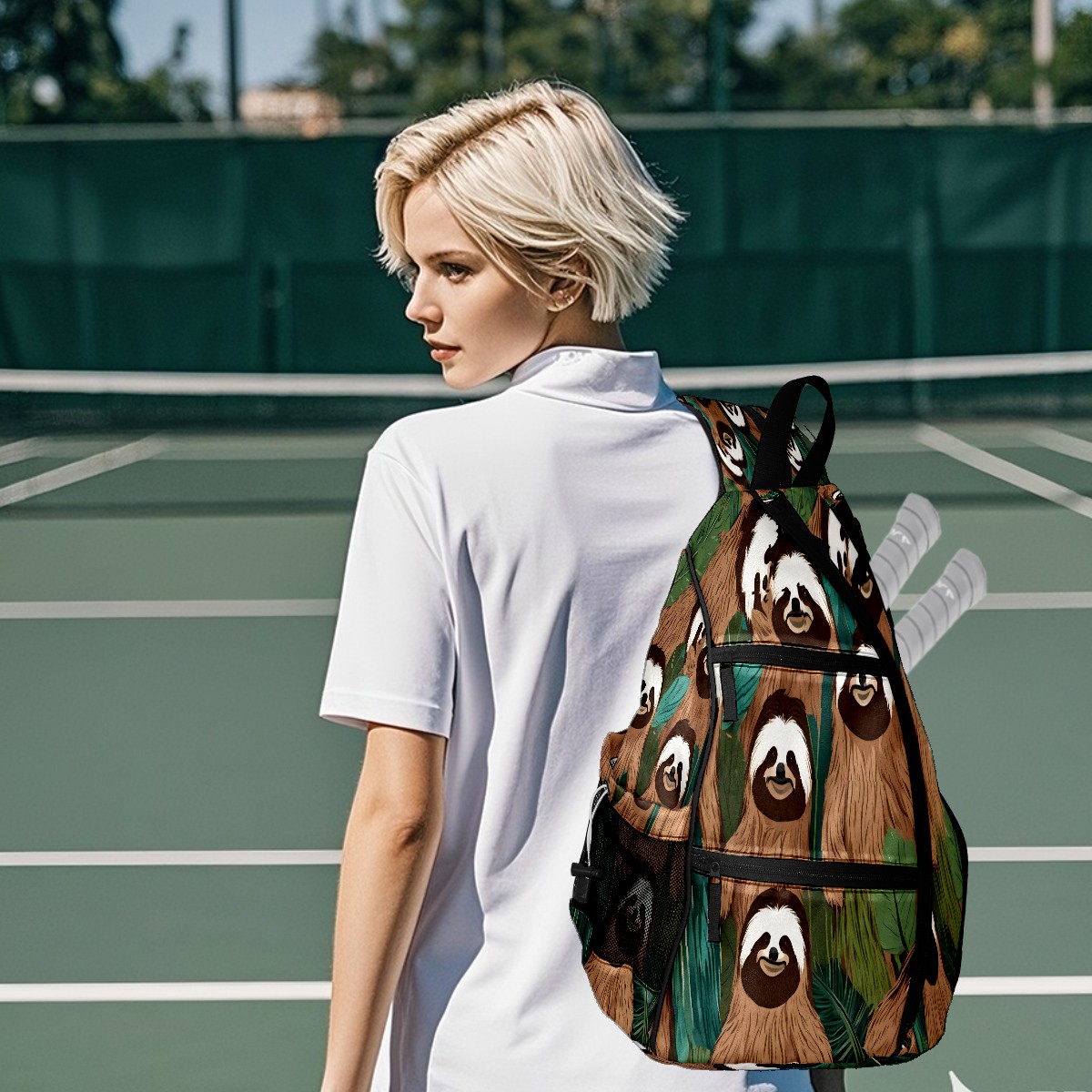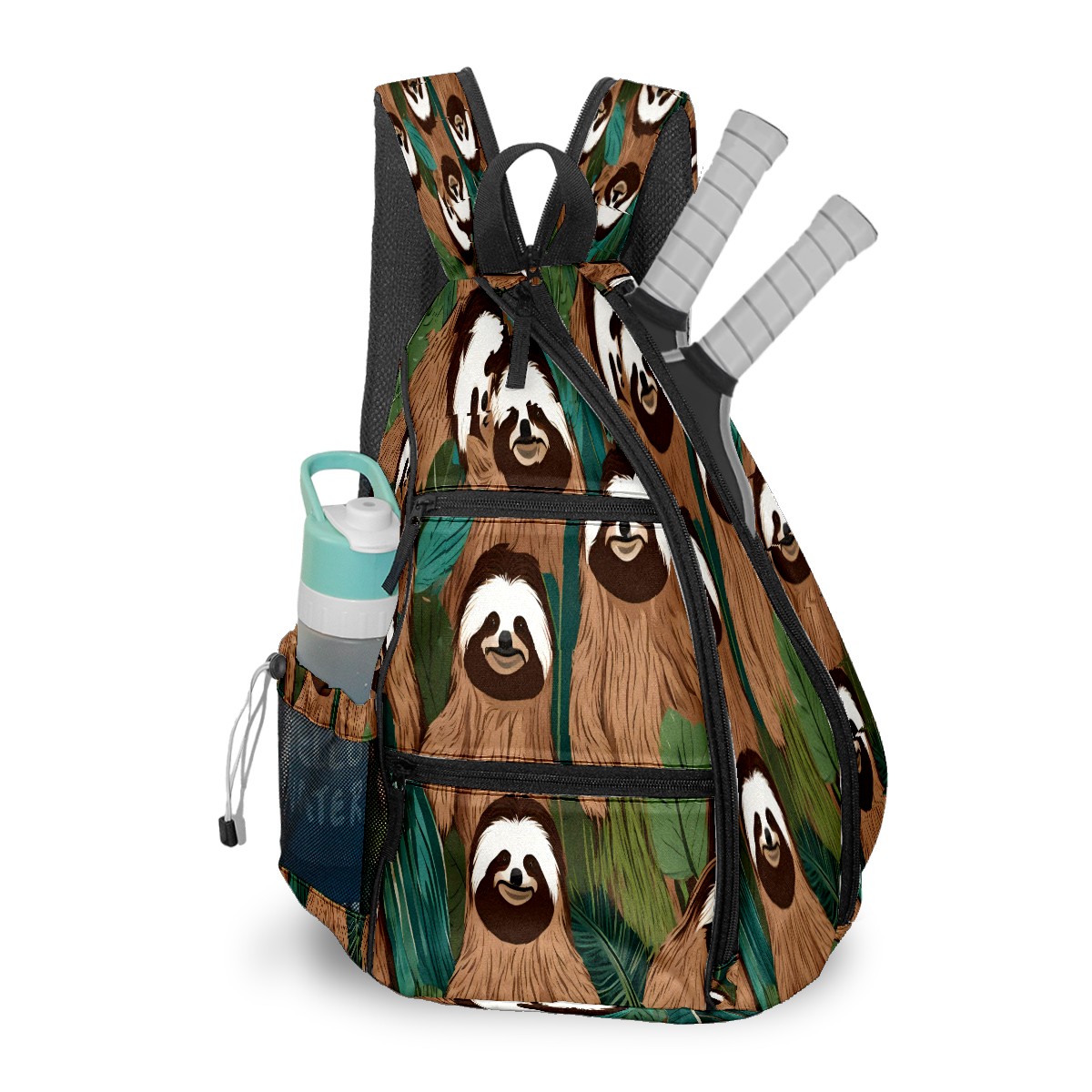 Multifunctional Pickleball Bag,Large Capacity Sports Pickleball Racket Bag, Water Bottle Holder and Fence Hook,Suitable for Both Men Women -Funny Sloth (07)