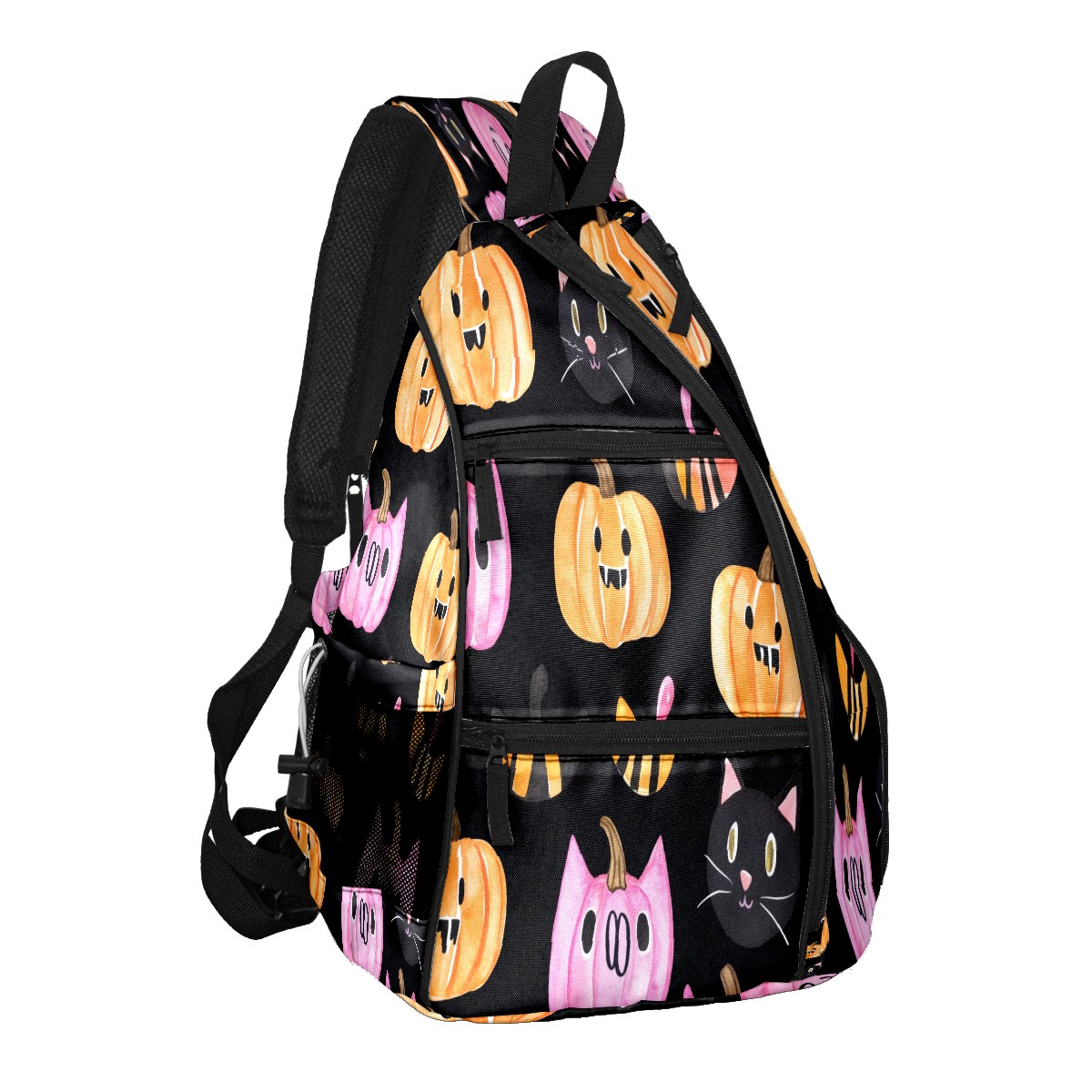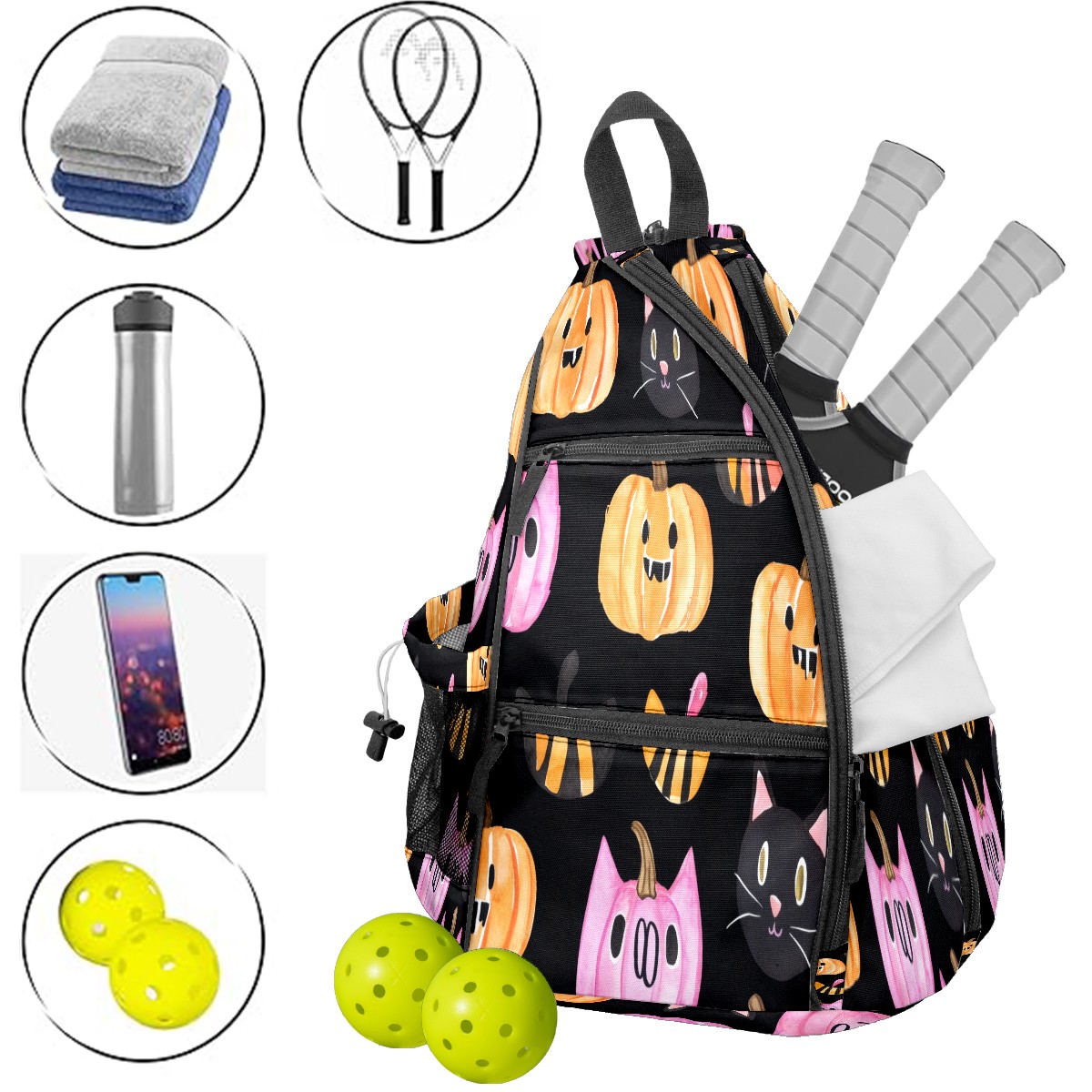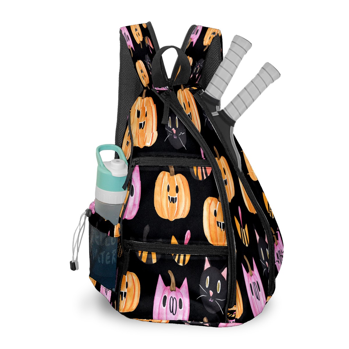 Multifunctional Pickleball Bag,Large Capacity Sports Pickleball Racket Bag, Water Bottle Holder and Fence Hook,Suitable for Both Men Women -Pumpkins Cats