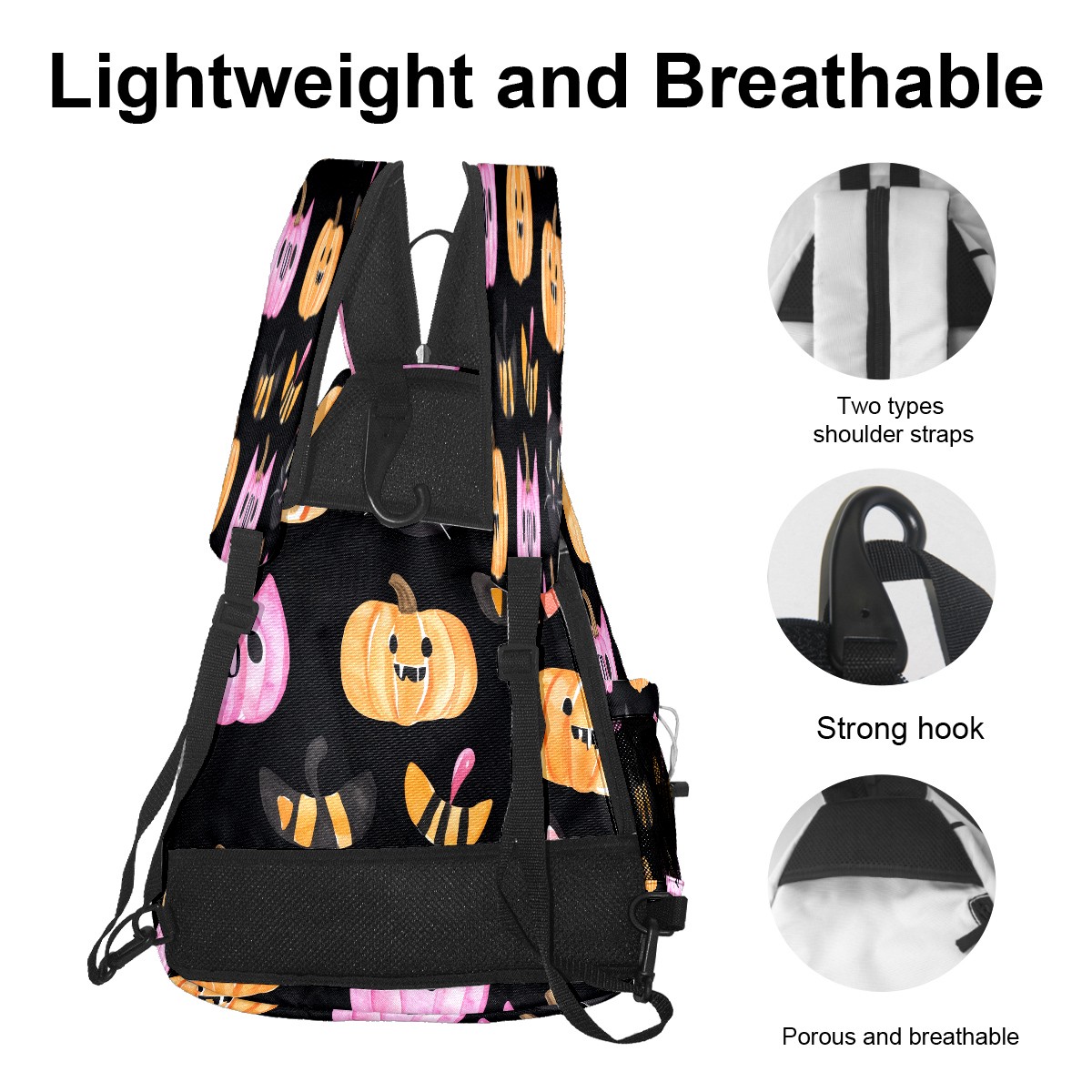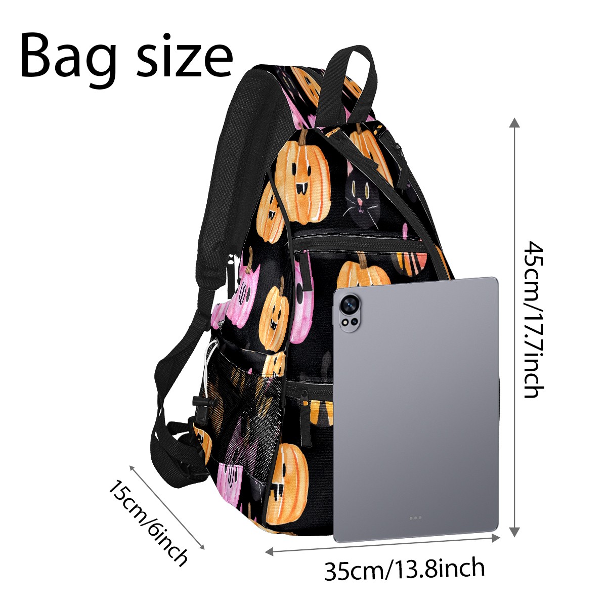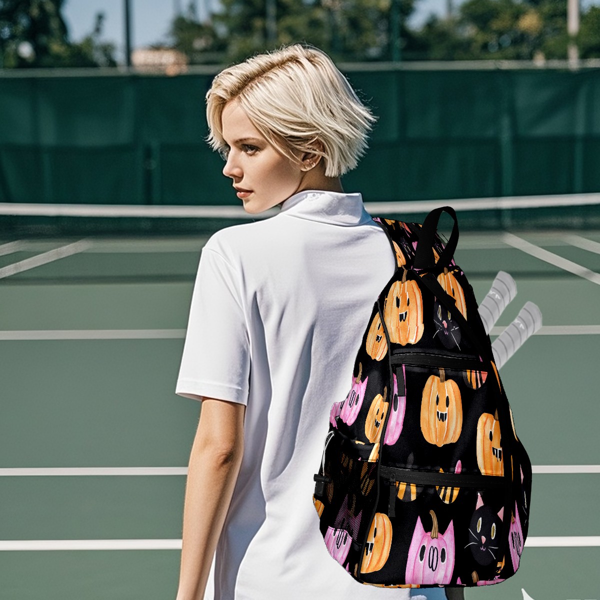 Multifunctional Pickleball Bag,Large Capacity Sports Pickleball Racket Bag, Water Bottle Holder and Fence Hook,Suitable for Both Men Women -Pumpkins Cats