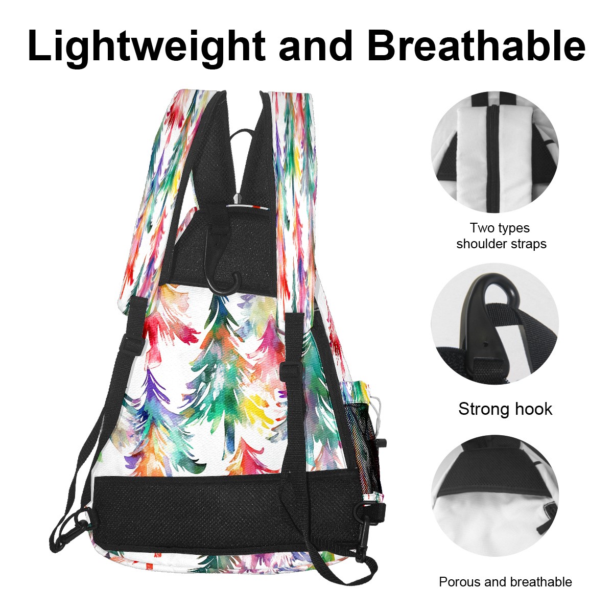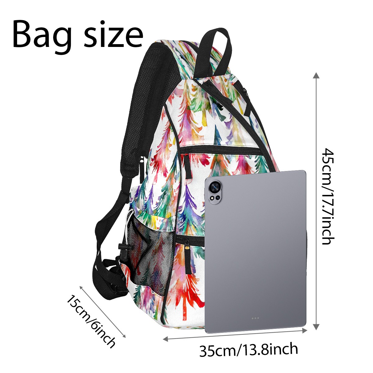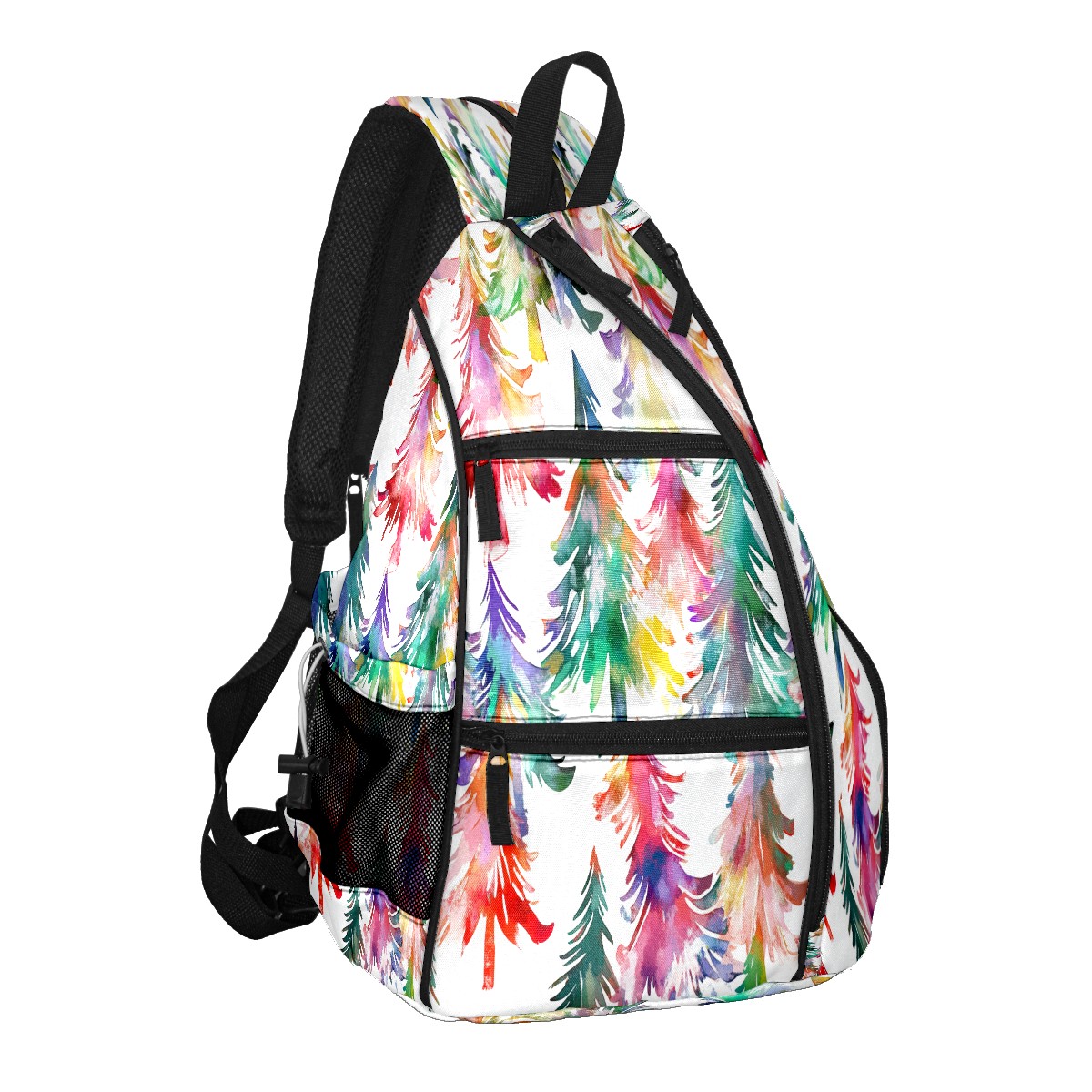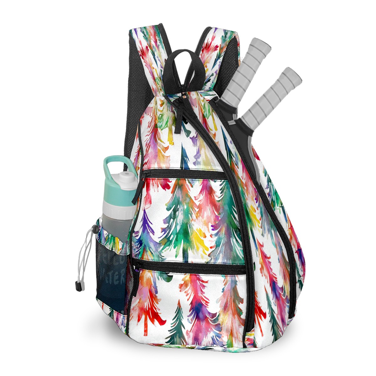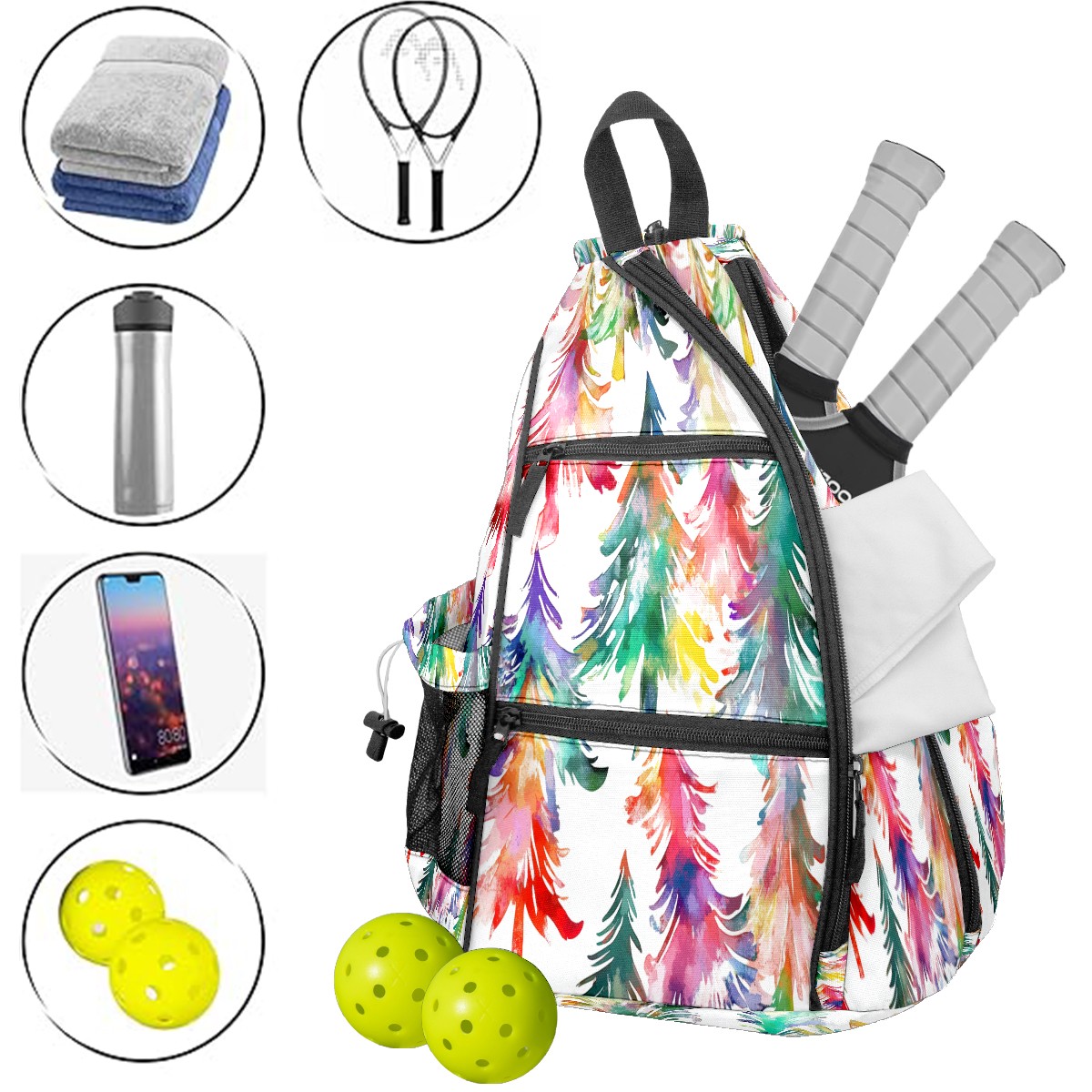 Multifunctional Pickleball Bag,Large Capacity Sports Pickleball Racket Bag, Water Bottle Holder and Fence Hook,Suitable for Both Men Women -Colorful Christmas Trees