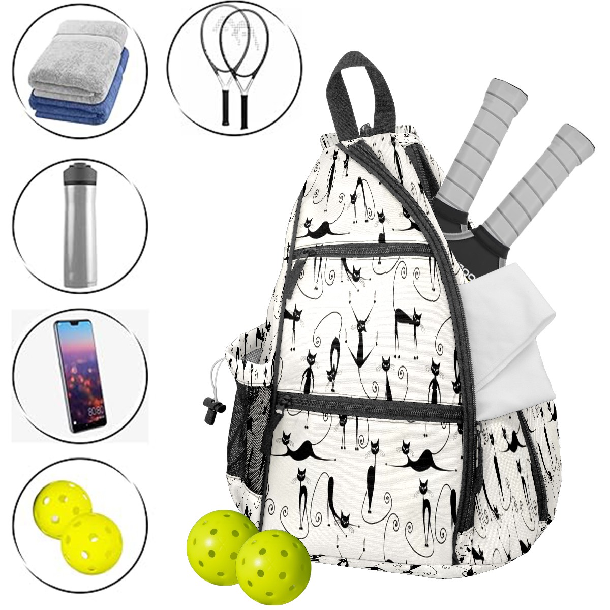 Multifunctional Pickleball Bag,Large Capacity Sports Pickleball Racket Bag, Water Bottle Holder and Fence Hook,Suitable for Both Men Women -Cat Pattern