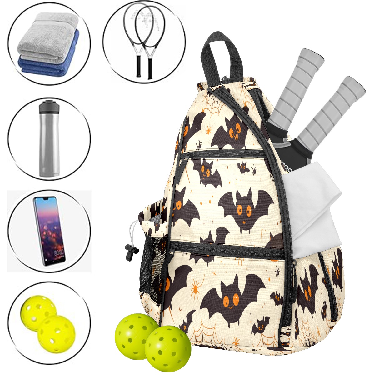 Multifunctional Pickleball Bag,Large Capacity Sports Pickleball Racket Bag, Water Bottle Holder and Fence Hook,Suitable for Both Men Women -Bat Spider Web