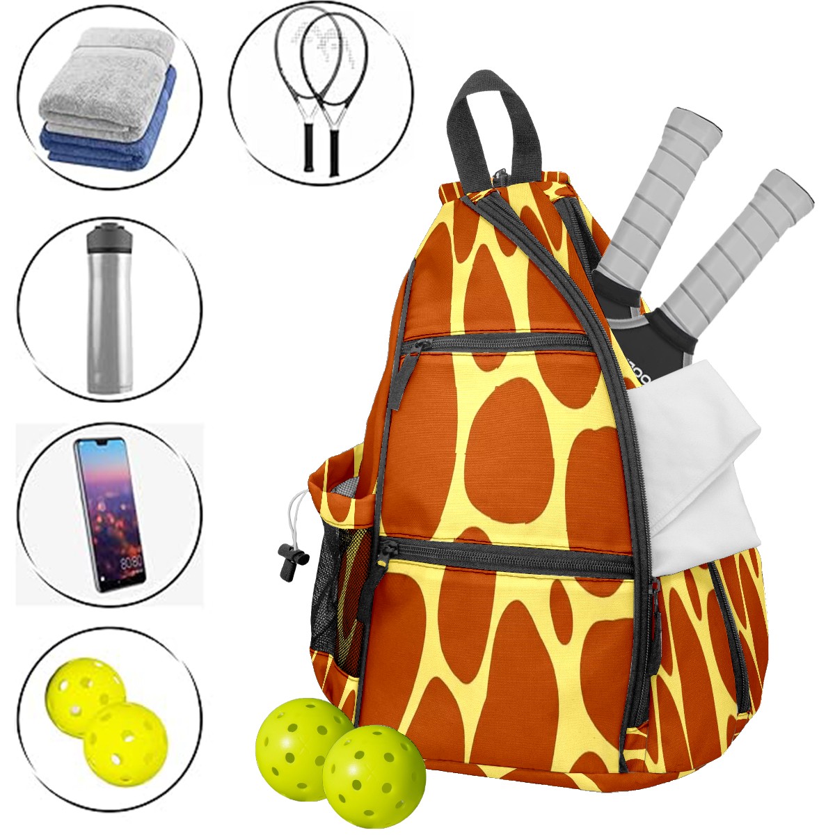 Multifunctional Pickleball Bag,Large Capacity Sports Pickleball Racket Bag, Water Bottle Holder and Fence Hook,Suitable for Both Men Women -Yellow Seamless