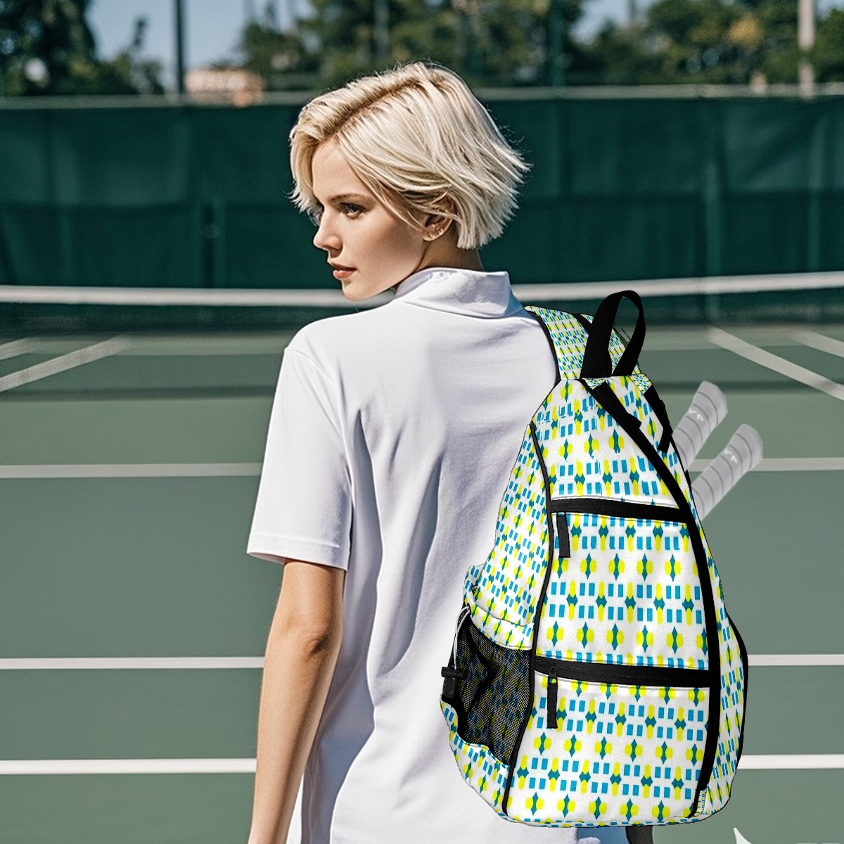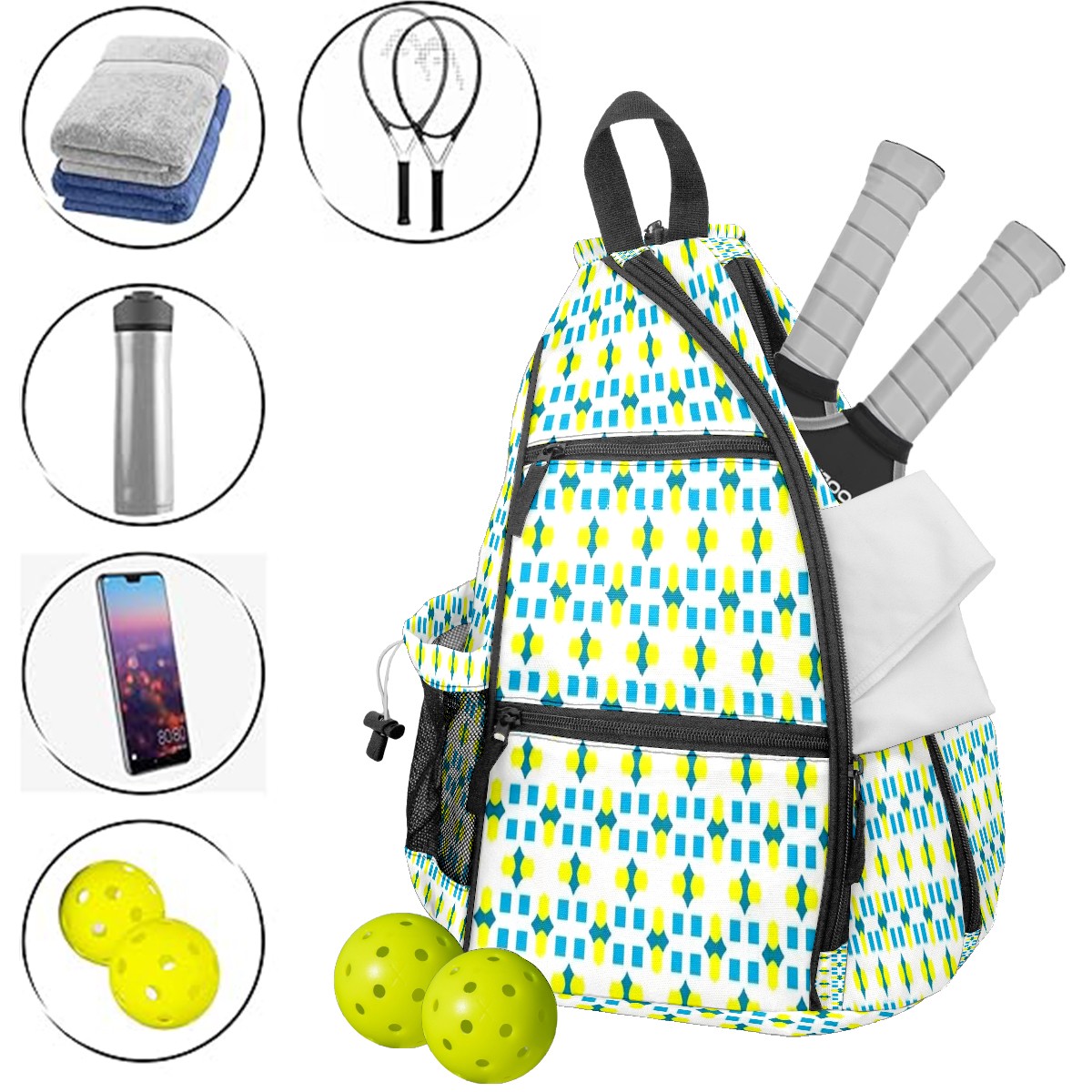 Multifunctional Pickleball Bag,Large Capacity Sports Pickleball Racket Bag, Water Bottle Holder and Fence Hook,Suitable for Both Men Women -Pattern