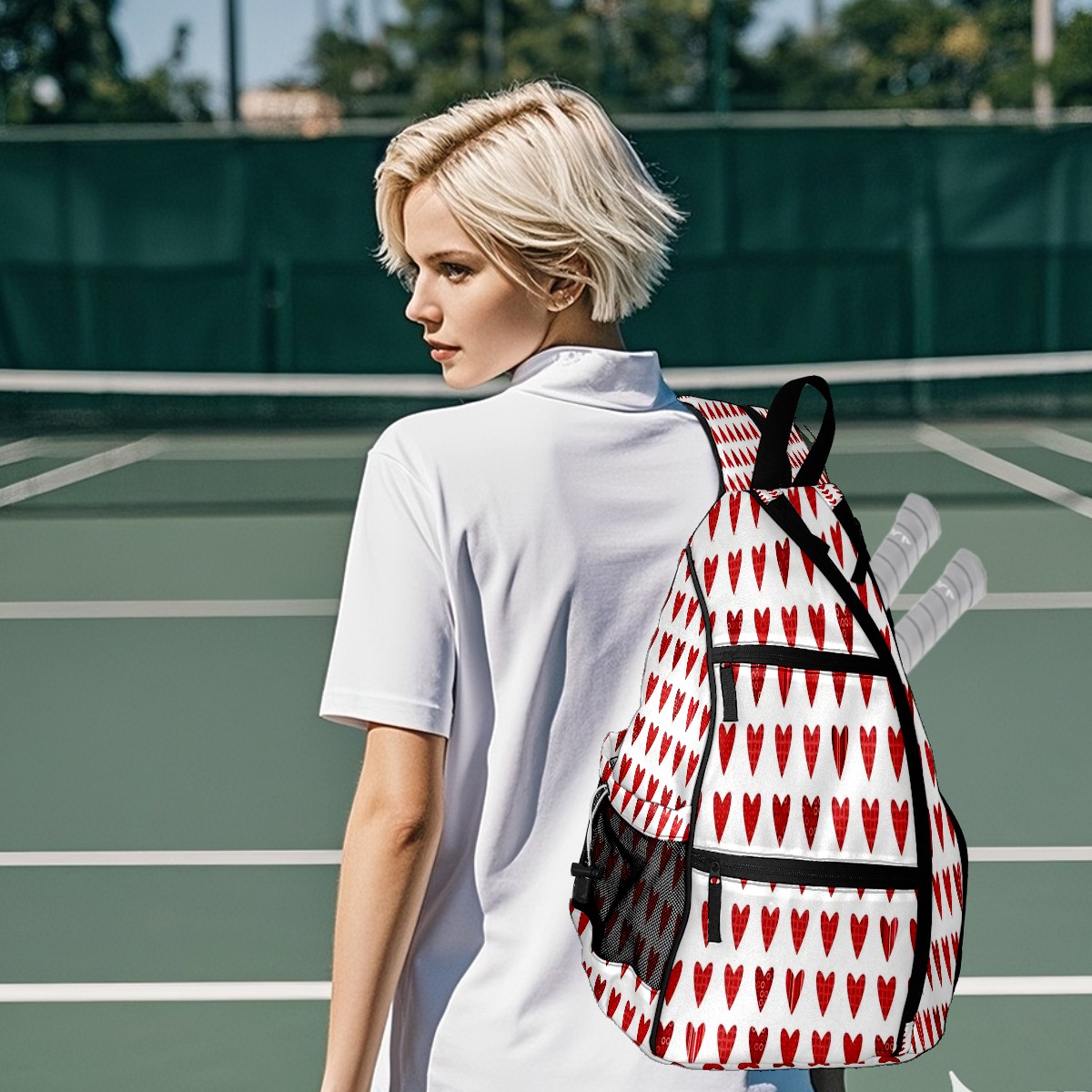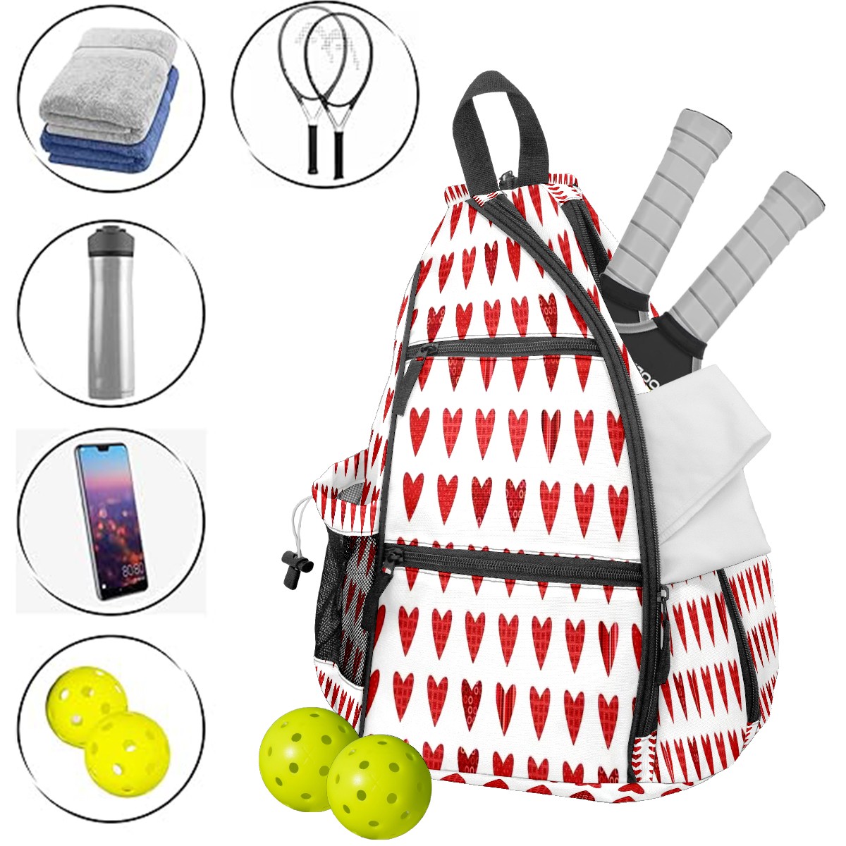 Multifunctional Pickleball Bag,Large Capacity Sports Pickleball Racket Bag, Water Bottle Holder and Fence Hook,Suitable for Both Men Women -Heart