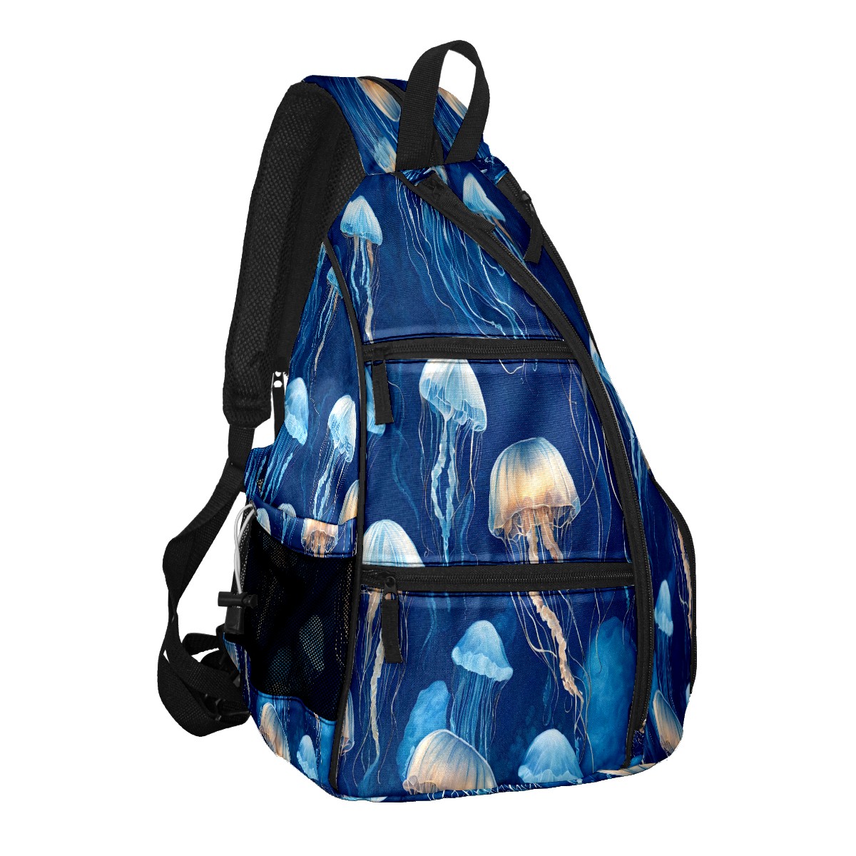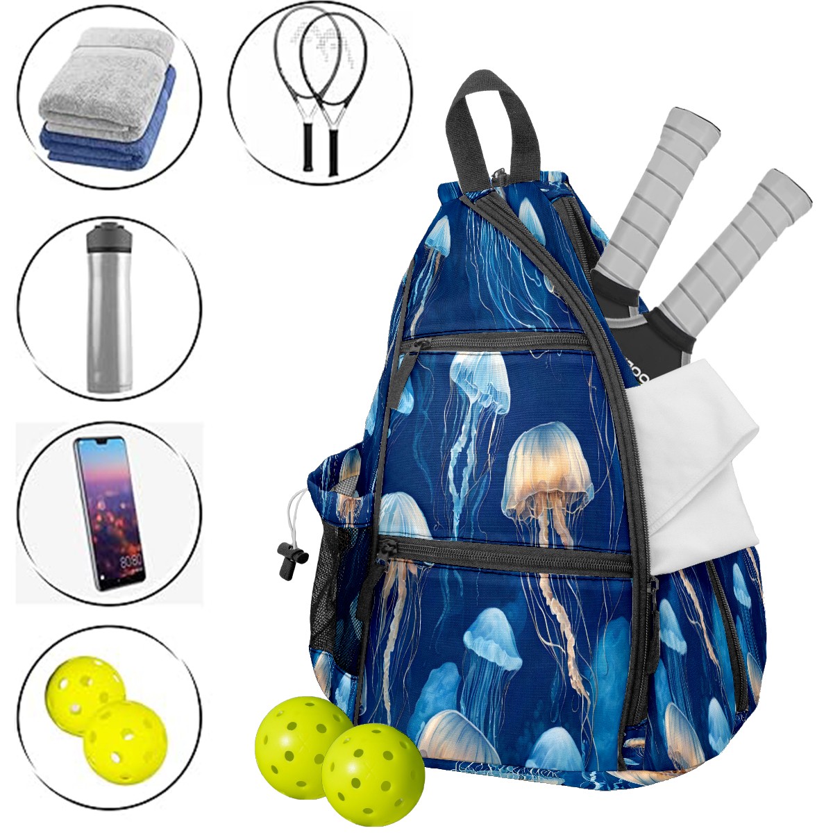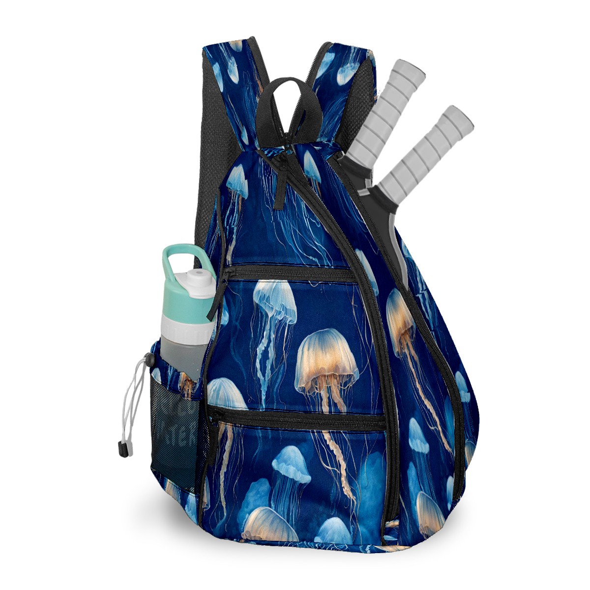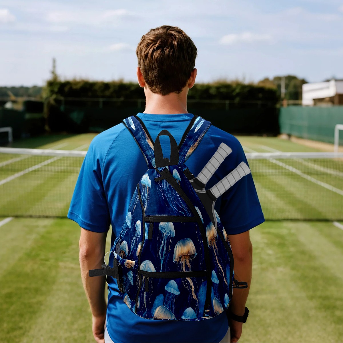 Multifunctional Pickleball Bag,Large Capacity Sports Pickleball Racket Bag, Water Bottle Holder and Fence Hook,Suitable for Both Men Women -Multicolor Jellyfish (07)