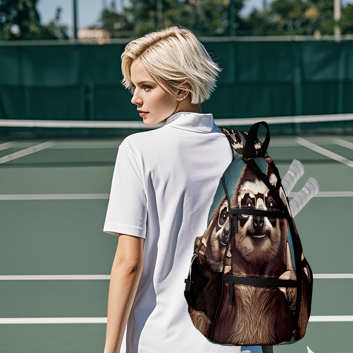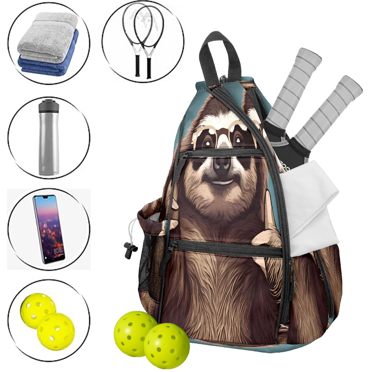 Multifunctional Pickleball Bag,Large Capacity Sports Pickleball Racket Bag, Water Bottle Holder and Fence Hook,Suitable for Both Men Women -Funny Sloth (5)
