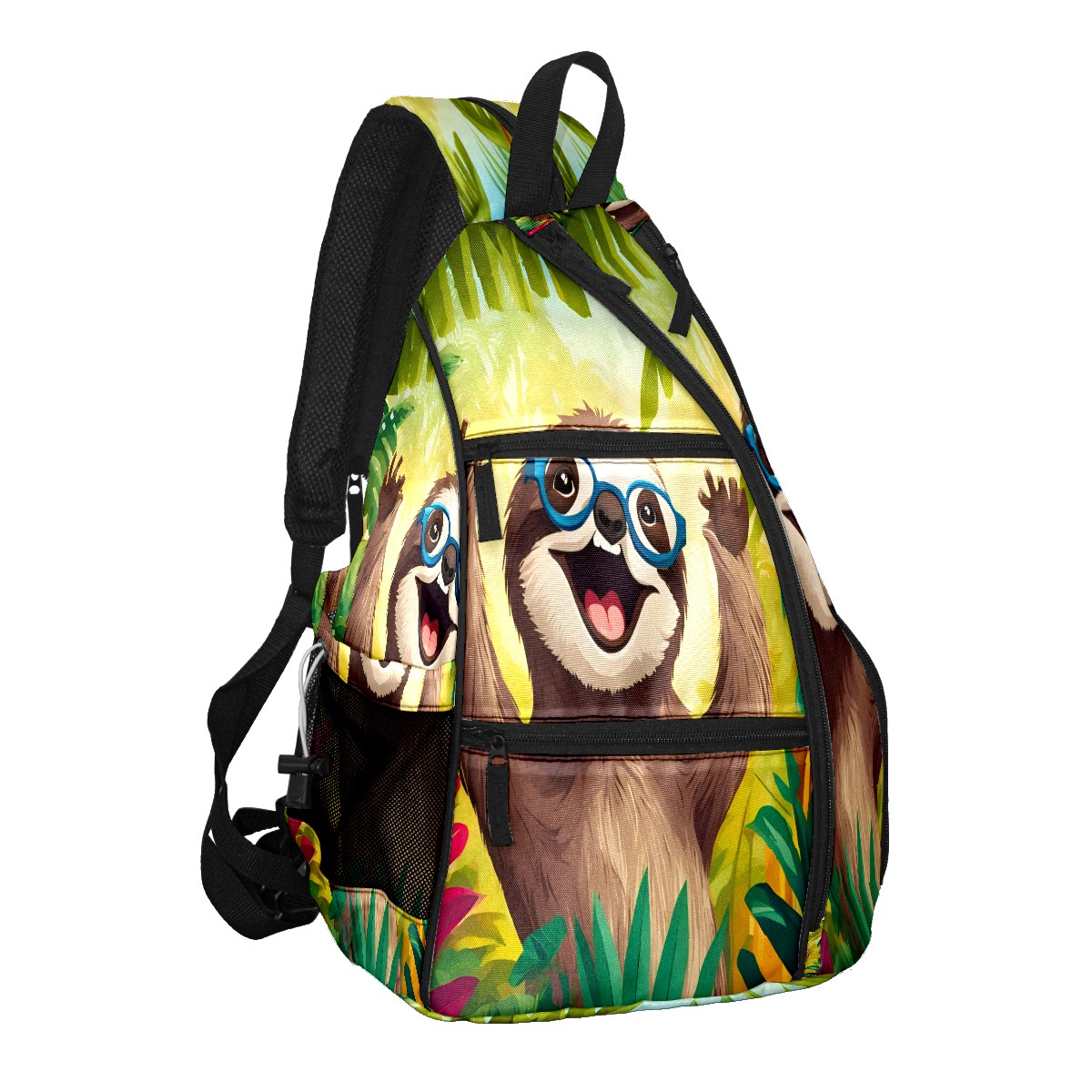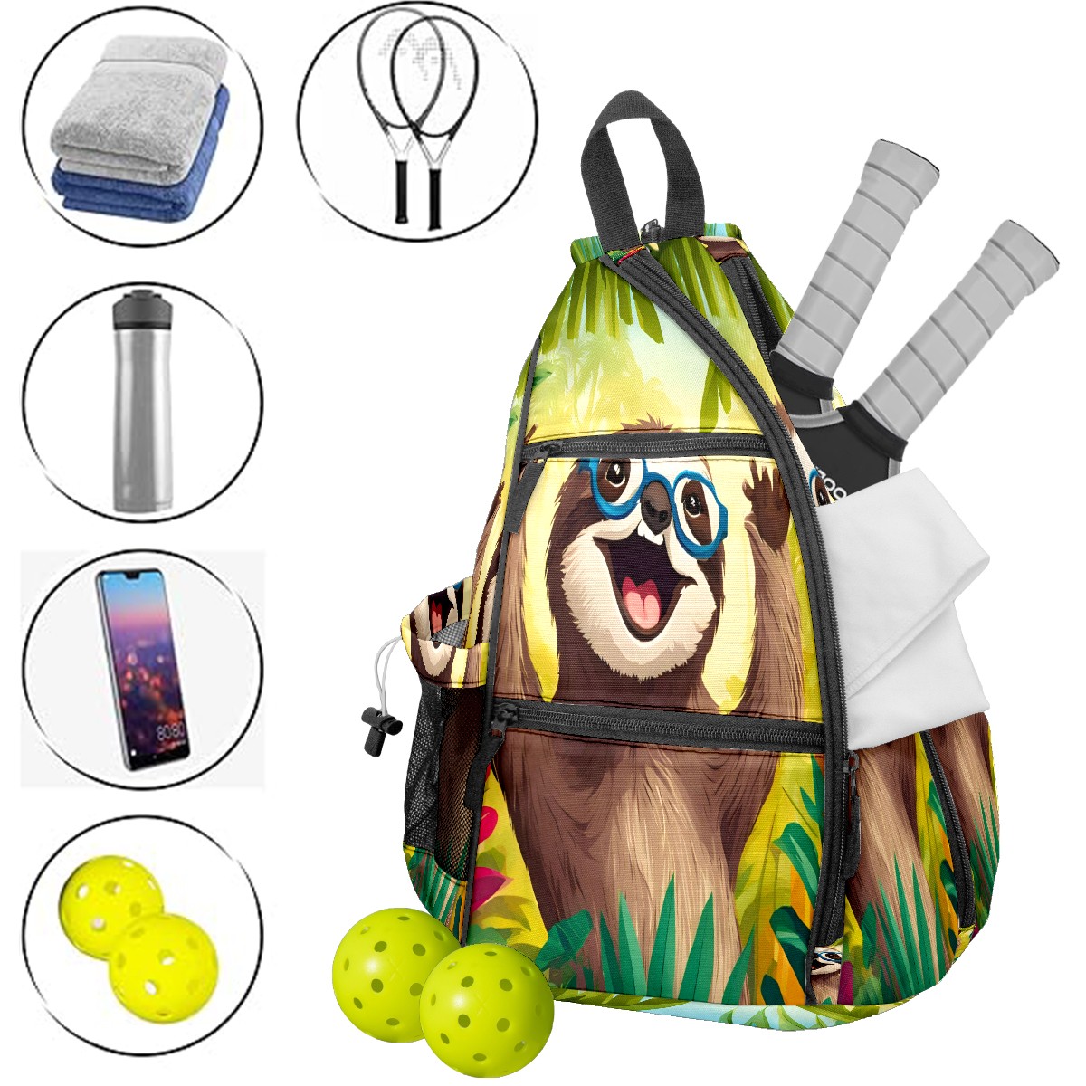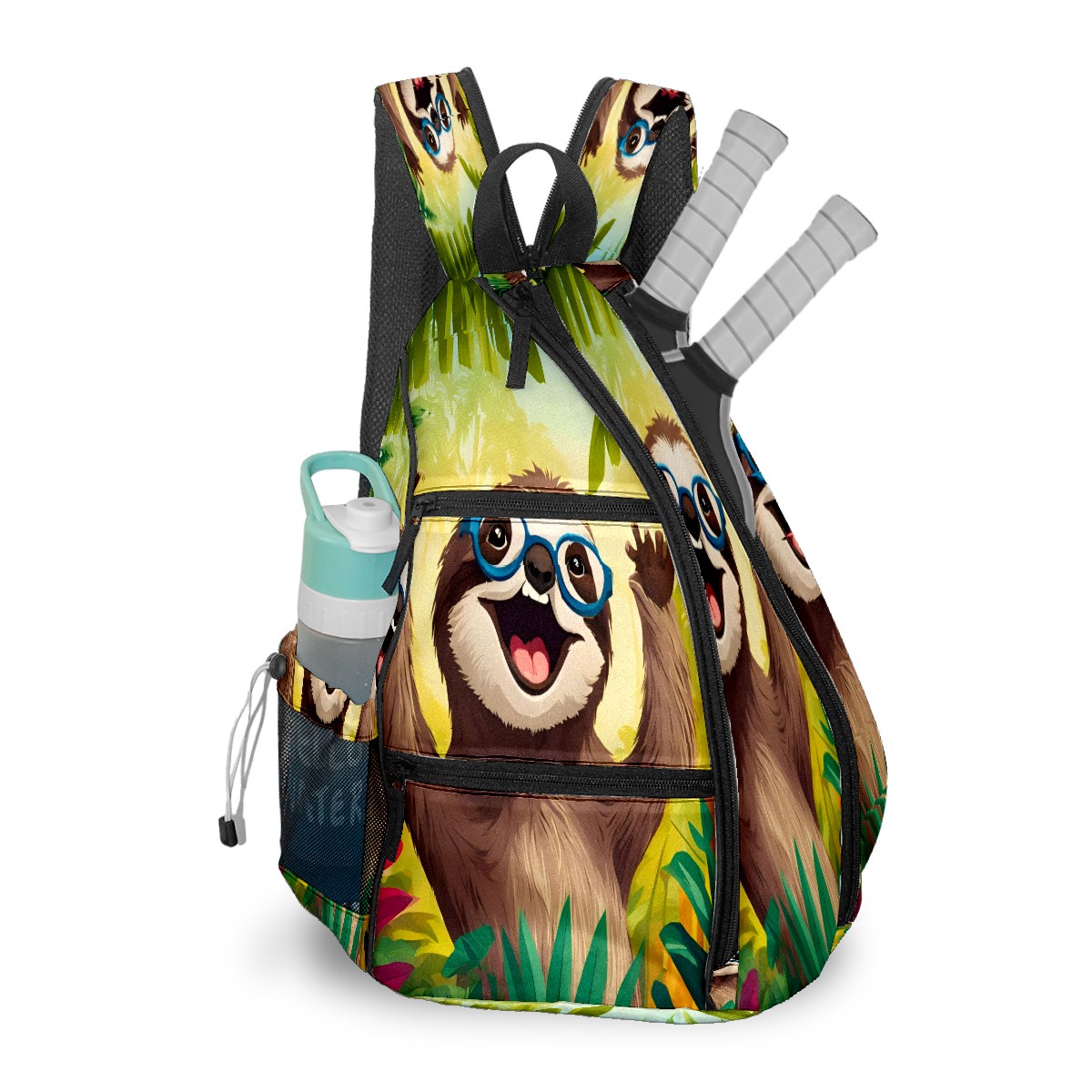 Multifunctional Pickleball Bag,Large Capacity Sports Pickleball Racket Bag, Water Bottle Holder and Fence Hook,Suitable for Both Men Women -Funny Sloth (6)