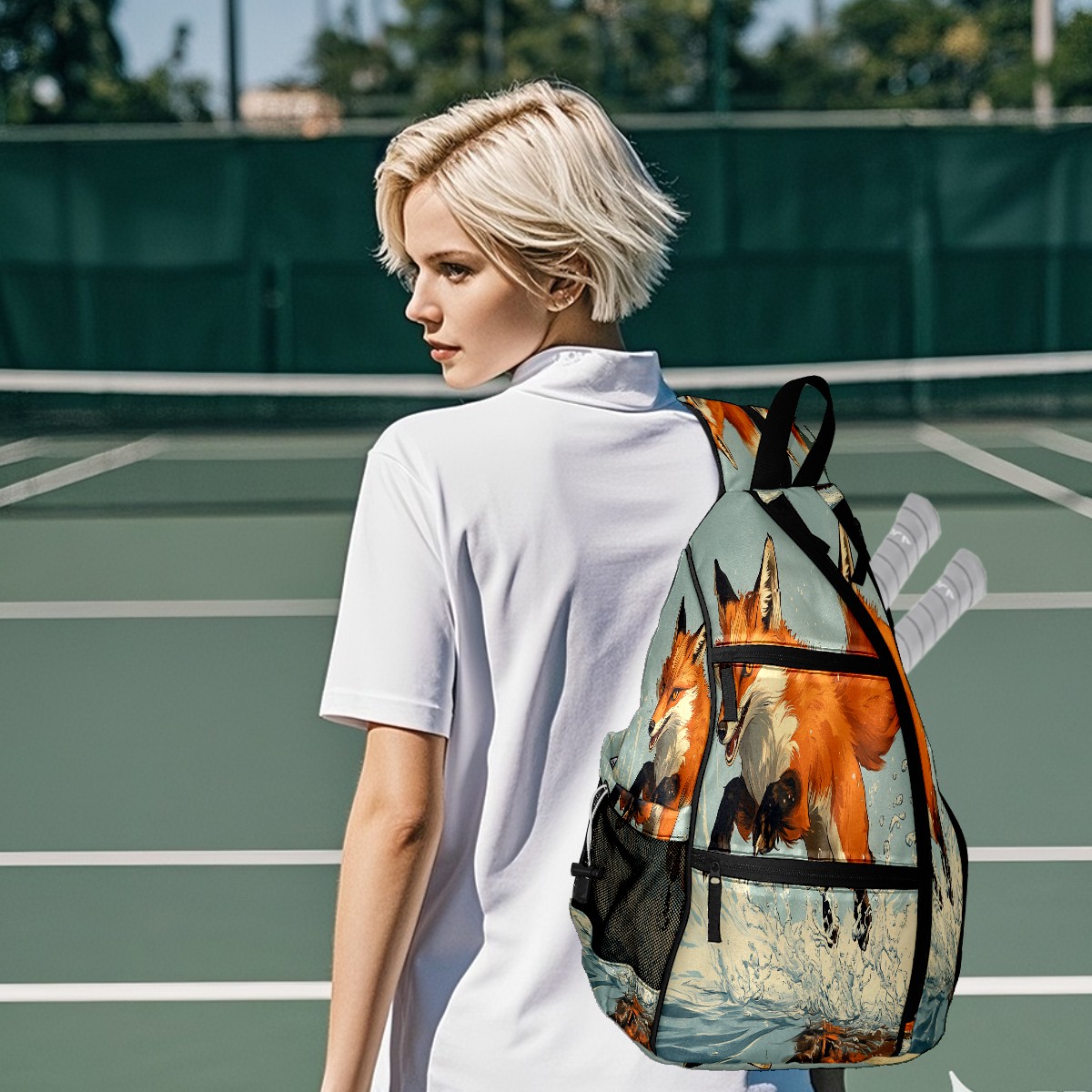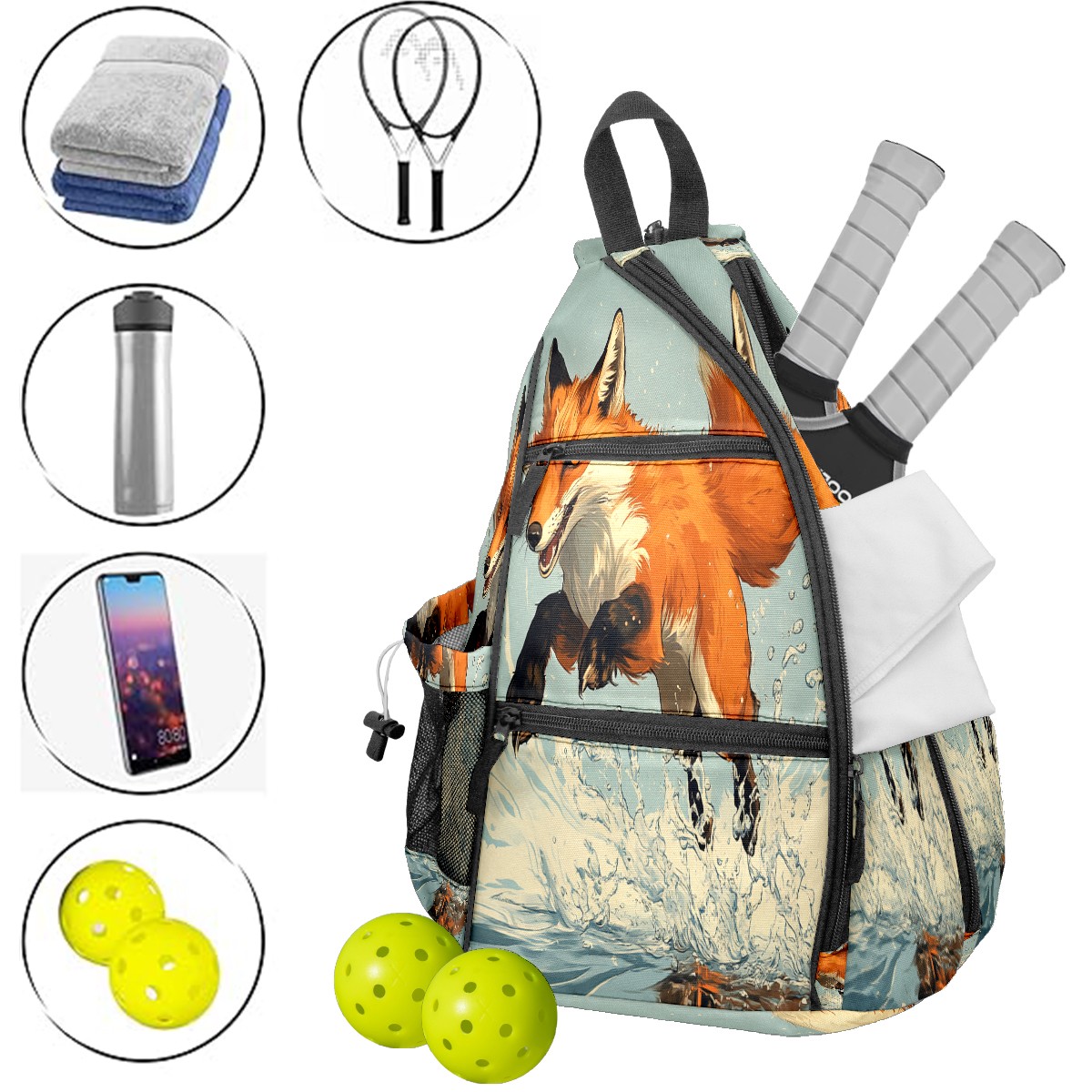 Multifunctional Pickleball Bag,Large Capacity Sports Pickleball Racket Bag, Water Bottle Holder and Fence Hook,Suitable for Both Men Women -Joyful Fox