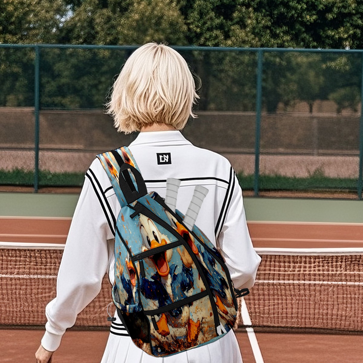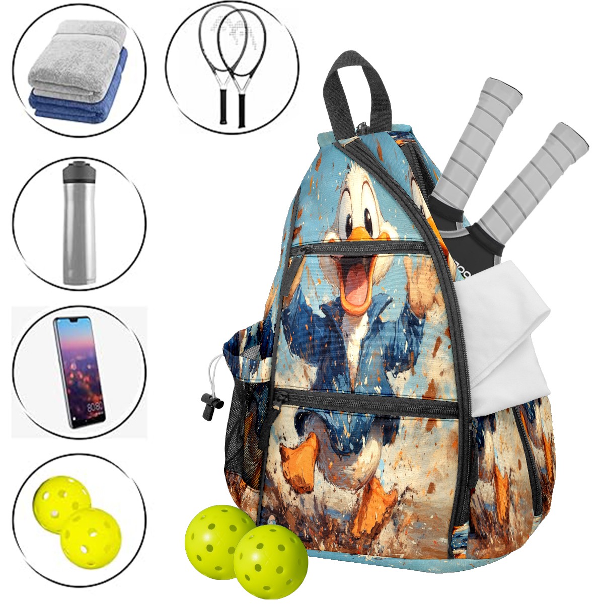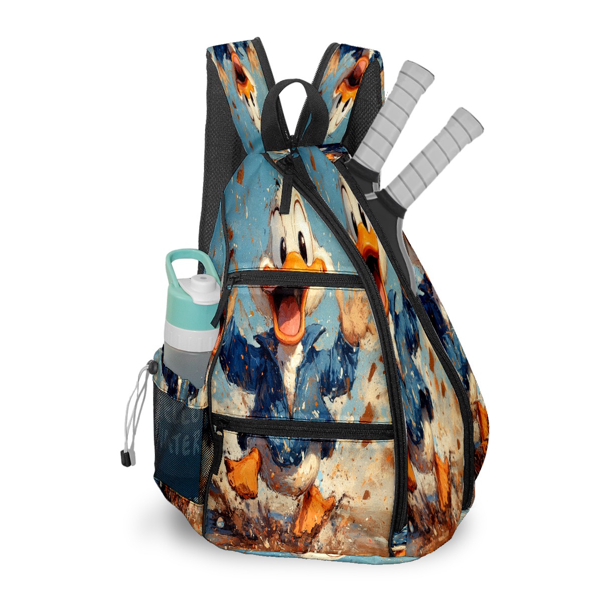 Multifunctional Pickleball Bag,Large Capacity Sports Pickleball Racket Bag, Water Bottle Holder and Fence Hook,Suitable for Both Men Women -Happy Duck