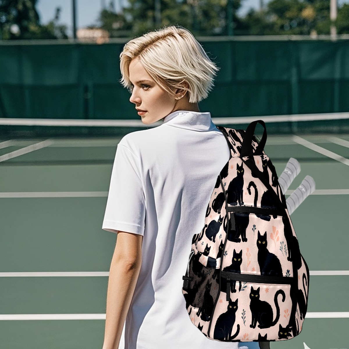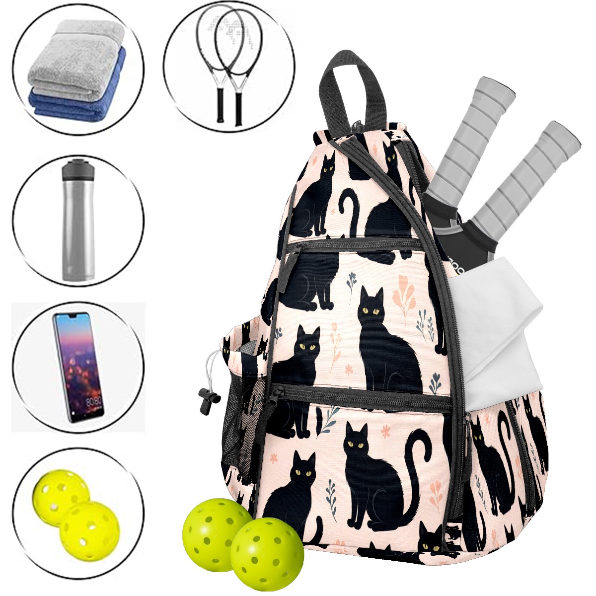 Multifunctional Pickleball Bag,Large Capacity Sports Pickleball Racket Bag, Water Bottle Holder and Fence Hook,Suitable for Both Men Women -Cat(3)