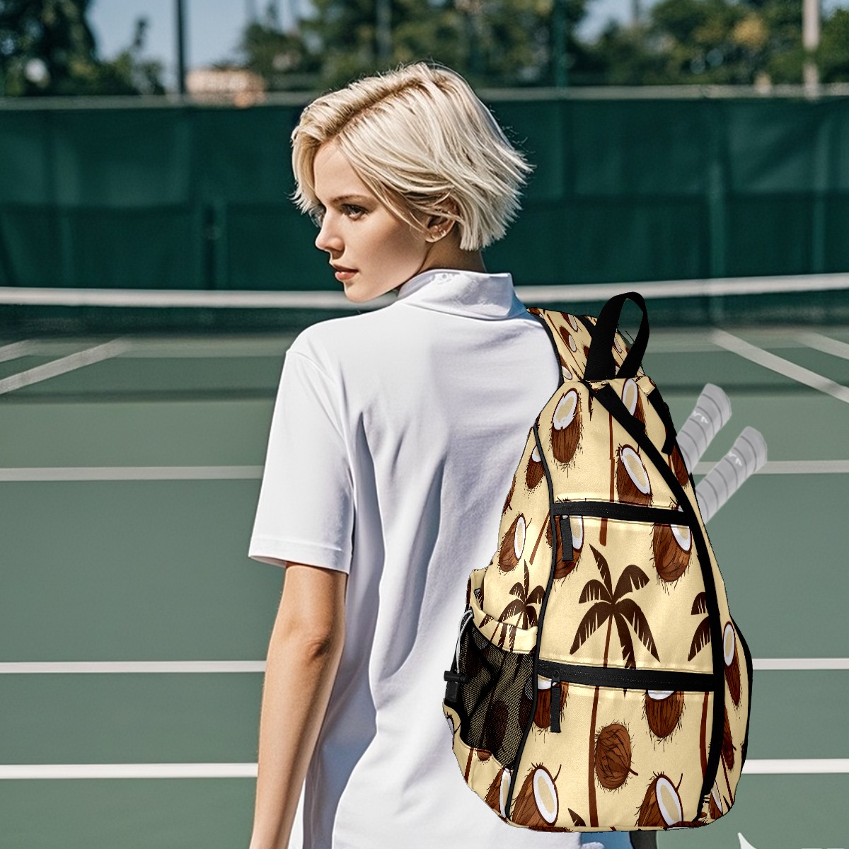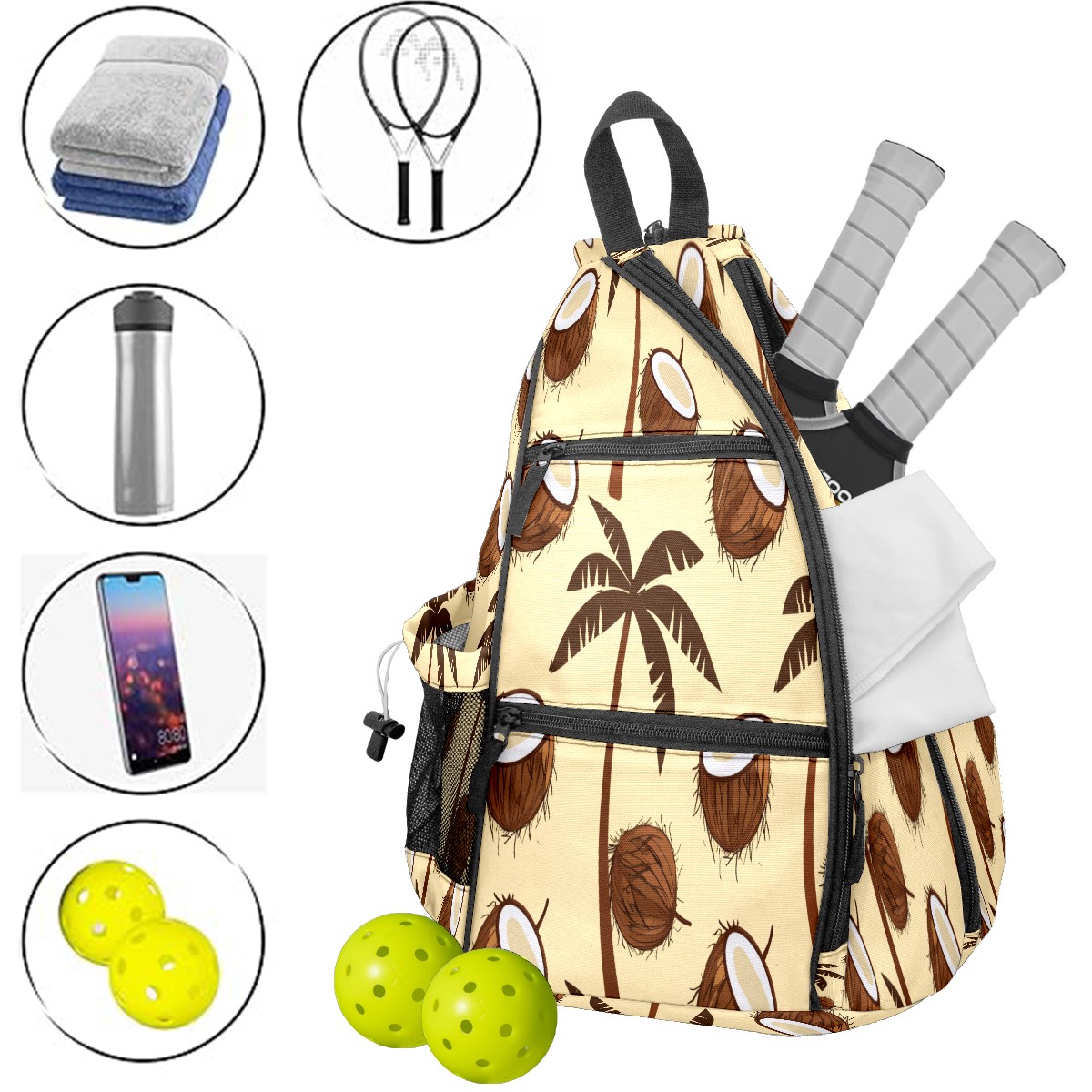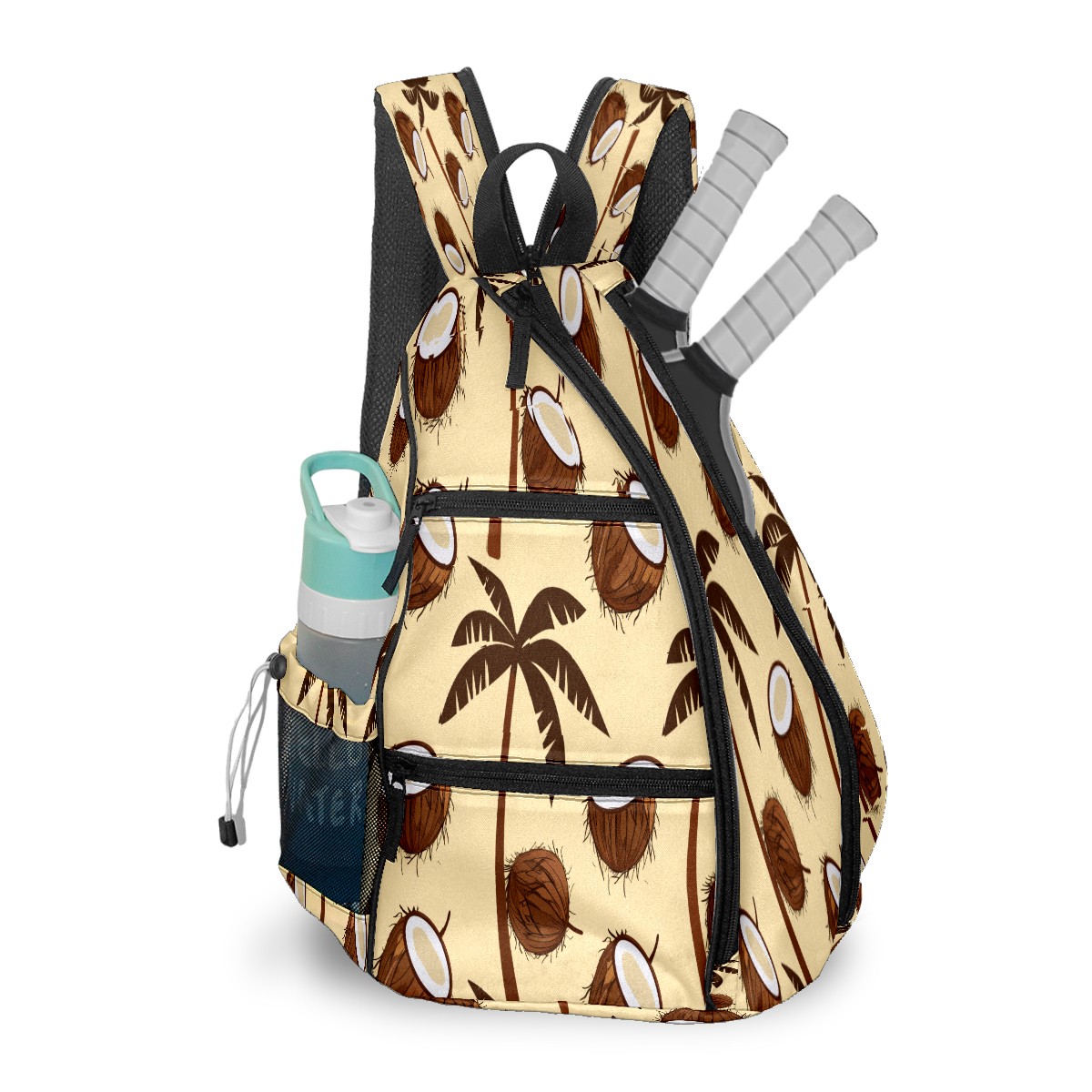 Multifunctional Pickleball Bag,Large Capacity Sports Pickleball Racket Bag, Water Bottle Holder and Fence Hook,Suitable for Both Men Women -Coconut Tree
