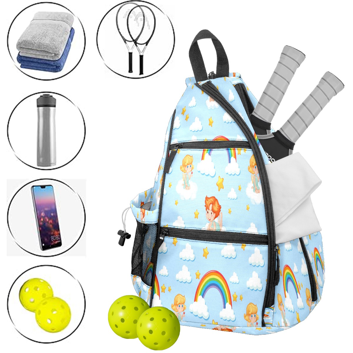 Multifunctional Pickleball Bag,Large Capacity Sports Pickleball Racket Bag, Water Bottle Holder and Fence Hook,Suitable for Both Men Women -Cloud