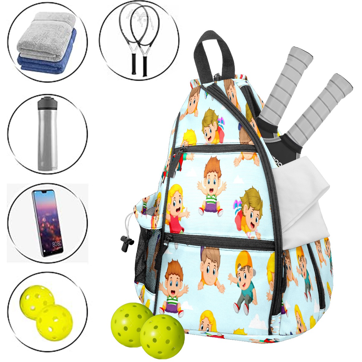 Multifunctional Pickleball Bag,Large Capacity Sports Pickleball Racket Bag, Water Bottle Holder and Fence Hook,Suitable for Both Men Women -Flying