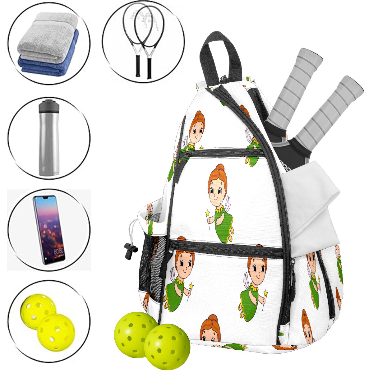 Multifunctional Pickleball Bag,Large Capacity Sports Pickleball Racket Bag, Water Bottle Holder and Fence Hook,Suitable for Both Men Women -Happy Fairy