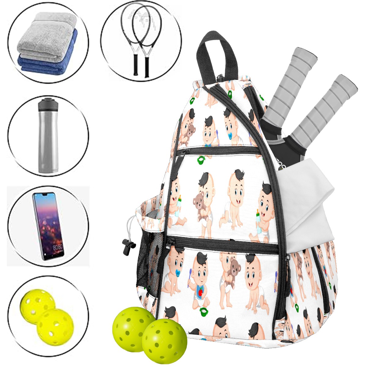 Multifunctional Pickleball Bag,Large Capacity Sports Pickleball Racket Bag, Water Bottle Holder and Fence Hook,Suitable for Both Men Women -Baby