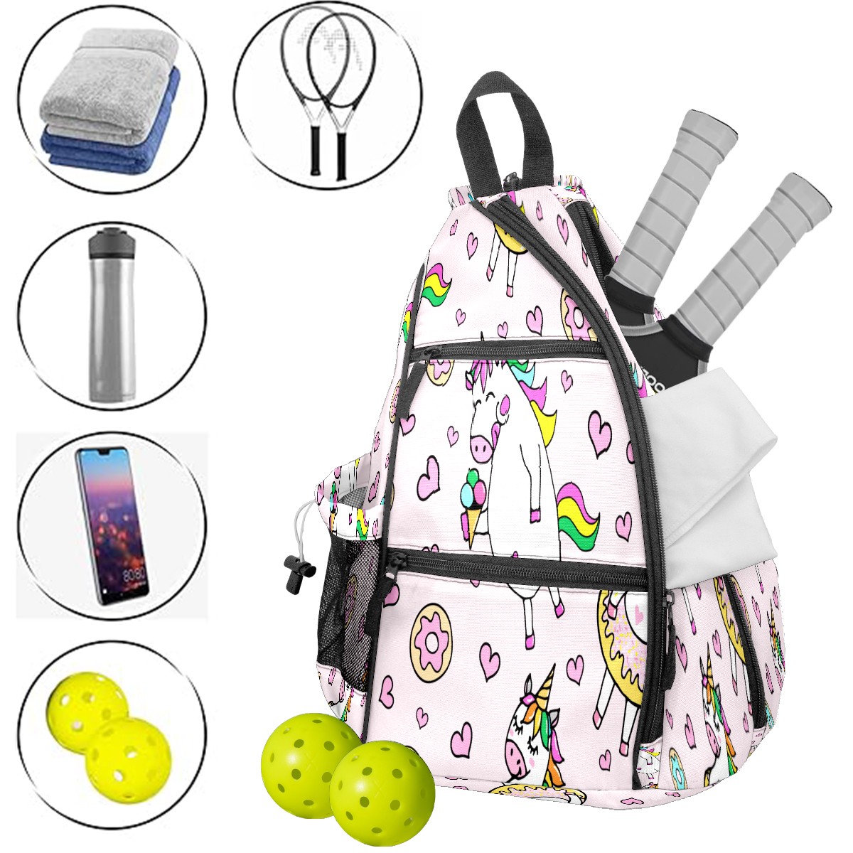 Multifunctional Pickleball Bag,Large Capacity Sports Pickleball Racket Bag, Water Bottle Holder and Fence Hook,Suitable for Both Men Women -White Horse