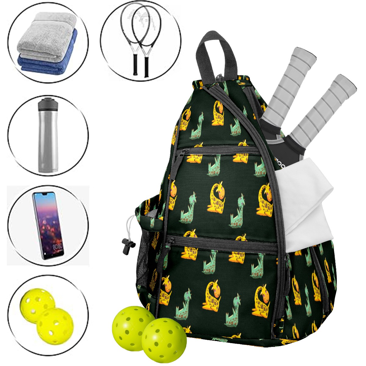 Multifunctional Pickleball Bag,Large Capacity Sports Pickleball Racket Bag, Water Bottle Holder and Fence Hook,Suitable for Both Men Women -Giraffe