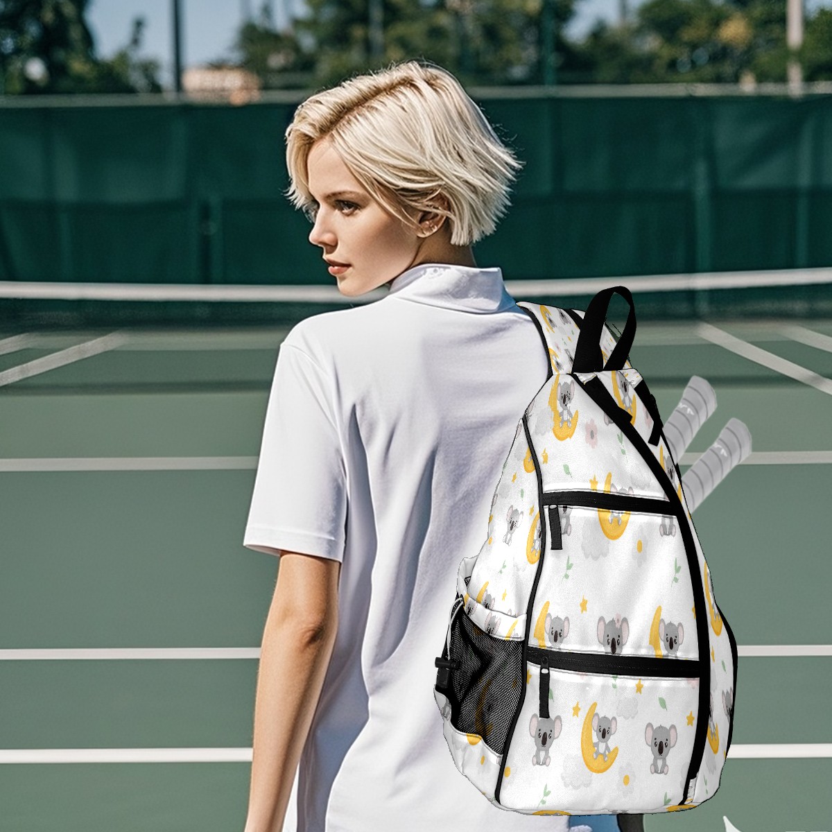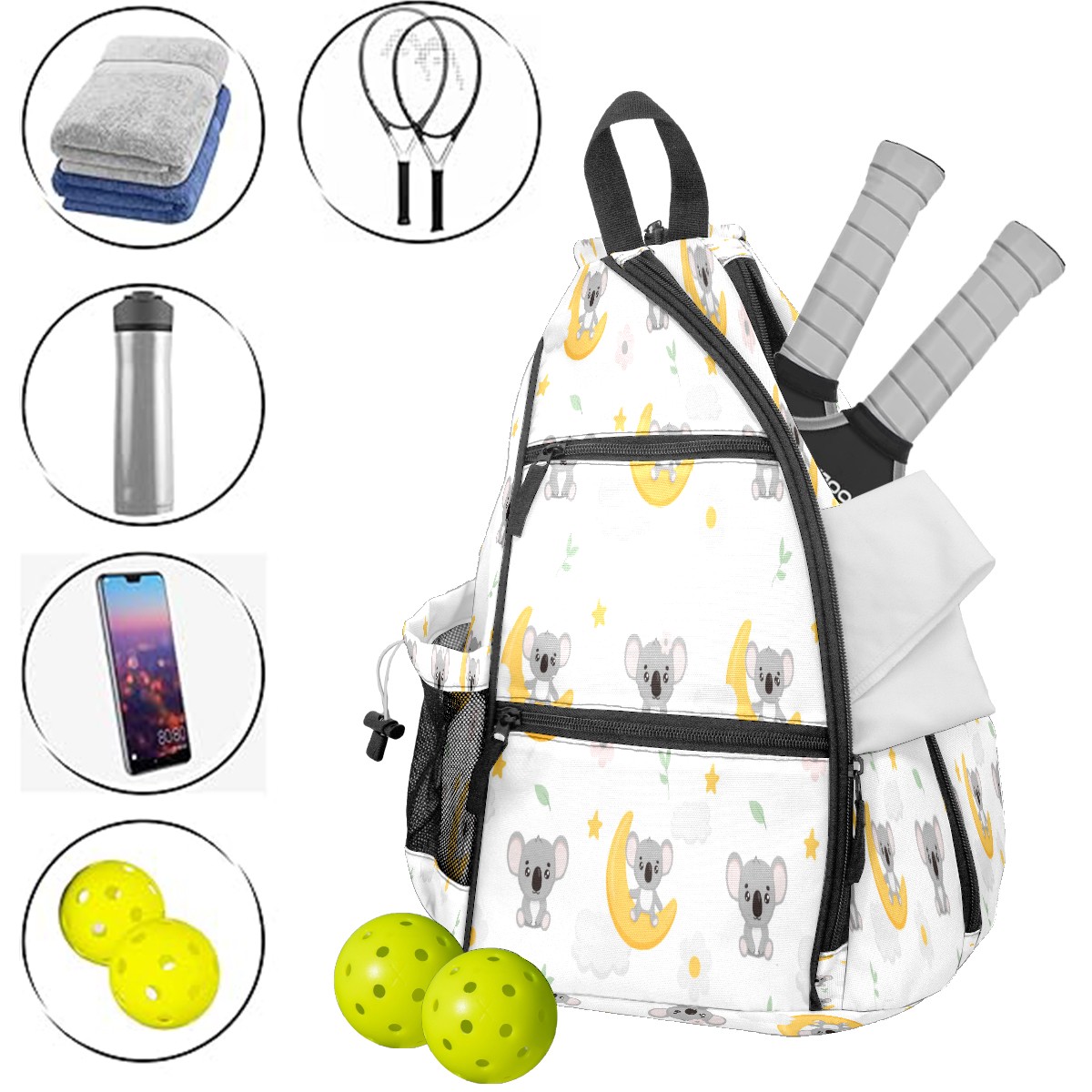 Multifunctional Pickleball Bag,Large Capacity Sports Pickleball Racket Bag, Water Bottle Holder and Fence Hook,Suitable for Both Men Women -Cute Print