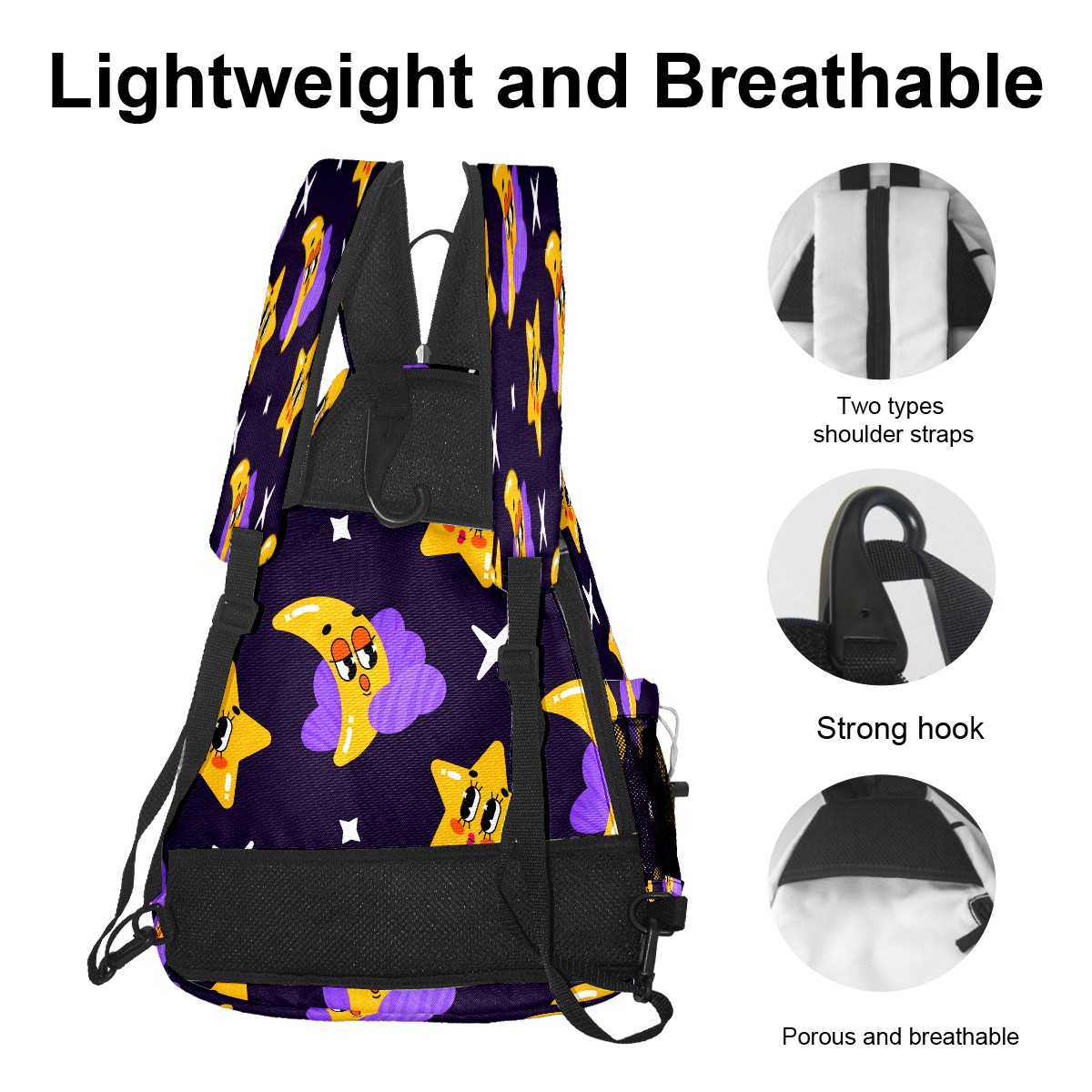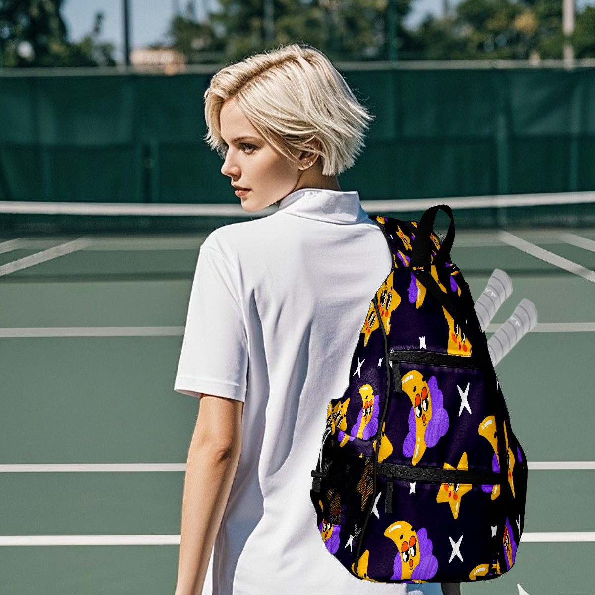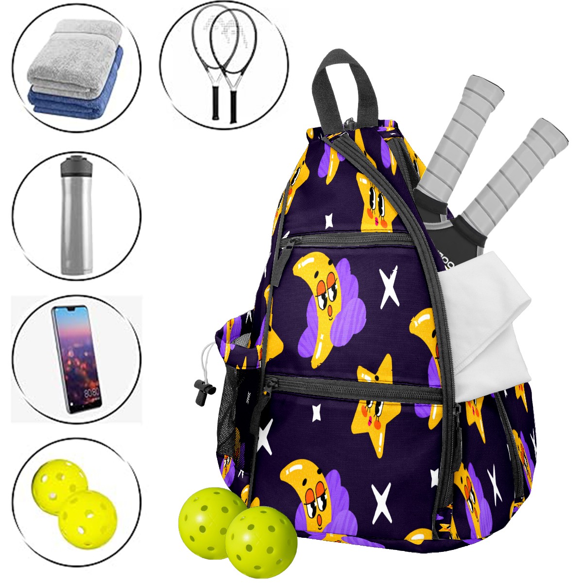 Multifunctional Pickleball Bag,Large Capacity Sports Pickleball Racket Bag, Water Bottle Holder and Fence Hook,Suitable for Both Men Women -Stars Moon