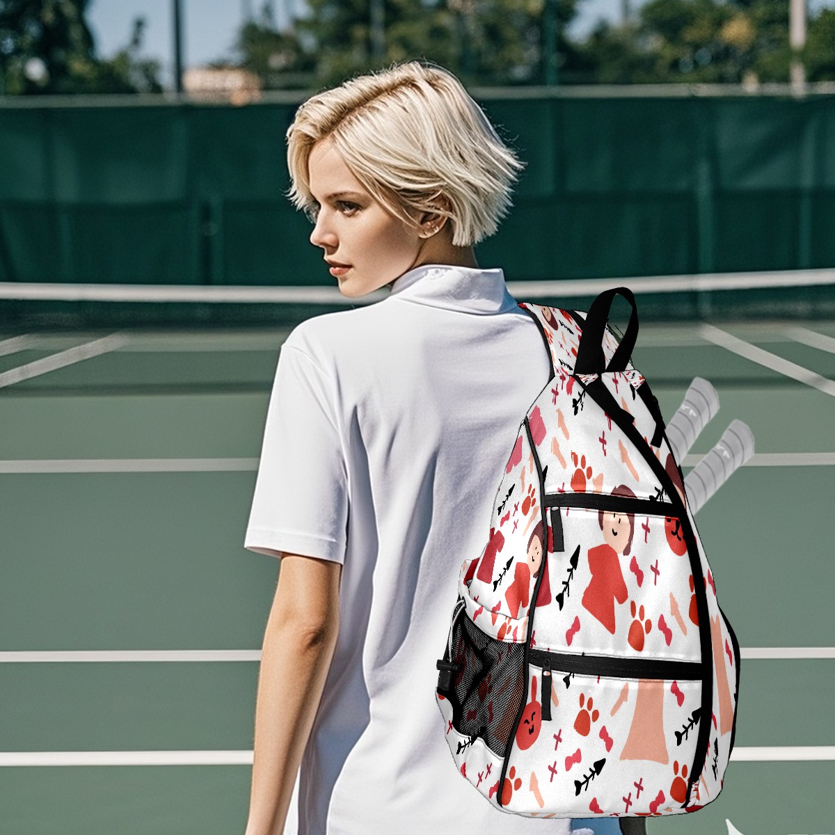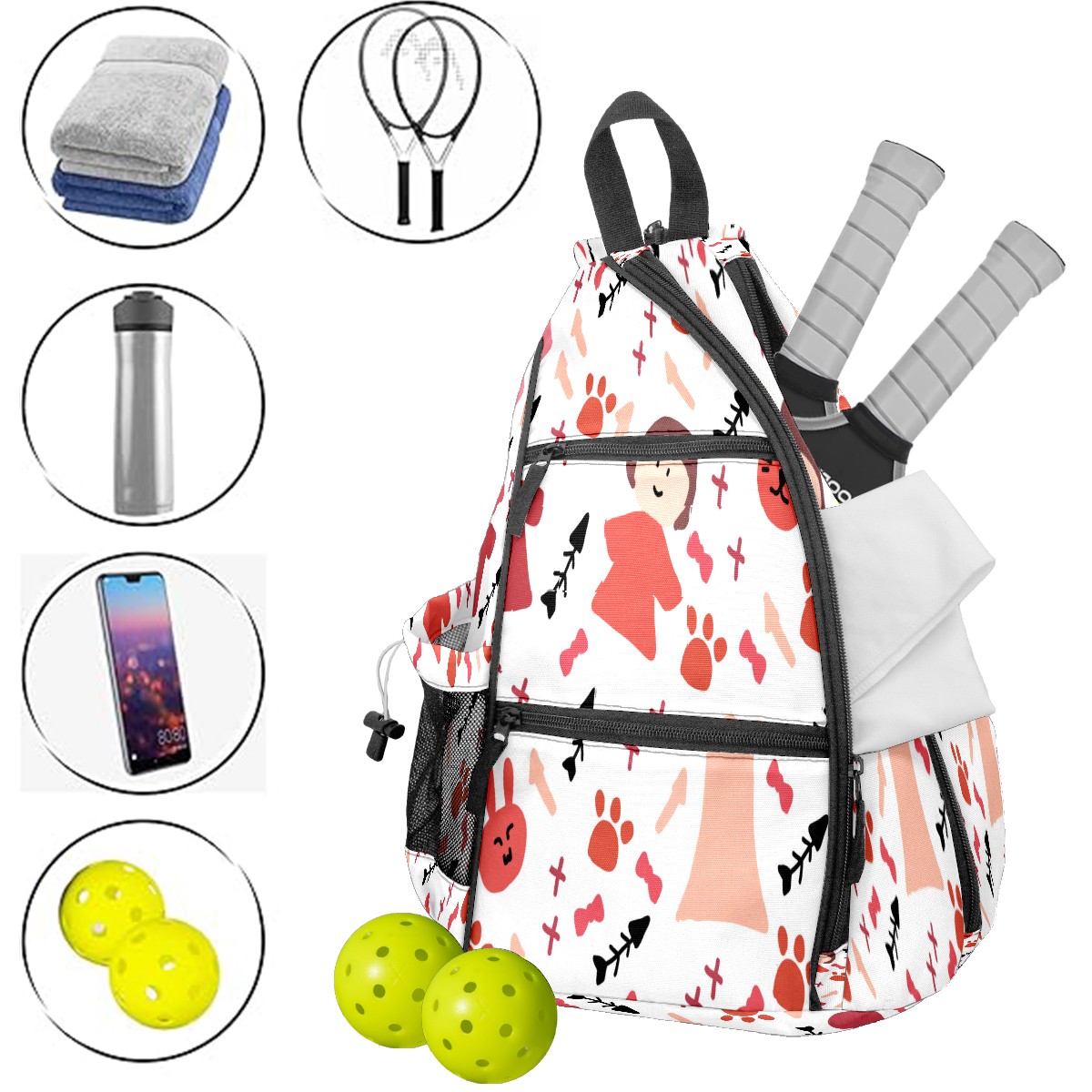 Multifunctional Pickleball Bag,Large Capacity Sports Pickleball Racket Bag, Water Bottle Holder and Fence Hook,Suitable for Both Men Women -Drawing Girl