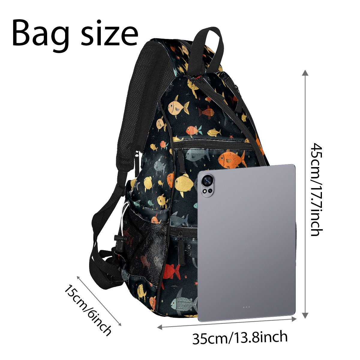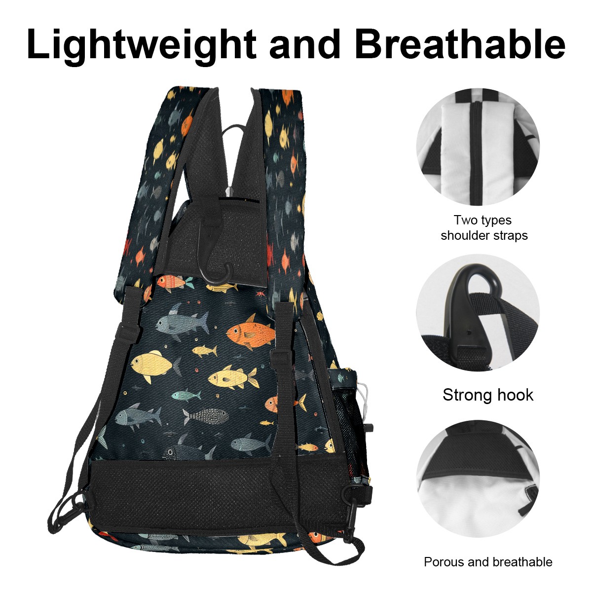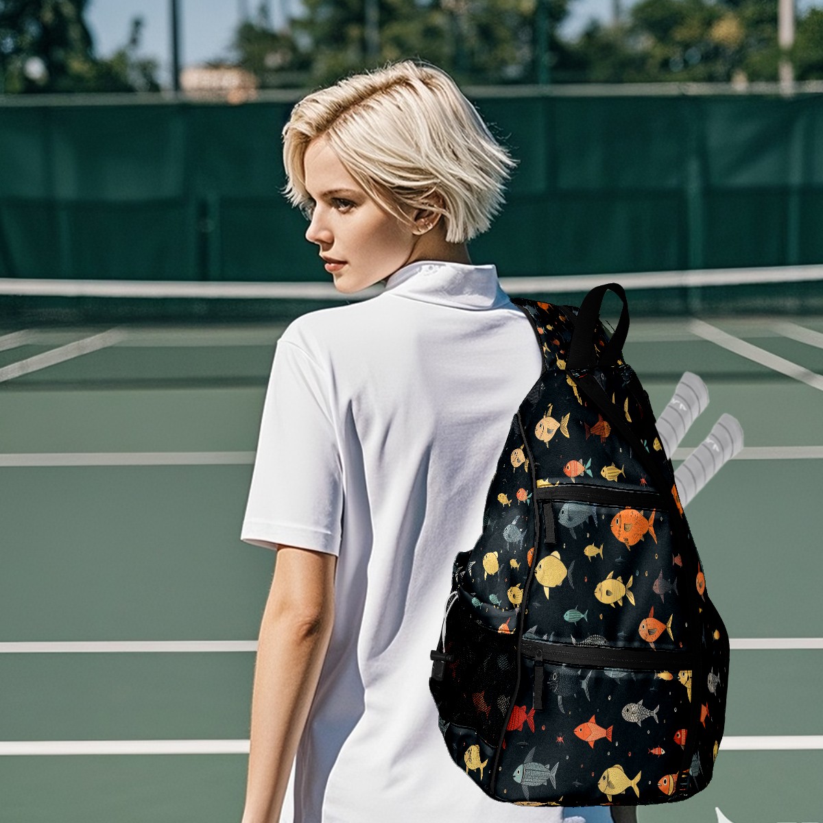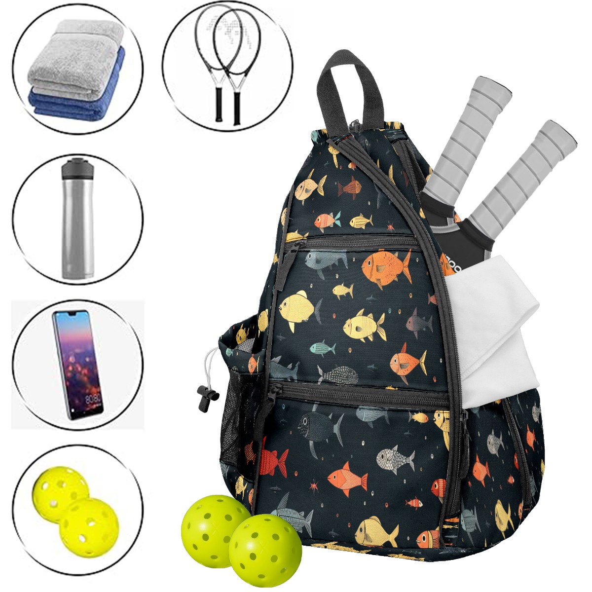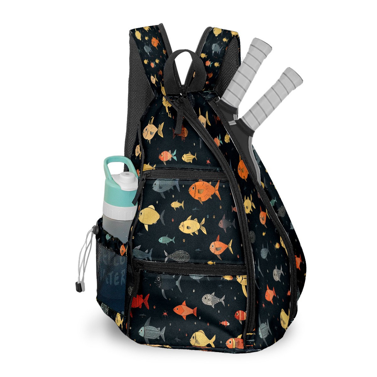 Multifunctional Pickleball Bag,Large Capacity Sports Pickleball Racket Bag, Water Bottle Holder and Fence Hook,Suitable for Both Men Women -Many Fish