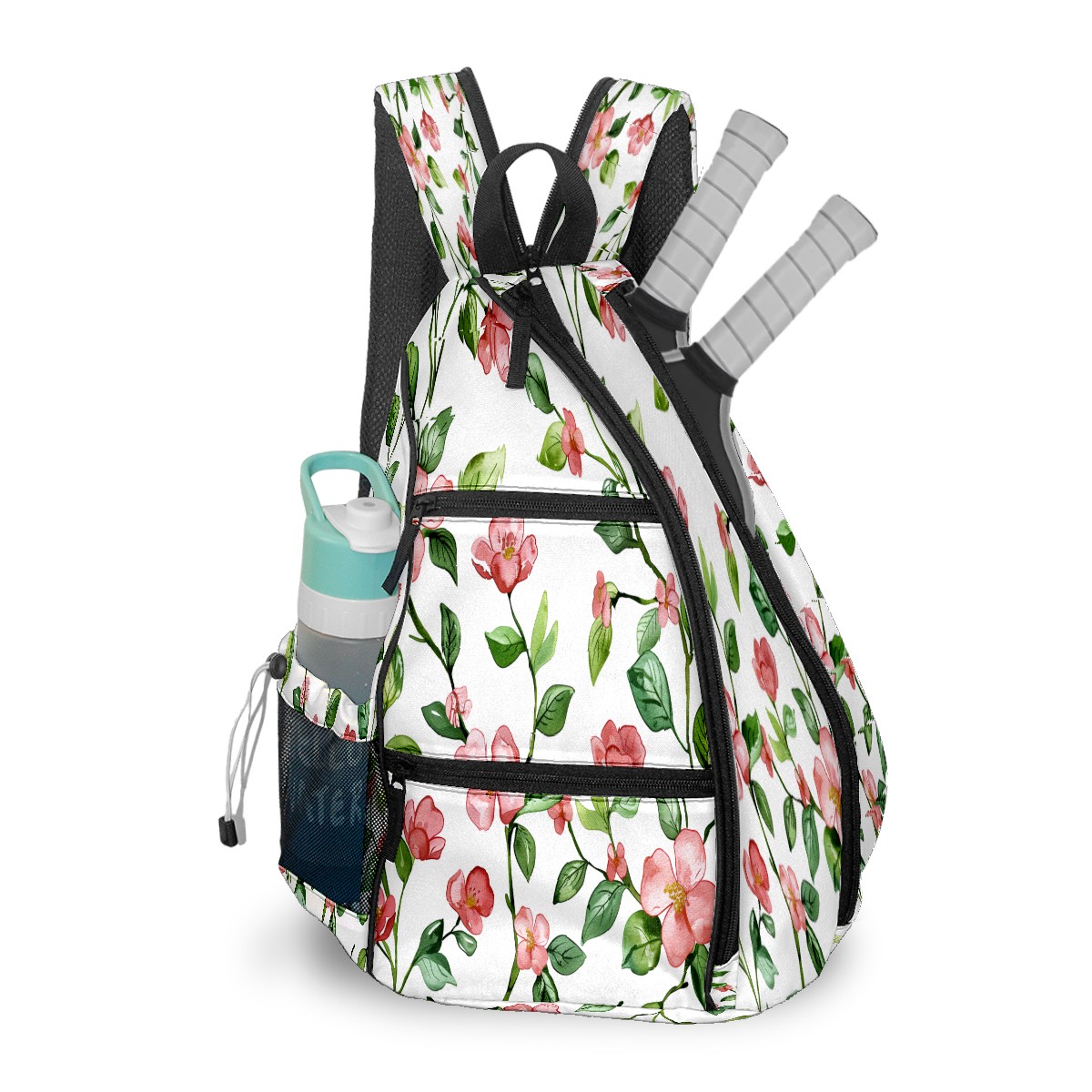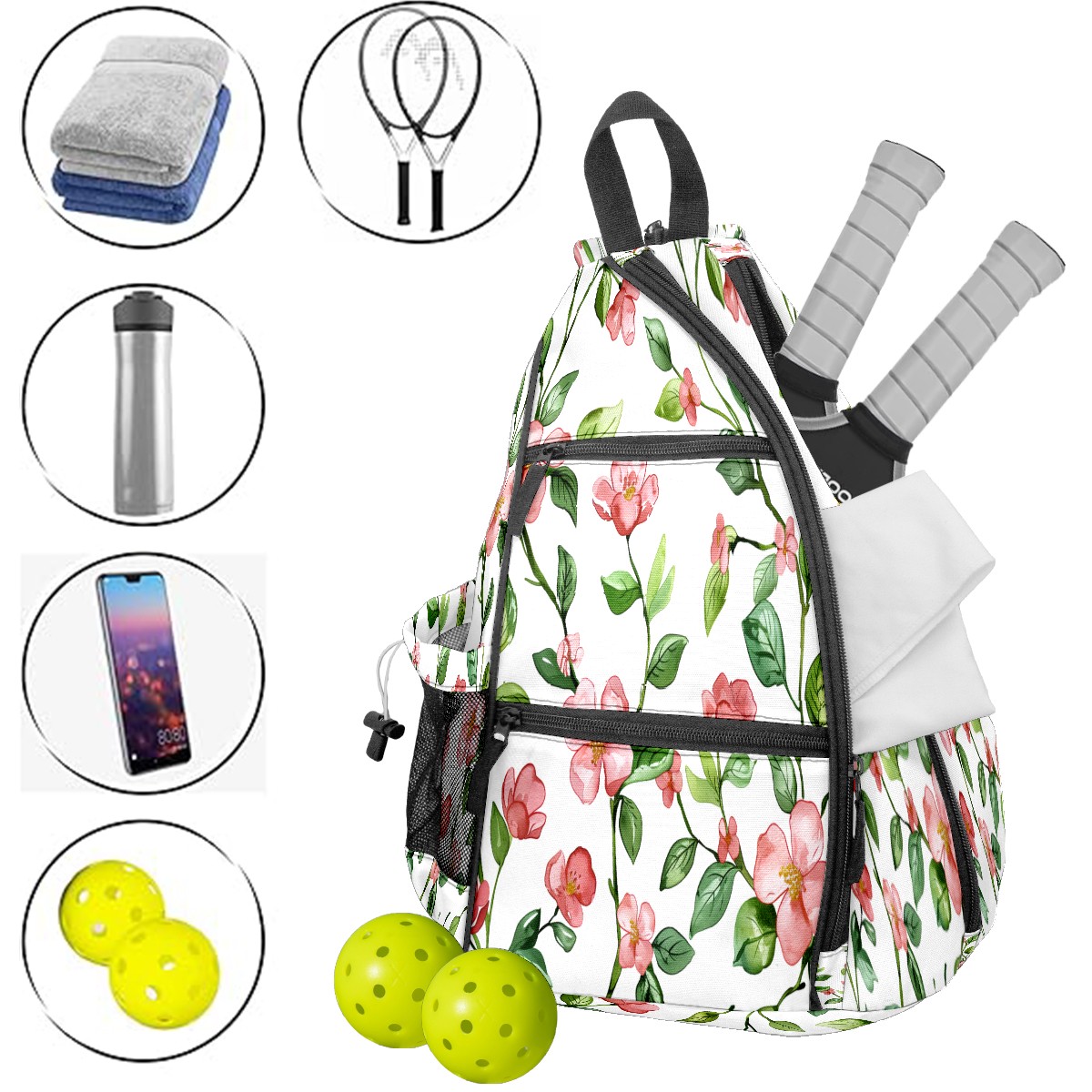 Multifunctional Pickleball Bag,Large Capacity Sports Pickleball Racket Bag, Water Bottle Holder and Fence Hook,Suitable for Both Men Women -Floral