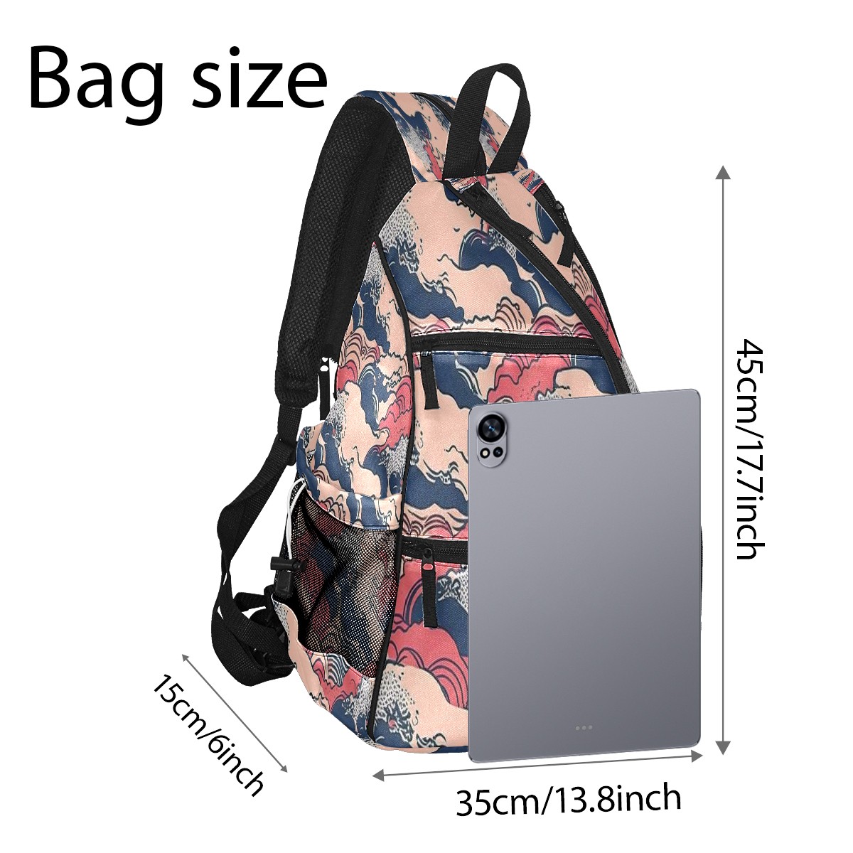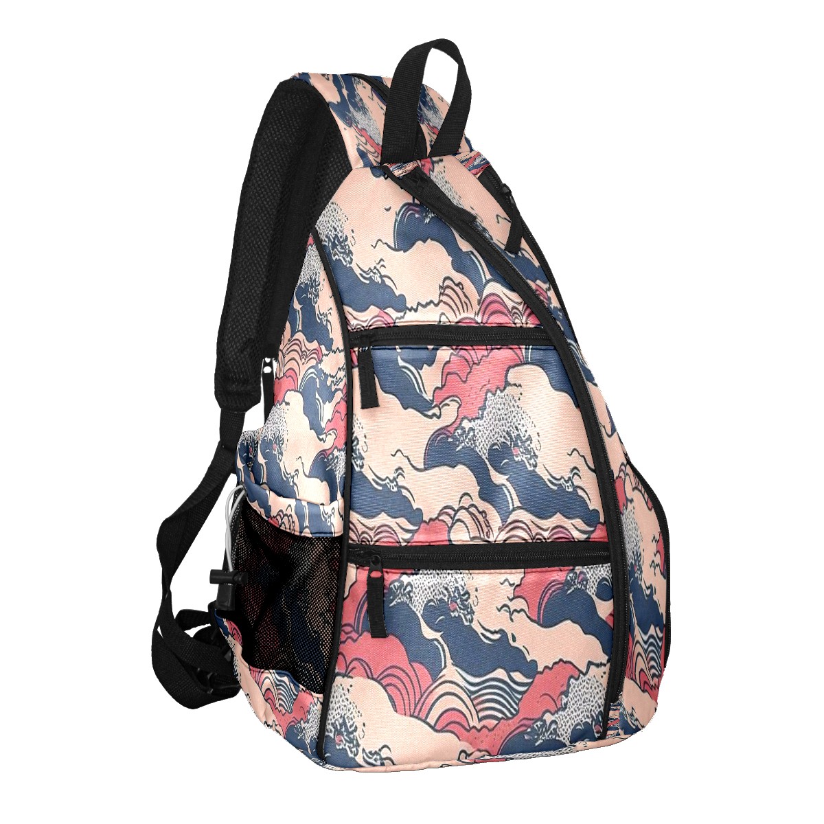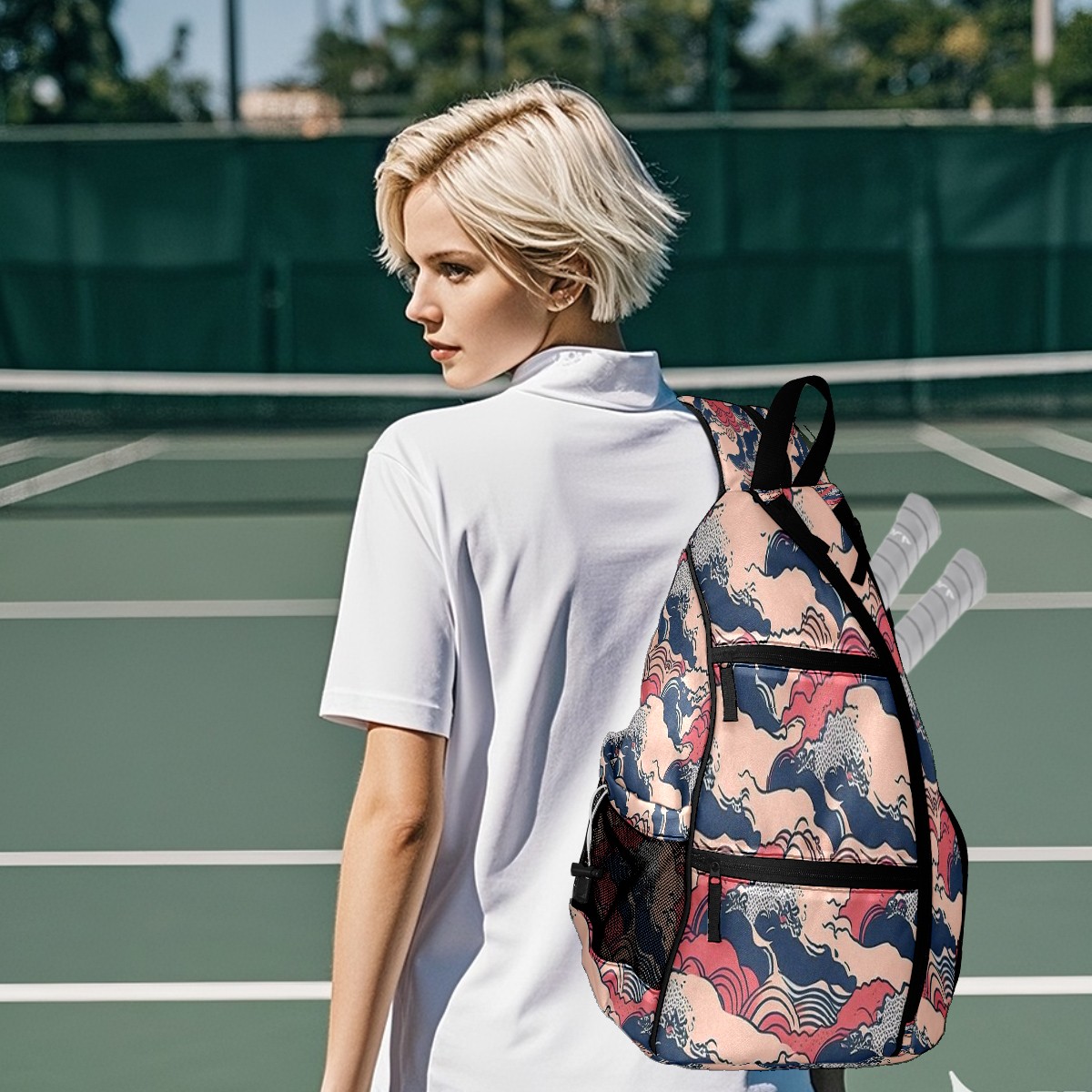 Multifunctional Pickleball Bag,Large Capacity Sports Pickleball Racket Bag, Water Bottle Holder and Fence Hook,Suitable for Both Men Women -Waves Print
