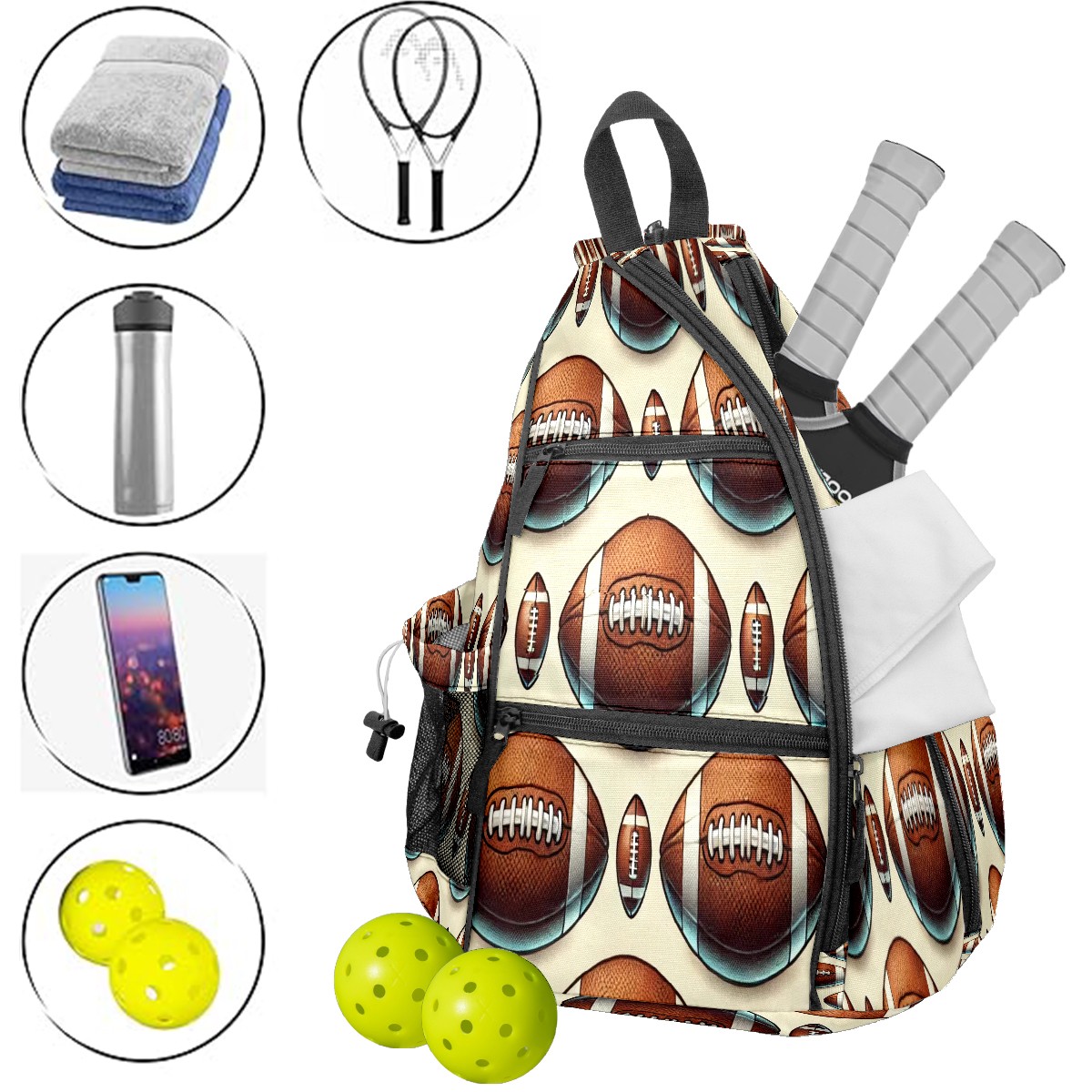 <p>This peakball backpack boasts a spacious 14-inch x 10-inch x 19-inch interior. The main compartment is clearly divided, easily accommodating 2-3 rackets and 6-8 peakballs. A side pocket can hold a water bottle, and an inner pocket provides storage for small items like phones and keys. The adjustable, thickened shoulder straps can be adjusted to fit different body types, effectively distributing weight and preventing shoulder and back pain even when fully loaded and worn for extended periods. Its convenience is particularly outstanding – all peakball accessories can be neatly stored in one bag, making travel easy. Moreover, its versatility is incredibly broad. Besides peakballs, it can also be used as a badminton or table tennis racket bag, and is perfect for carrying clothes and personal items when going to the gym or on short trips. One bag, multiple uses, and super convenient. For pickleball players of all ages and genders, this is not just an essential equipment storage bag, but also a thoughtful gift—its simple and durable design suits everyone, making it perfect for birthdays, holidays, or as a team reward for teammates. Almost every sports enthusiast who has used it praises its practicality and versatility.</p>