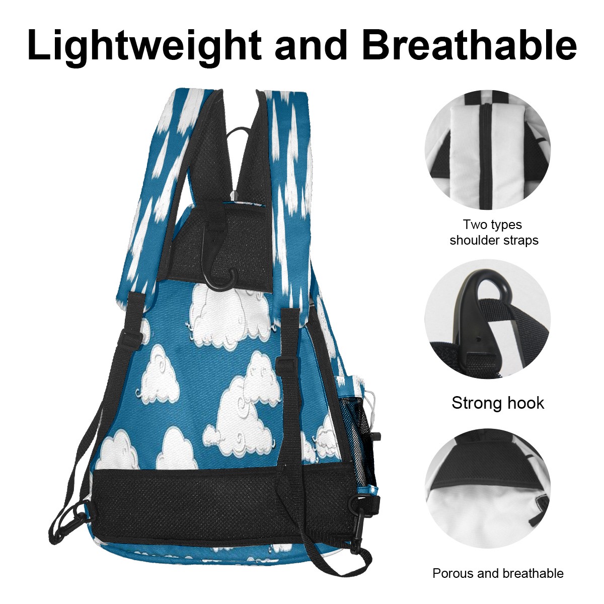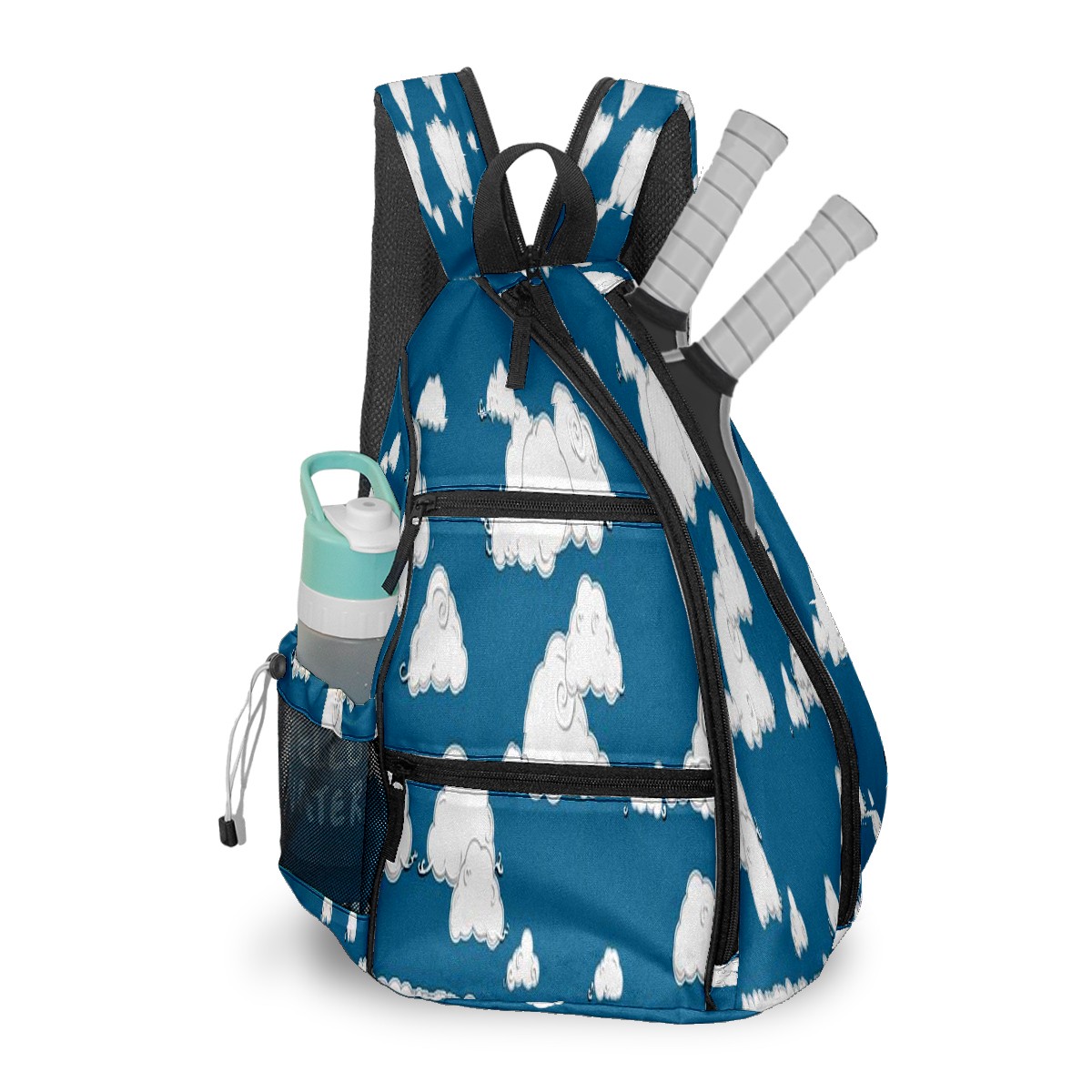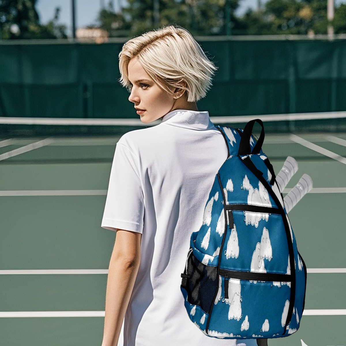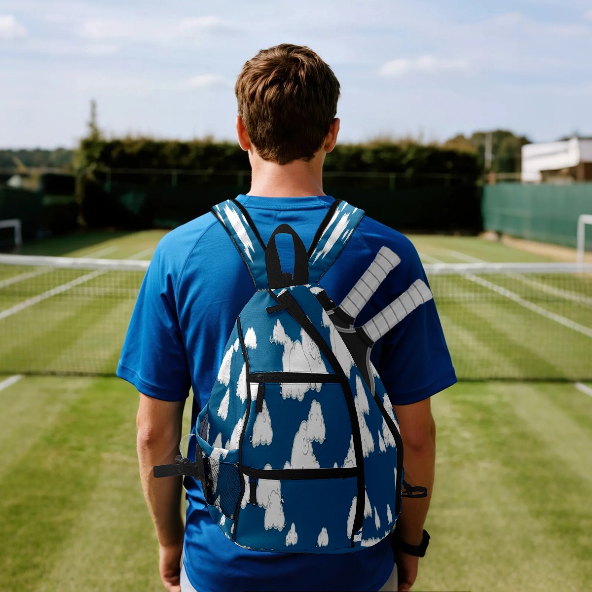 Multifunctional Pickleball Bag,Large Capacity Sports Pickleball Racket Bag, Water Bottle Holder and Fence Hook,Suitable for Both Men Women -White Blue Draw