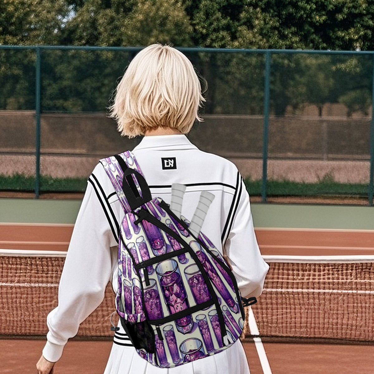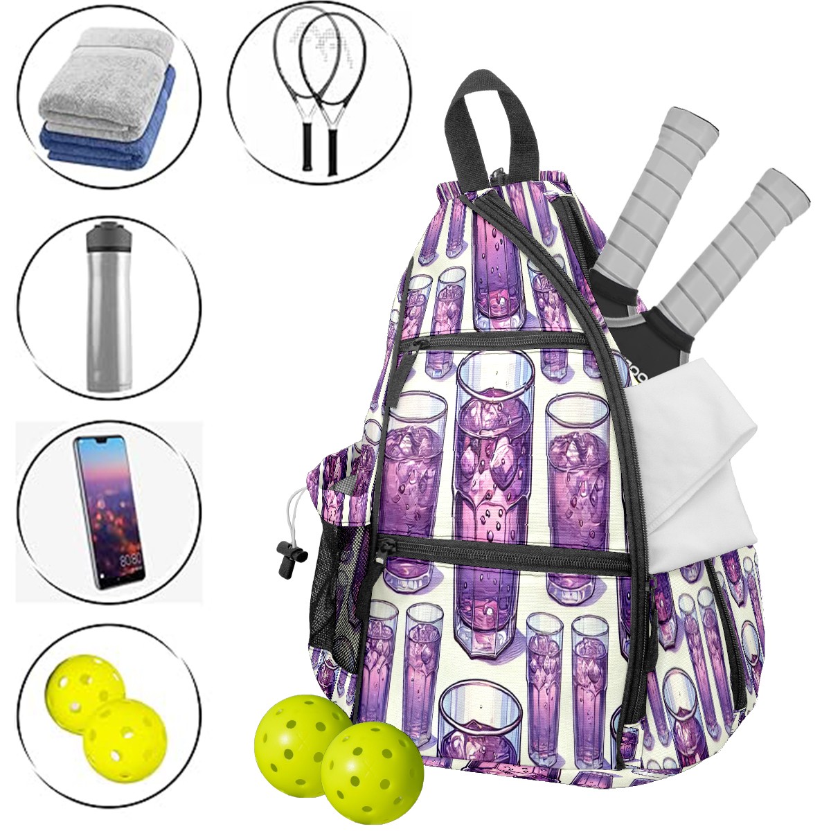Multifunctional Pickleball Bag,Large Capacity Sports Pickleball Racket Bag, Water Bottle Holder and Fence Hook,Suitable for Both Men Women -Purple Soda