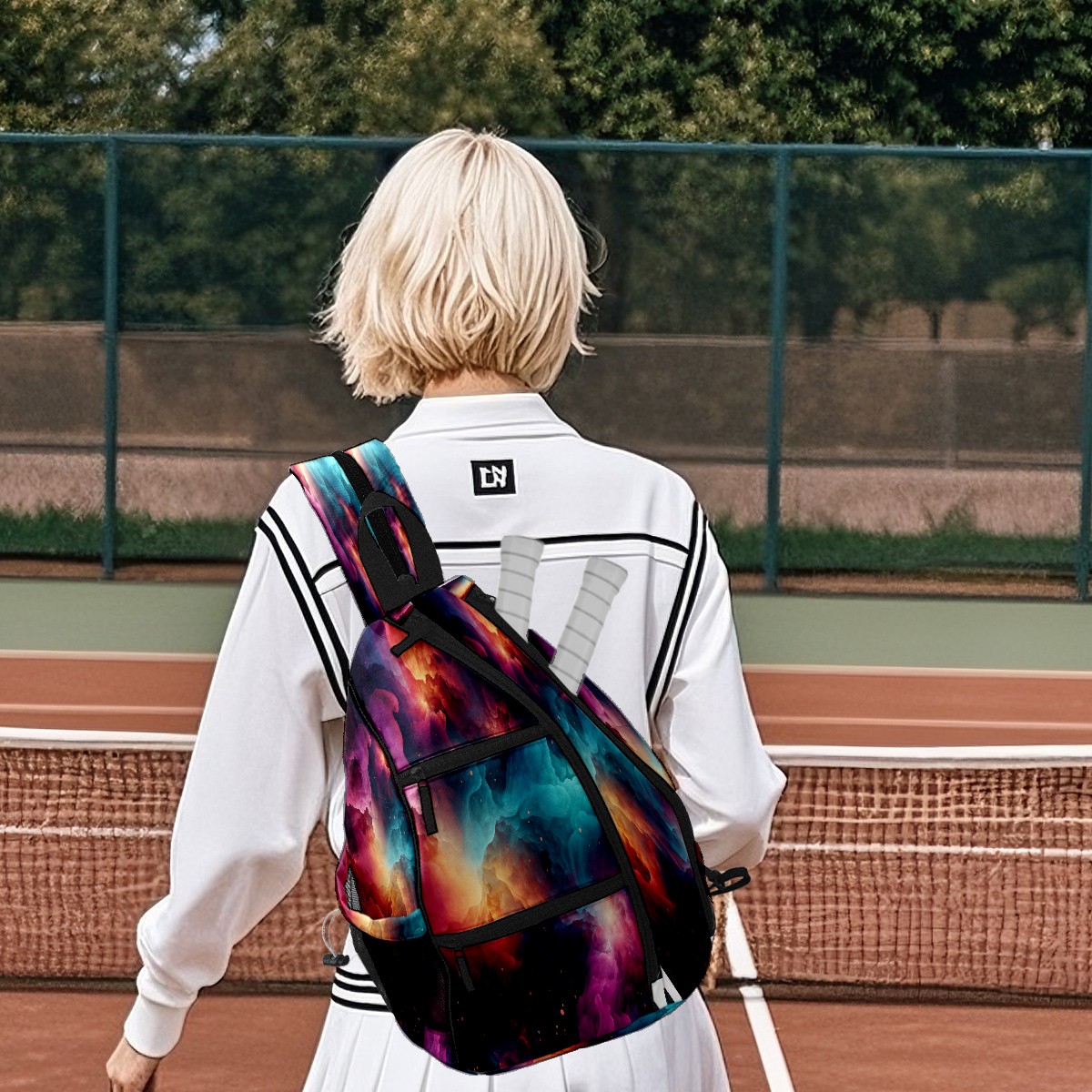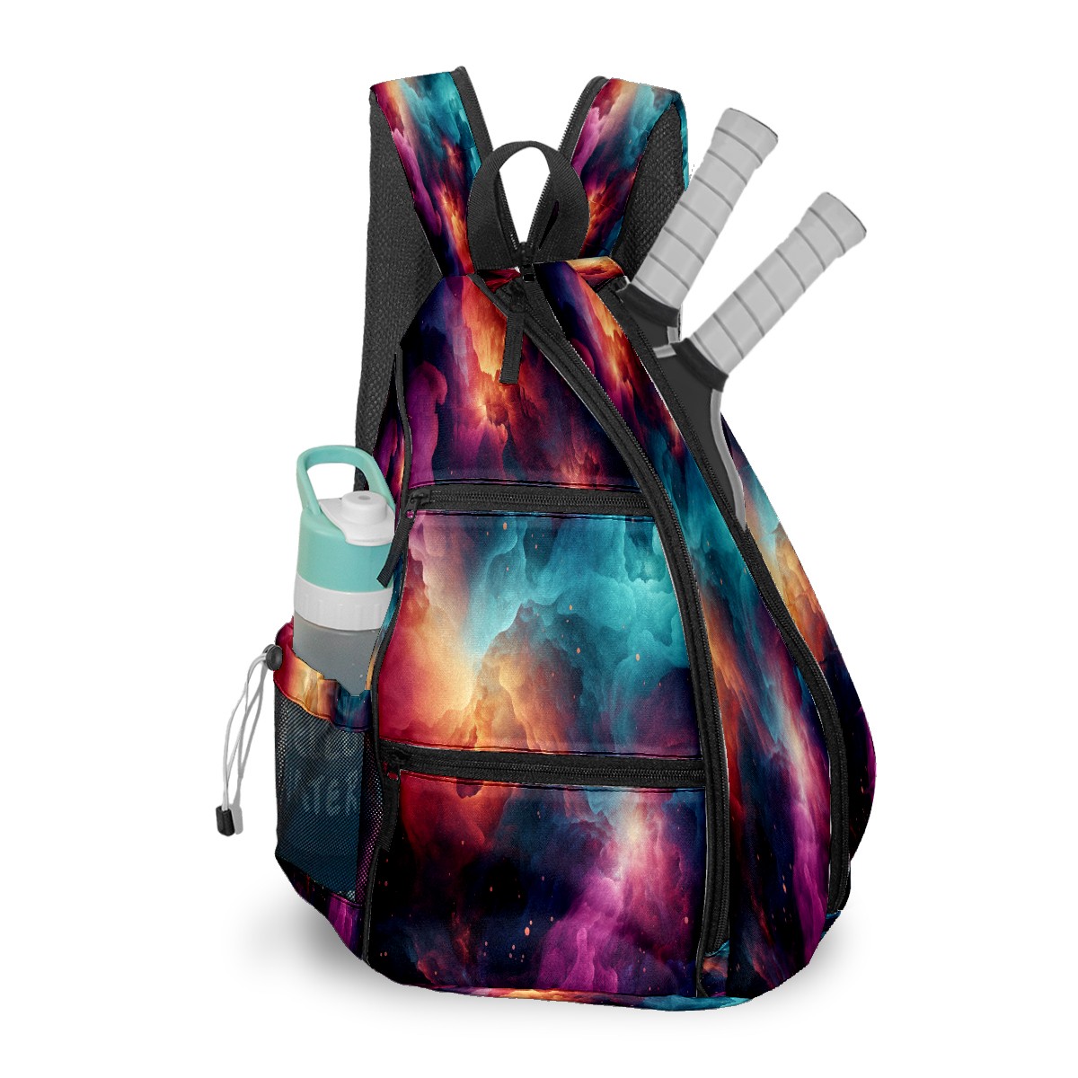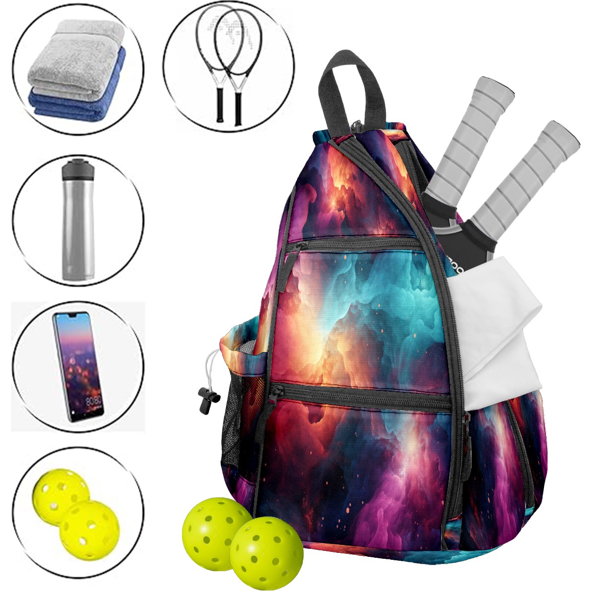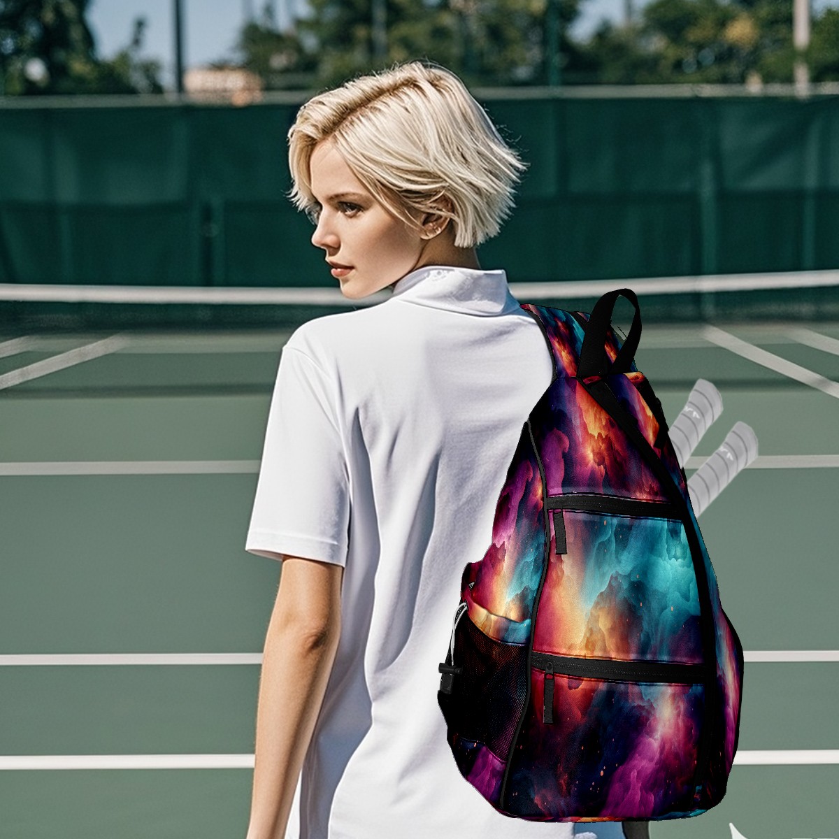 Multifunctional Pickleball Bag,Large Capacity Sports Pickleball Racket Bag, Water Bottle Holder and Fence Hook,Suitable for Both Men Women -Colorful Cloud