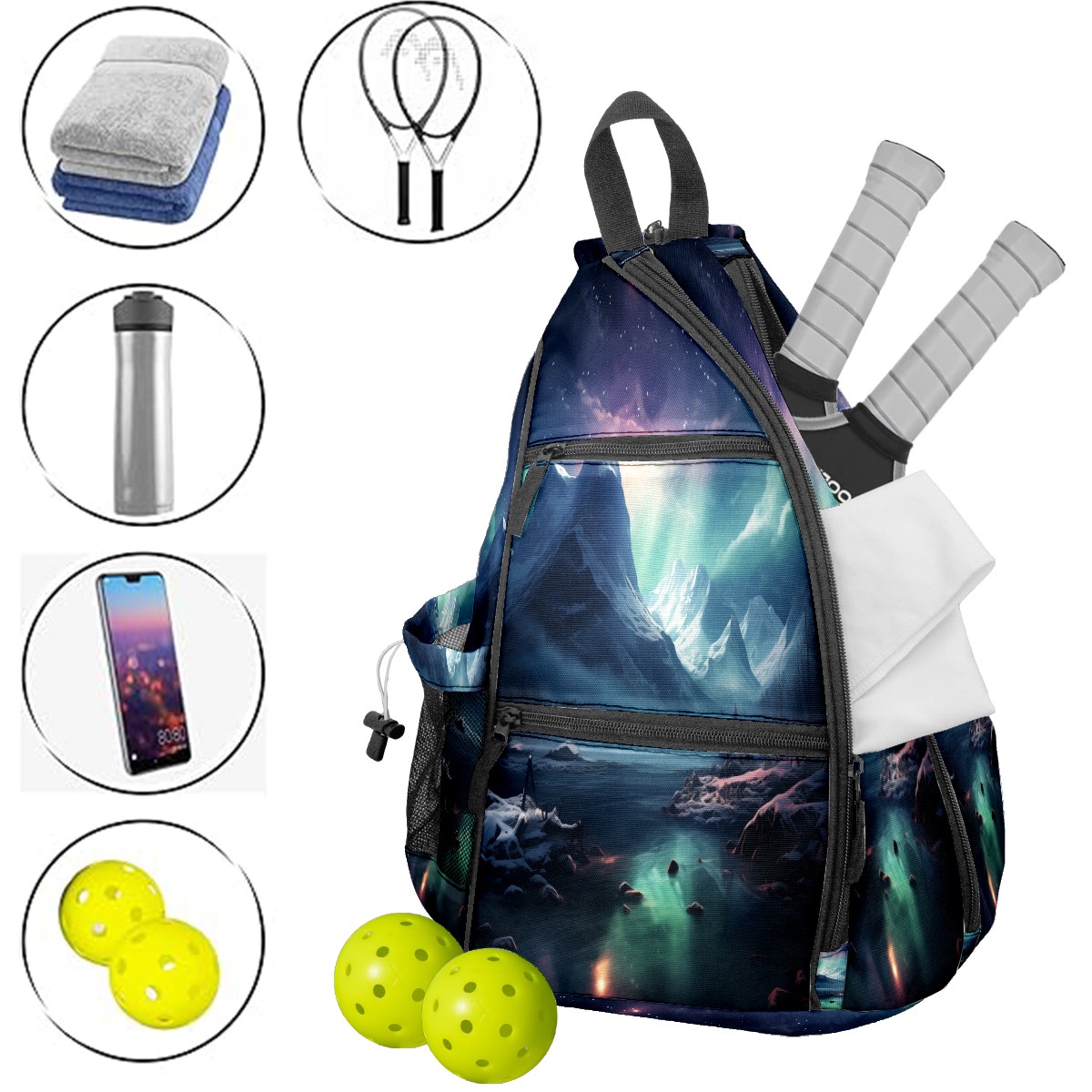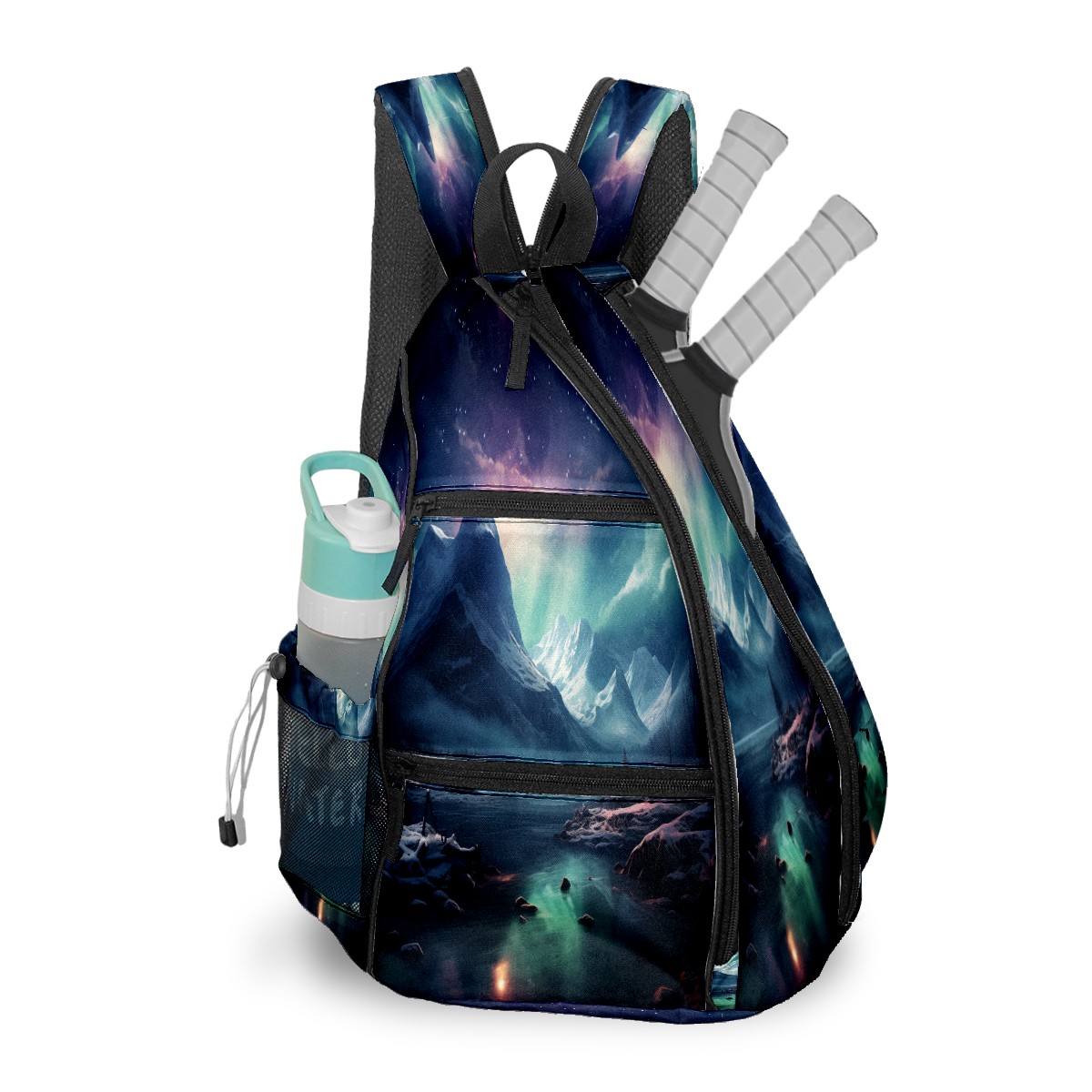 Multifunctional Pickleball Bag,Large Capacity Sports Pickleball Racket Bag, Water Bottle Holder and Fence Hook,Suitable for Both Men Women -Beautiful Northern Lights