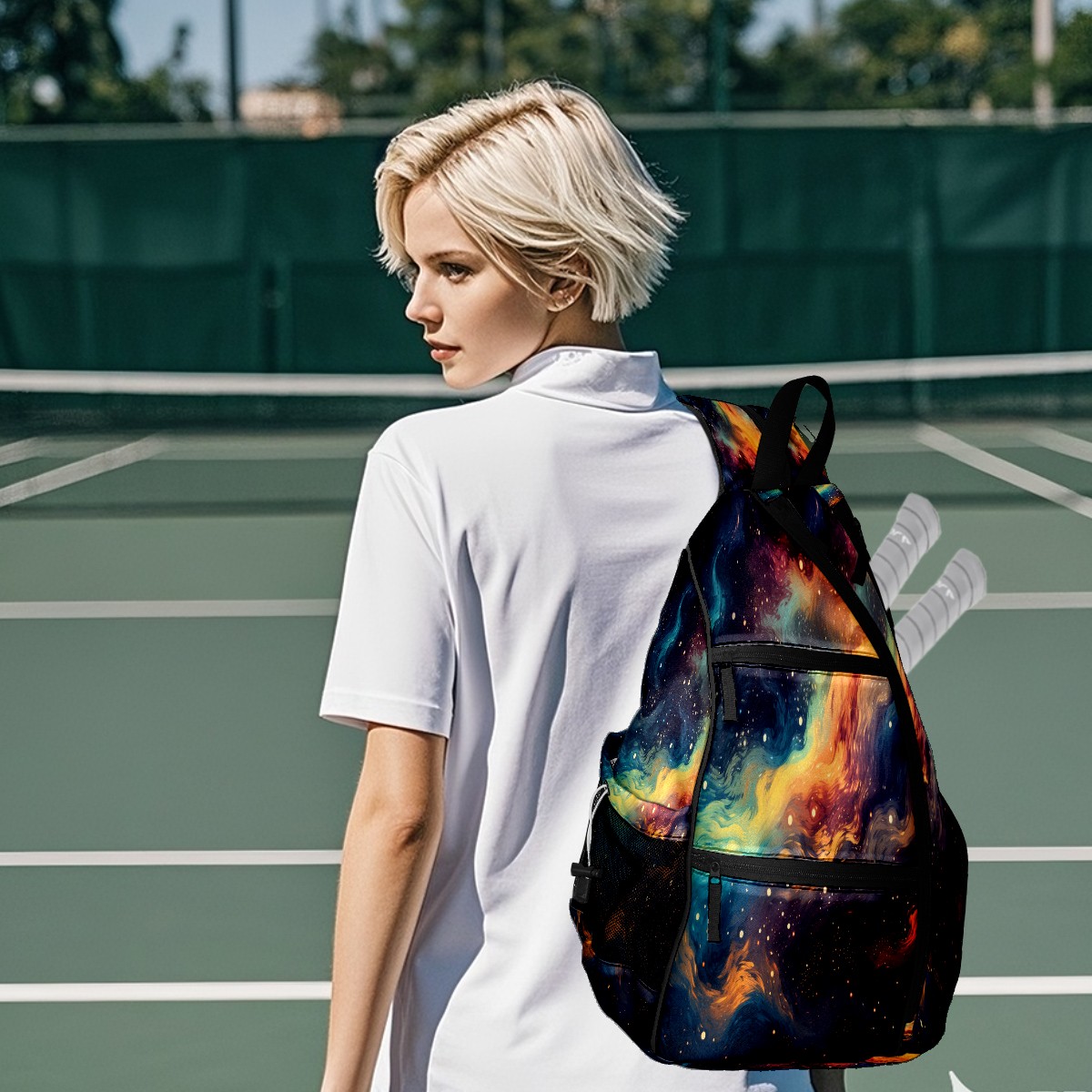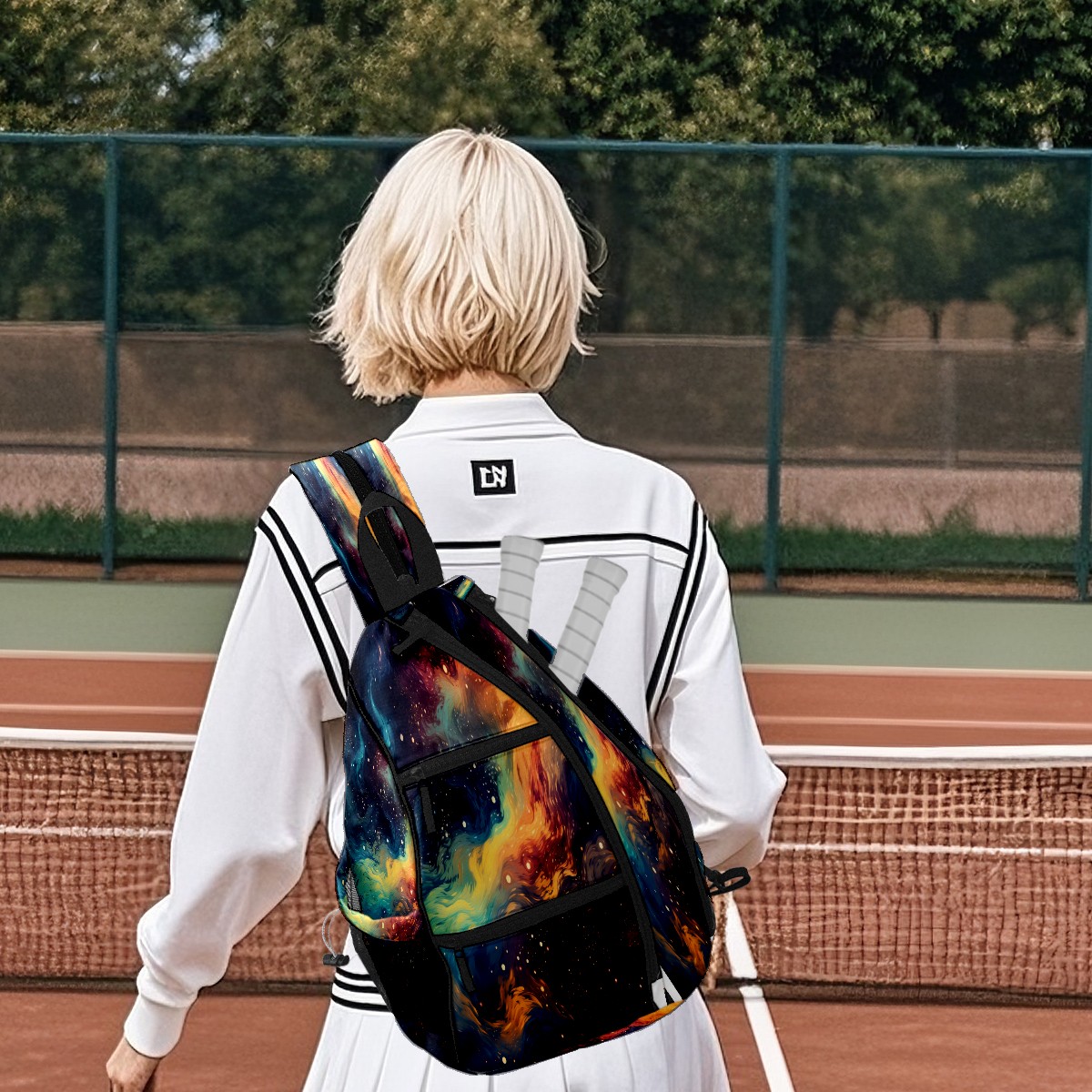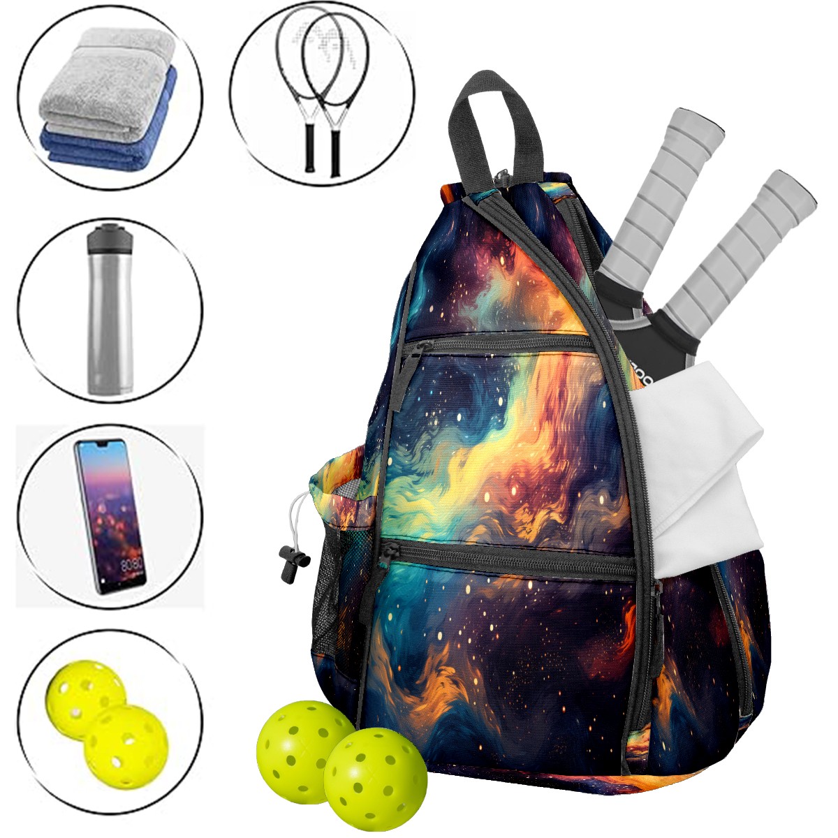 Multifunctional Pickleball Bag,Large Capacity Sports Pickleball Racket Bag, Water Bottle Holder and Fence Hook,Suitable for Both Men Women -Colorful