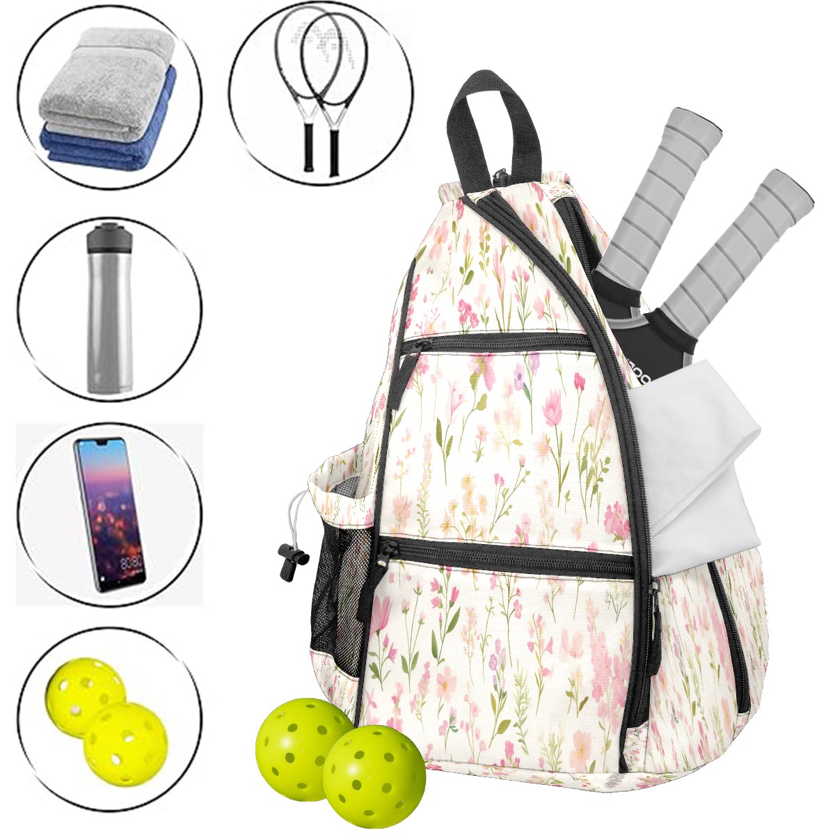 Multifunctional Pickleball Bag,Large Capacity Sports Pickleball Racket Bag, Water Bottle Holder and Fence Hook,Suitable for Both Men Women -Floral